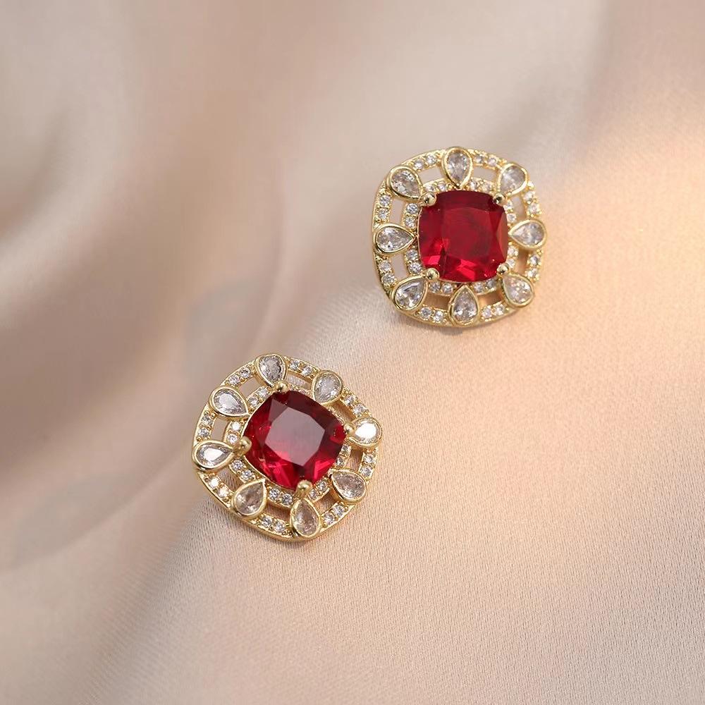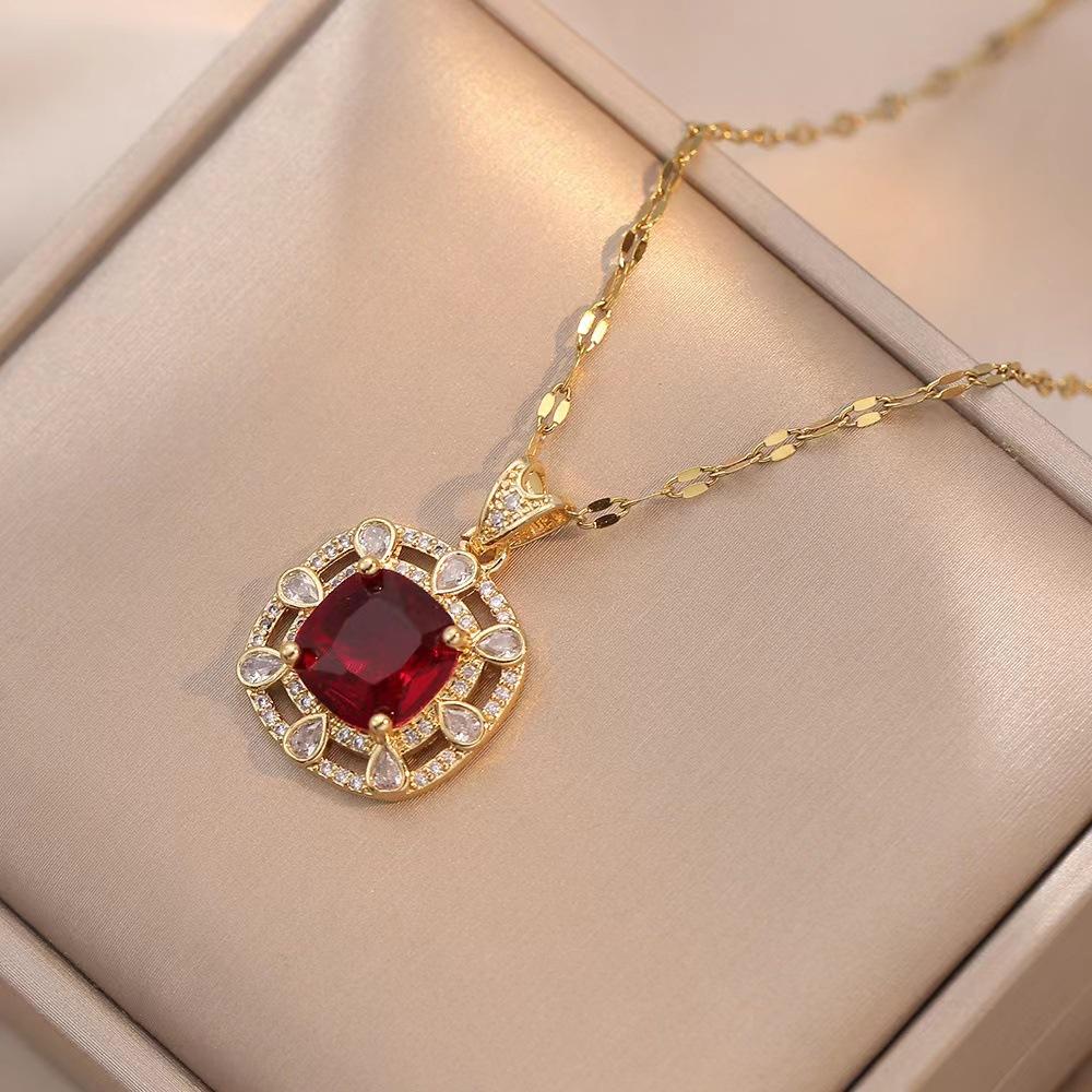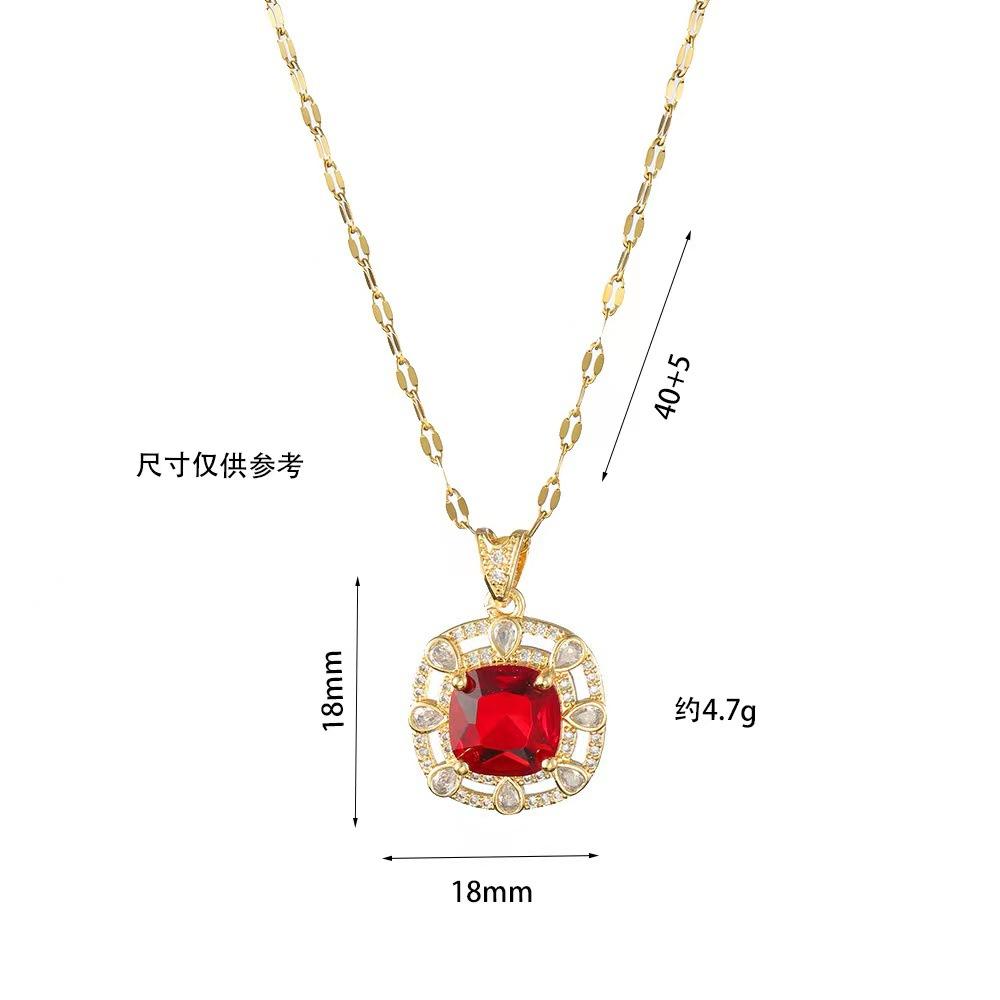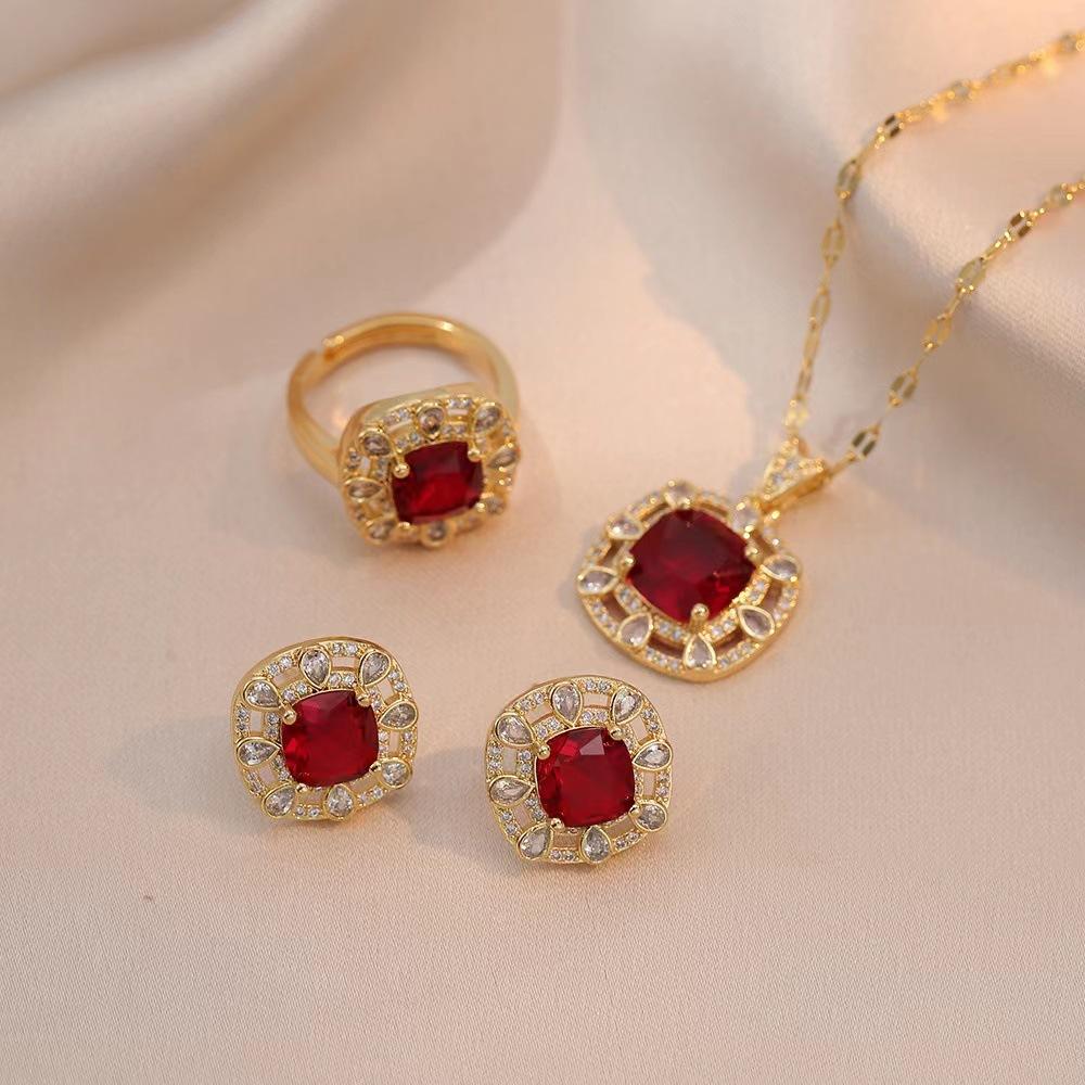 Compra Collar para mujer, estilo europeo y americano, con diseño de diamantes cuadrados rojos sencillos, conjunto de dos piezas de circonita, joyería transfronteriza al por mayor. al por mayor en Joom.pro