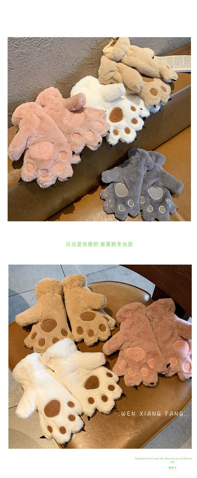 Guantes para mujer de invierno, bonitos guantes de estilo coreano para estudiantes, forrados de vellón, gruesos, con dibujos de osos en bicicleta, cálidos guantes para dedos de invierno para mujer.