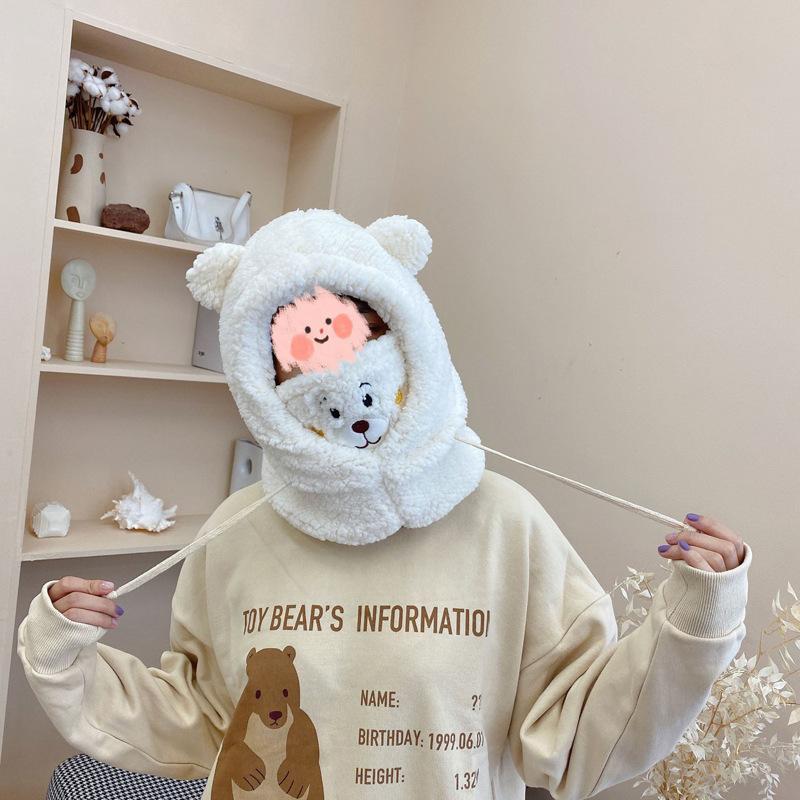 Bufanda Máscara de Oso Sombrero Integrado Otoño e Invierno Lindo Felpa Sombrero Baotou Ciclismo Cortavientos Cálido Protección para los Oídos Cordón Algodón Sombrero