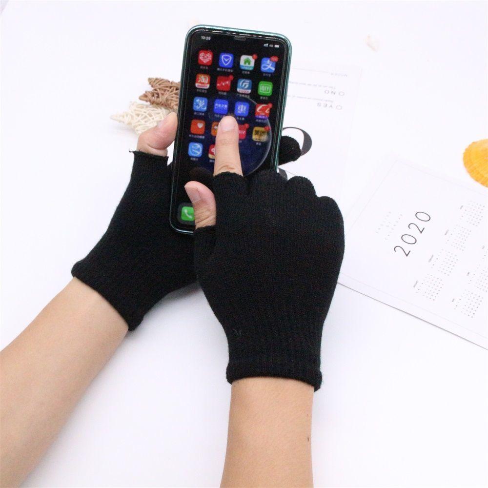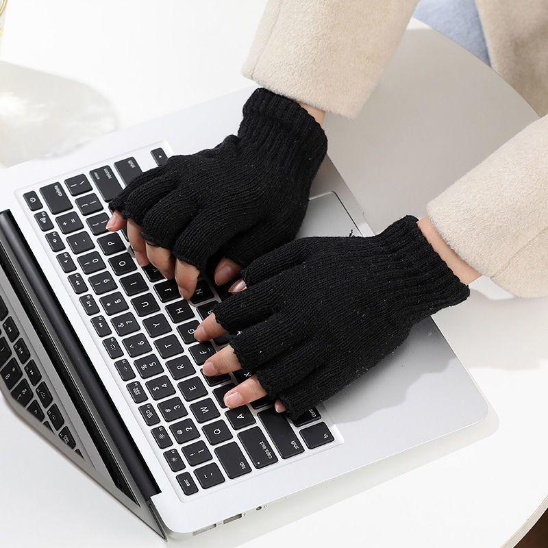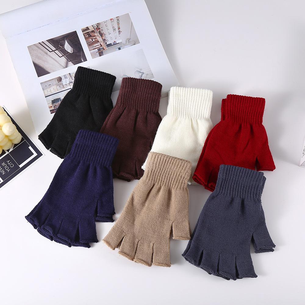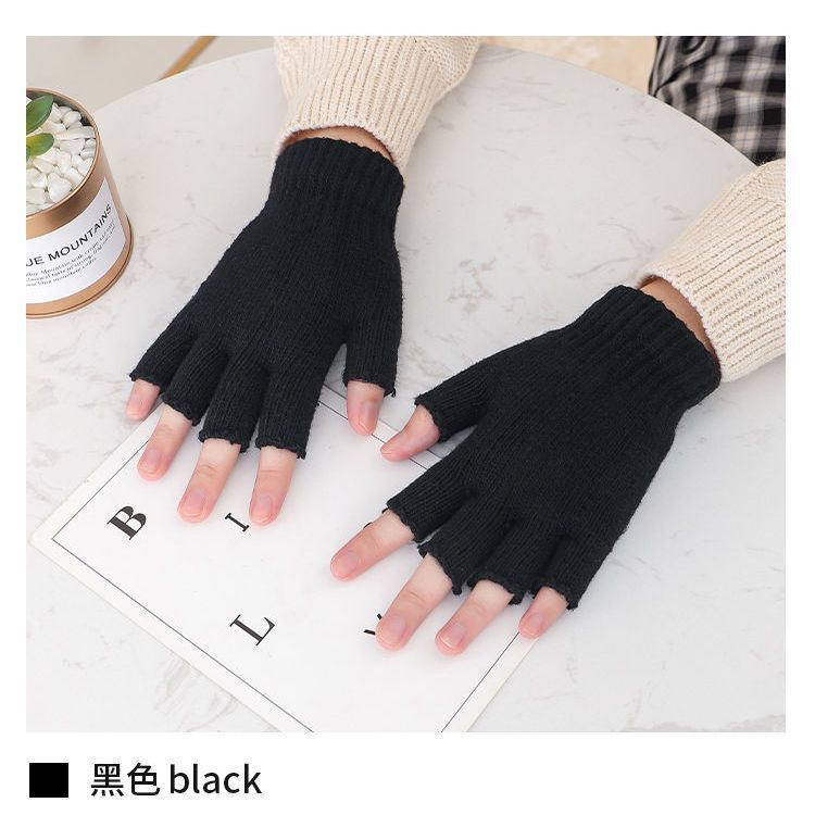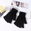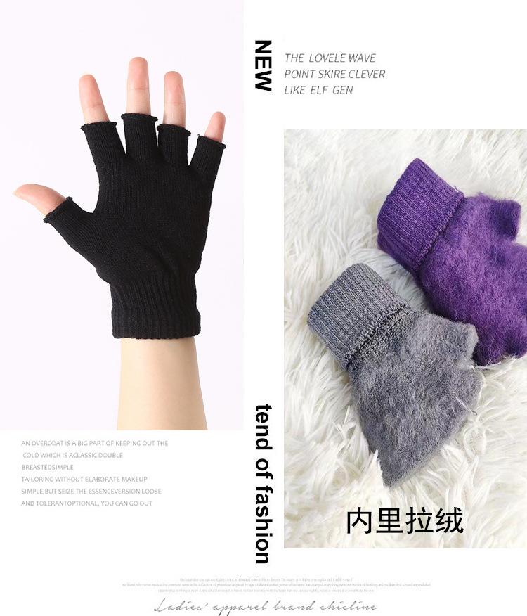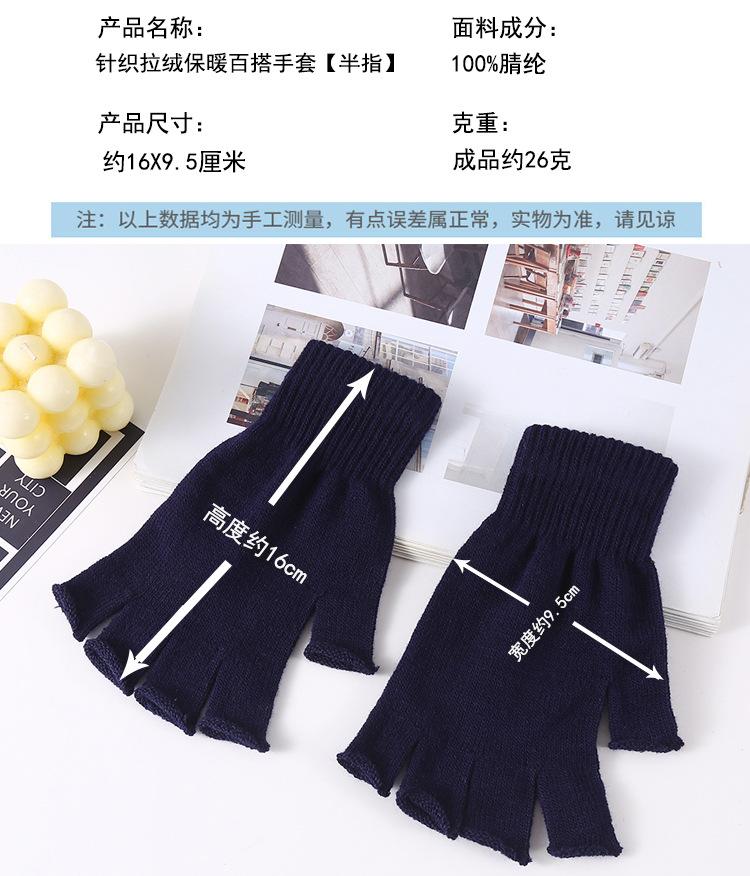 Guantes de Medio Dedo Tejido Terciopelo Joker Grueso Cálido para Otoño e Invierno Pareja Estudiantes Ciclismo A prueba de Frío Fábrica Transfronterizo