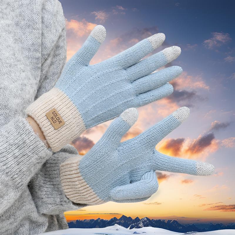 Guantes Cálidos de Terciopelo Grueso para Otoño e Invierno con Pantalla Táctil para Ciclismo Envío Directo de Fábrica Suministro Transfronterizo Lana Aguja Retro