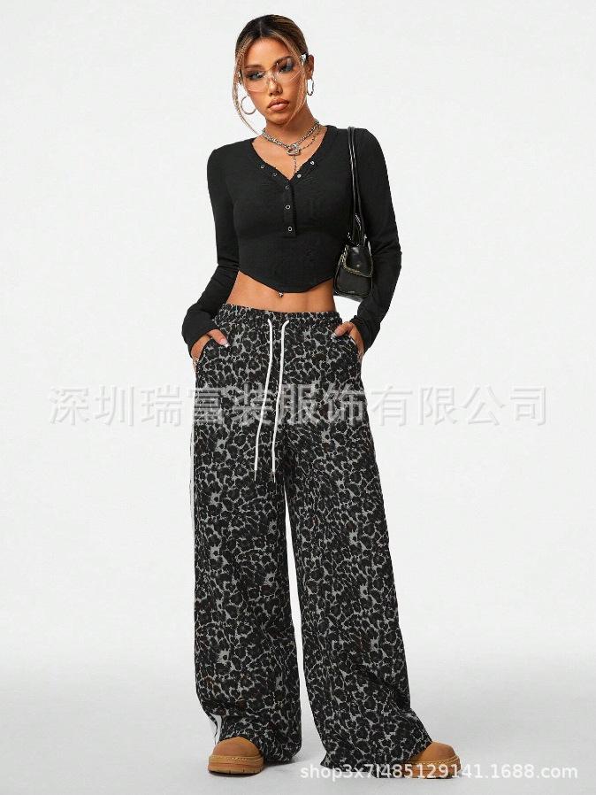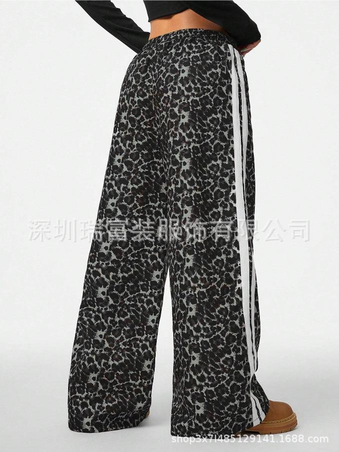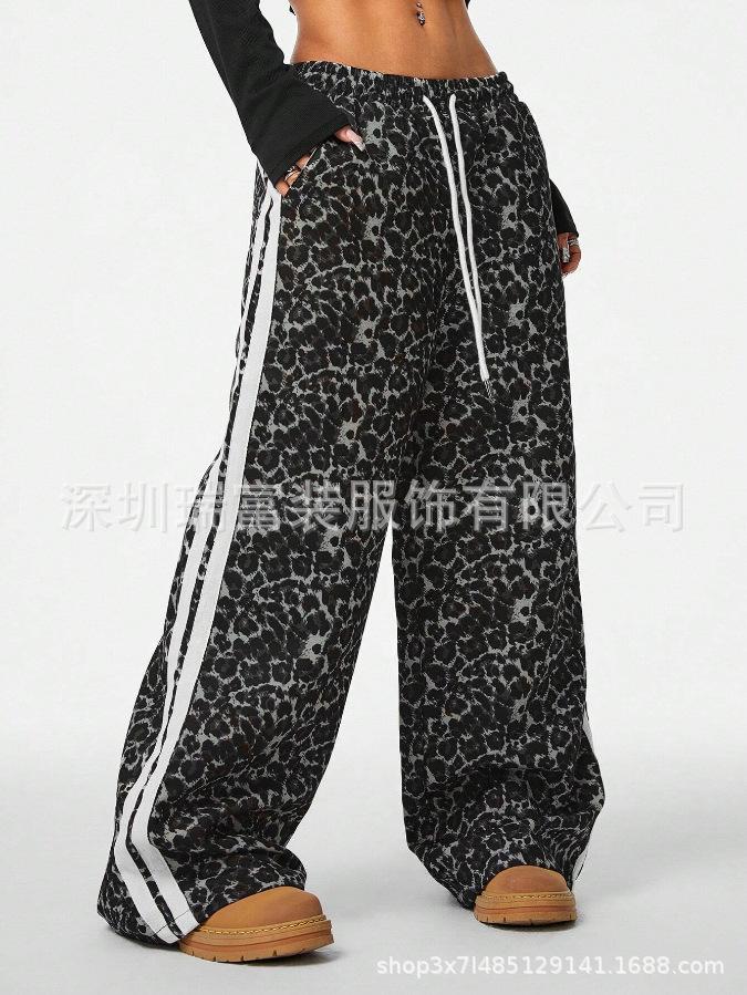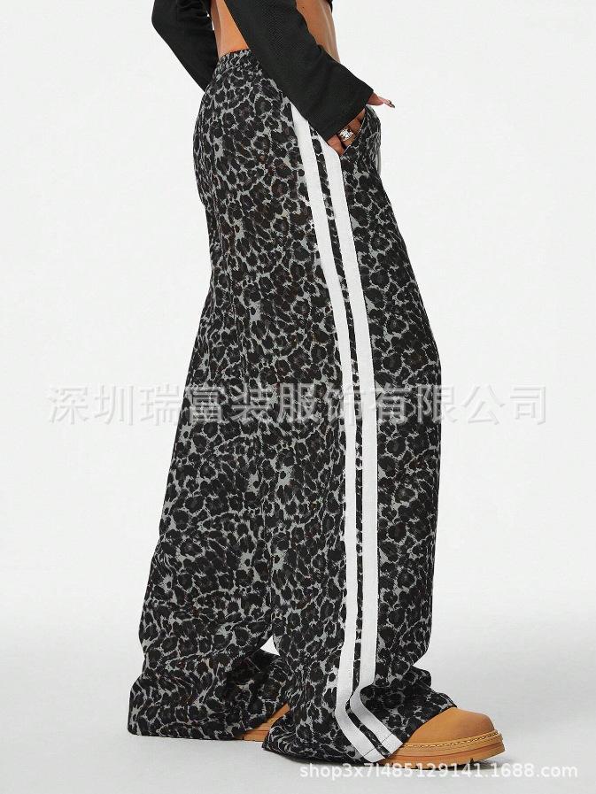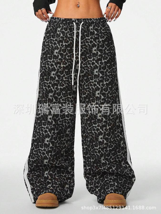 Pantalones holgados con estampado de leopardo, informales, de estilo transfronterizo, de moda europea y americana, de pierna ancha, 2025