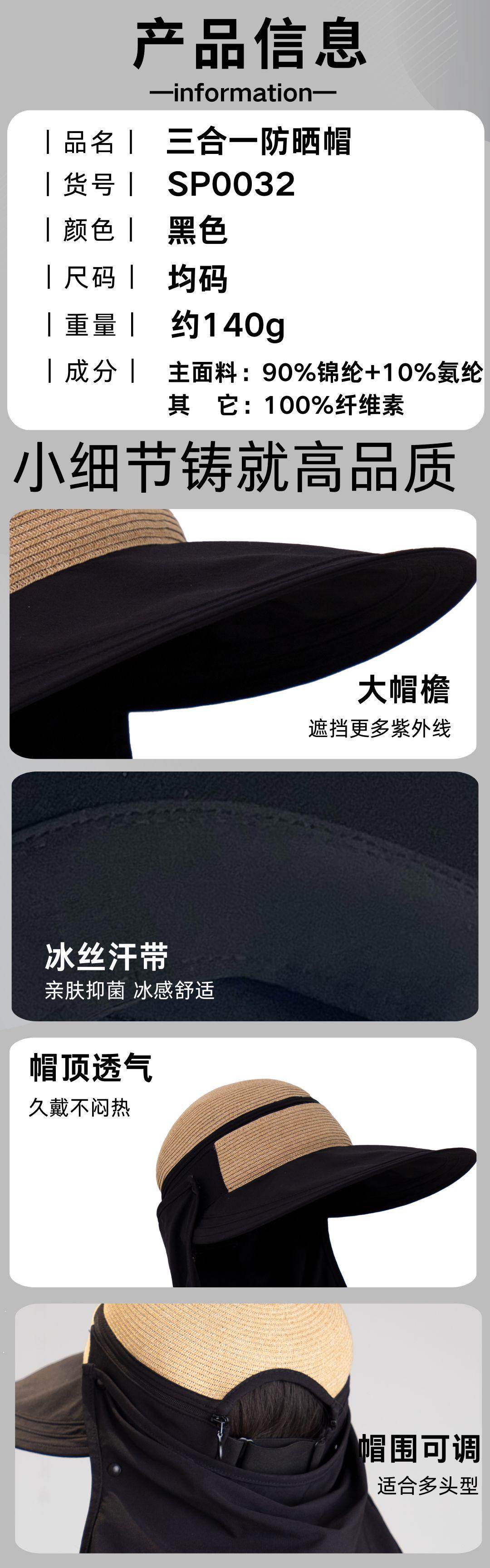 Sombrero de Verano Nuevo 2025 Sombrero Tres en Uno con Protección Solar Sombrero de Sol Anti-UV Ciclismo Copa Vacía Sombrero de Ala Ancha