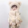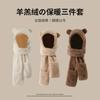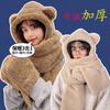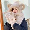 Conjunto de tres piezas de gorro y bufanda con orejas de oso para mujer, estilo coreano, de invierno, bonitos guantes gruesos y cálidos para el cuello.