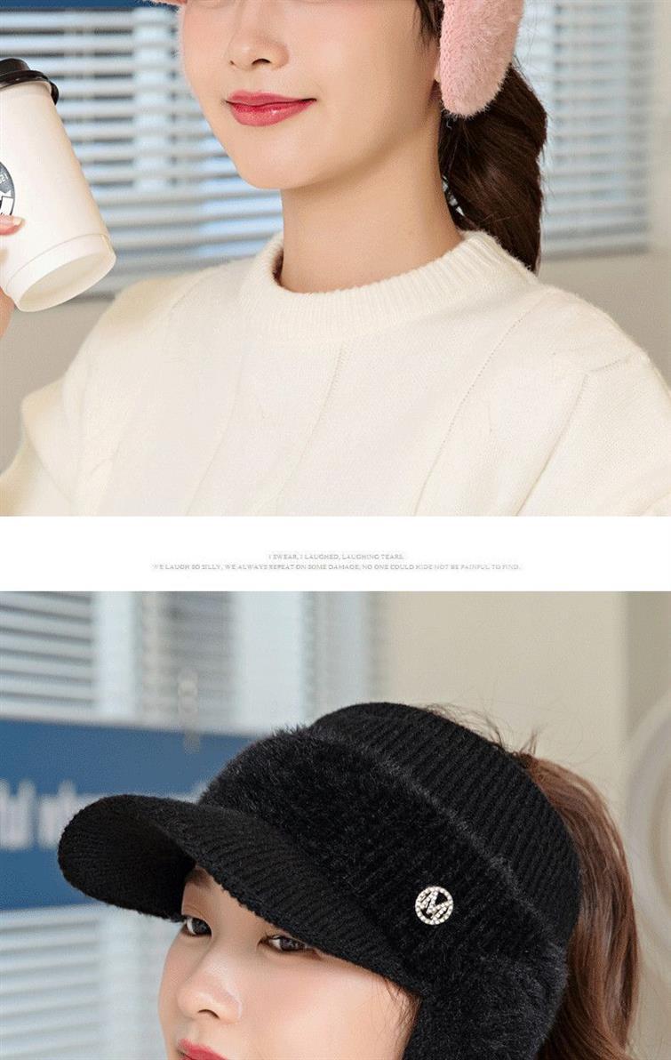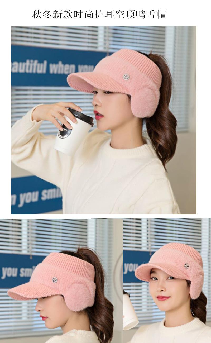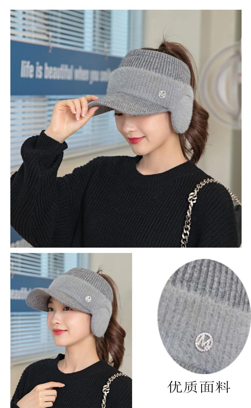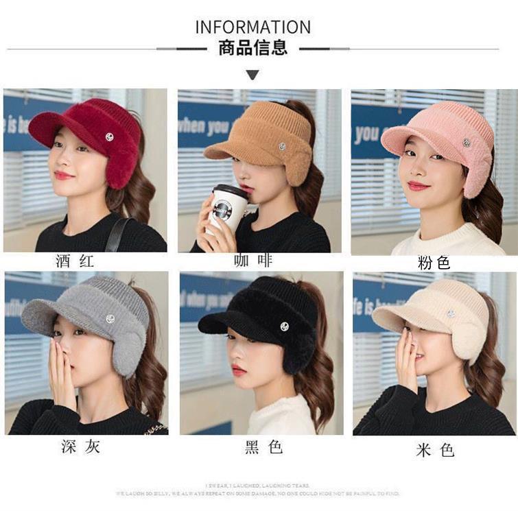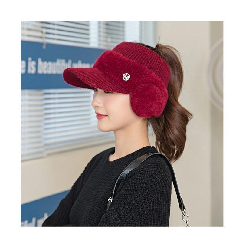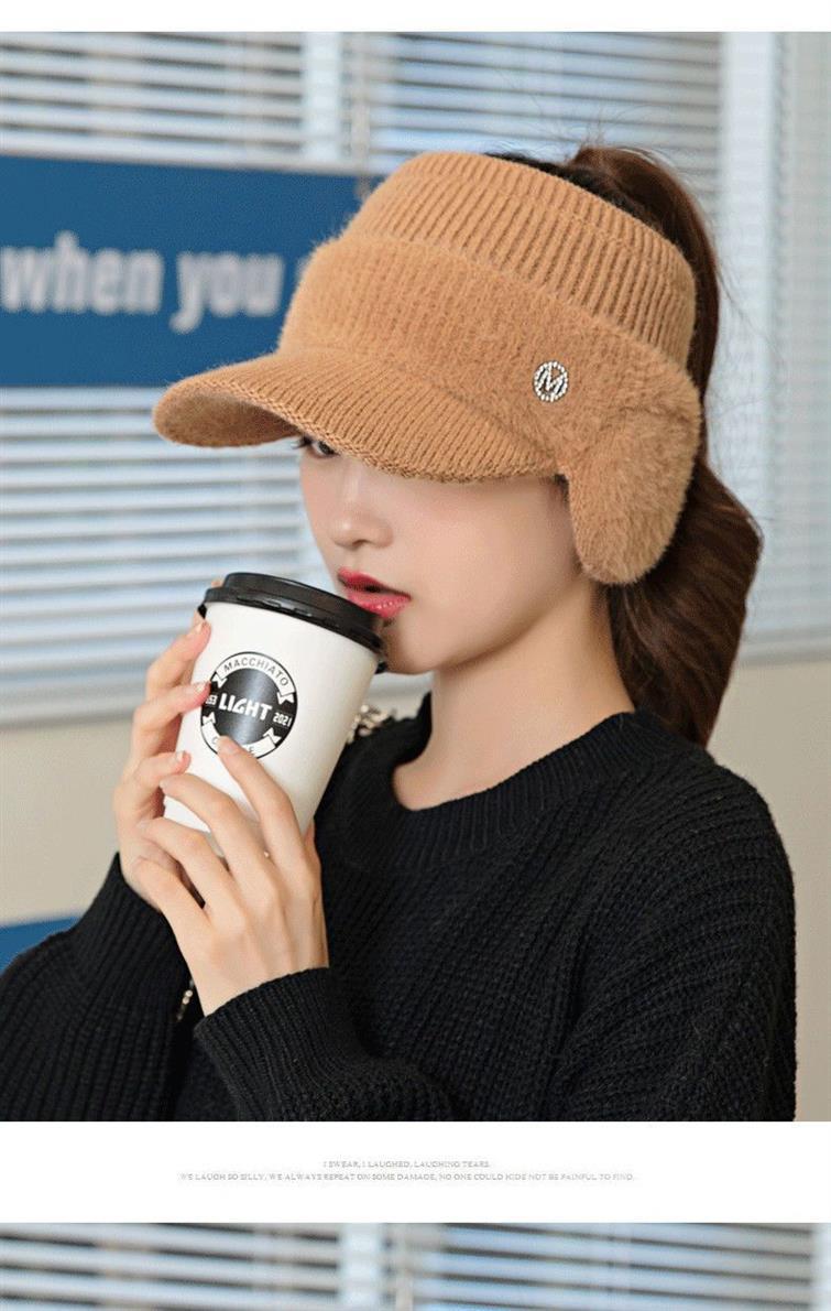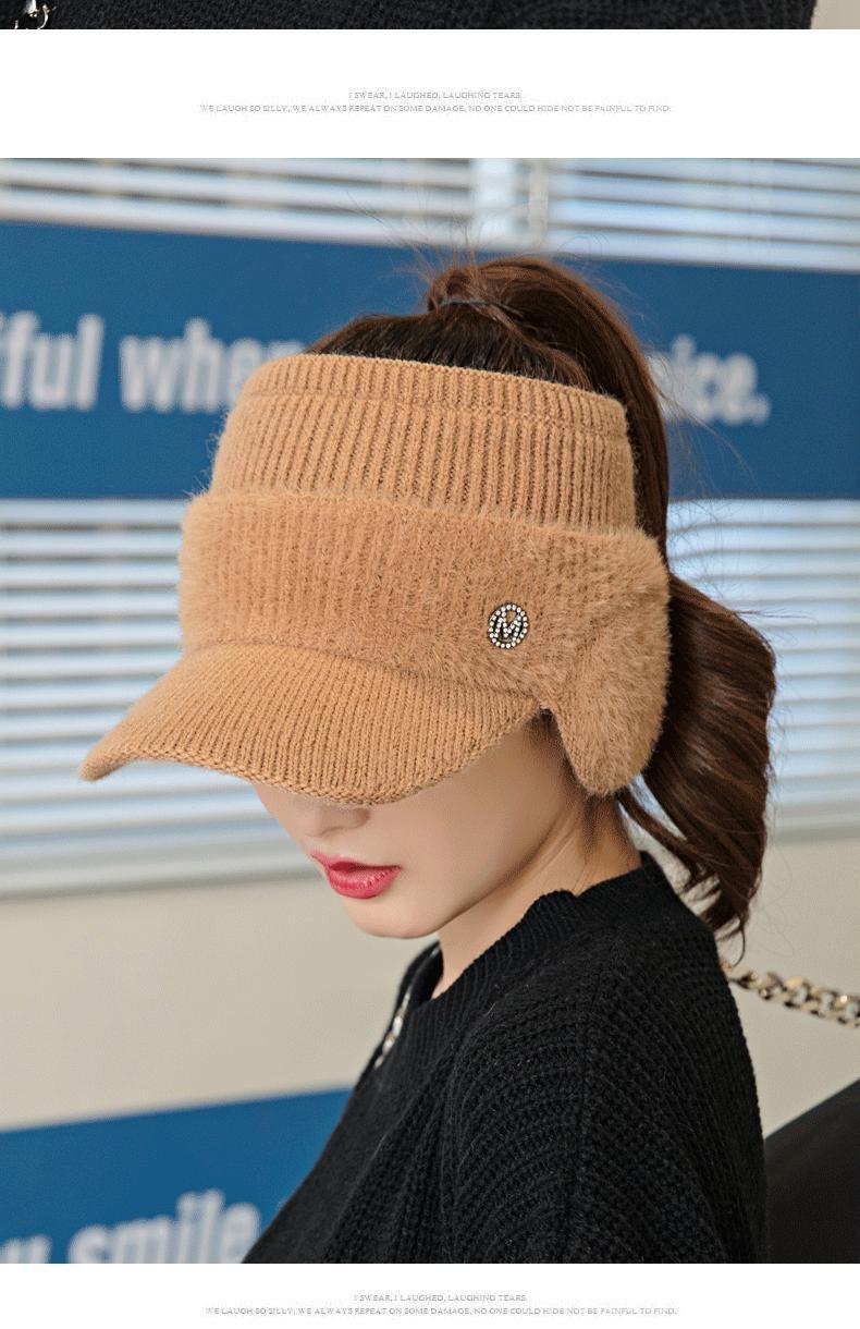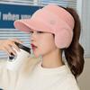 Sombrero de punto de copa vacía para otoño e invierno para mujer, para ciclismo, correr, resistente al viento, protección para los oídos, gorra de lana con visera, estilo coreano, gorra de béisbol cálida