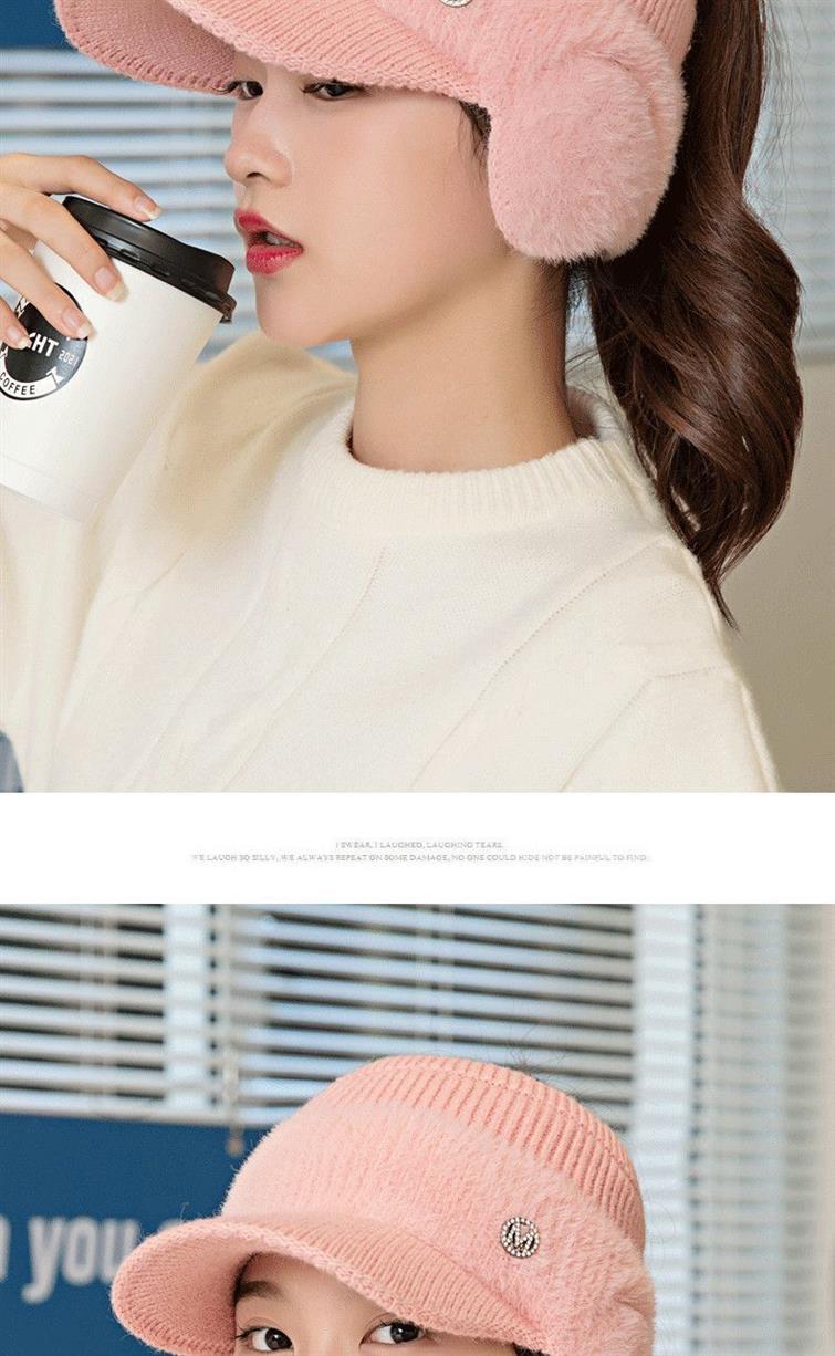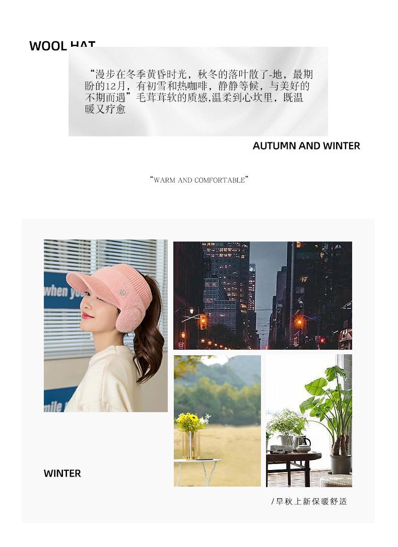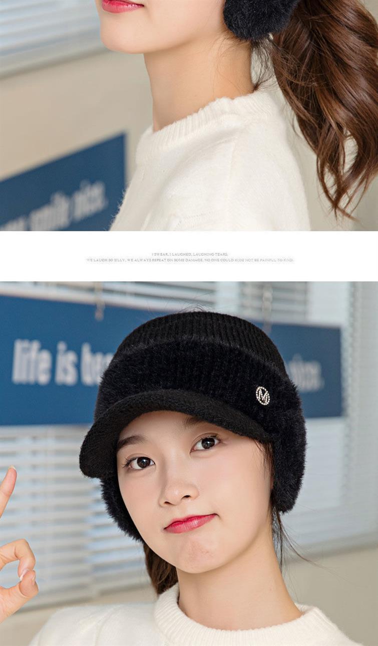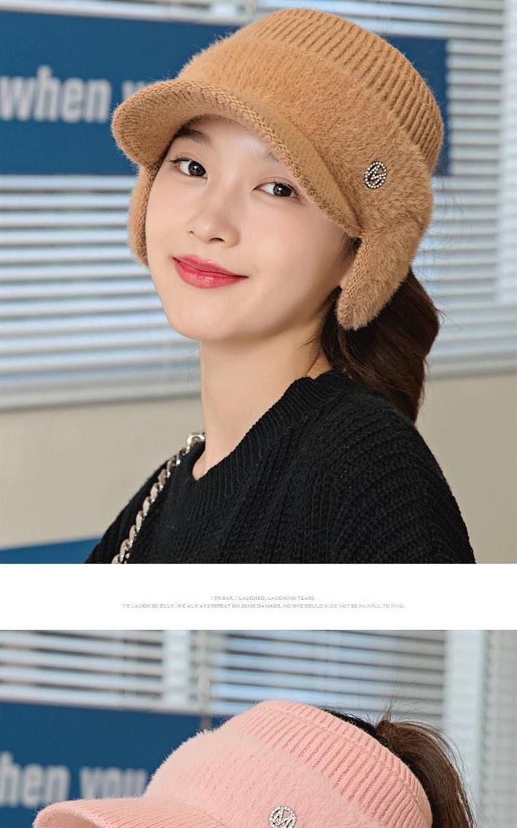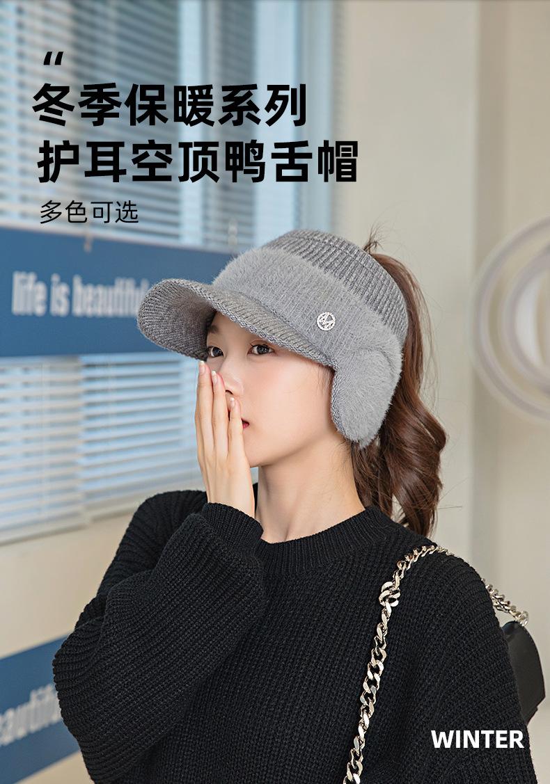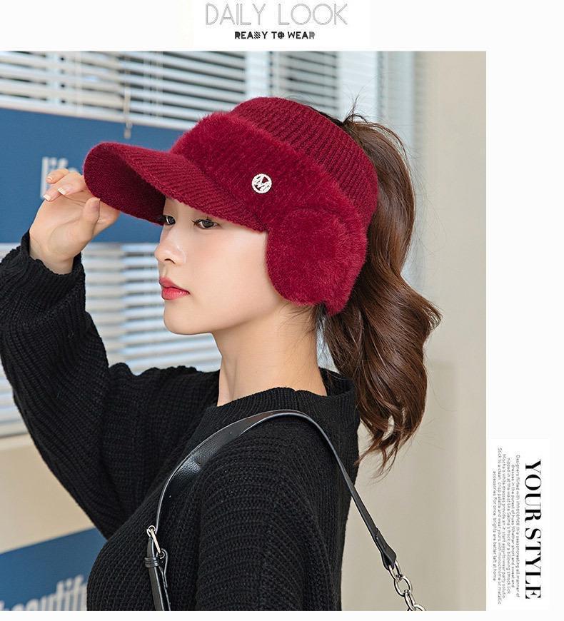 Sombrero de punto de copa vacía para otoño e invierno para mujer, para ciclismo, correr, resistente al viento, protección para los oídos, gorra de lana con visera, estilo coreano, gorra de béisbol cálida