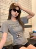 Camiseta informal de manga corta con cuello redondo y estampado de leopardo para mujer, talla europea, de comercio exterior