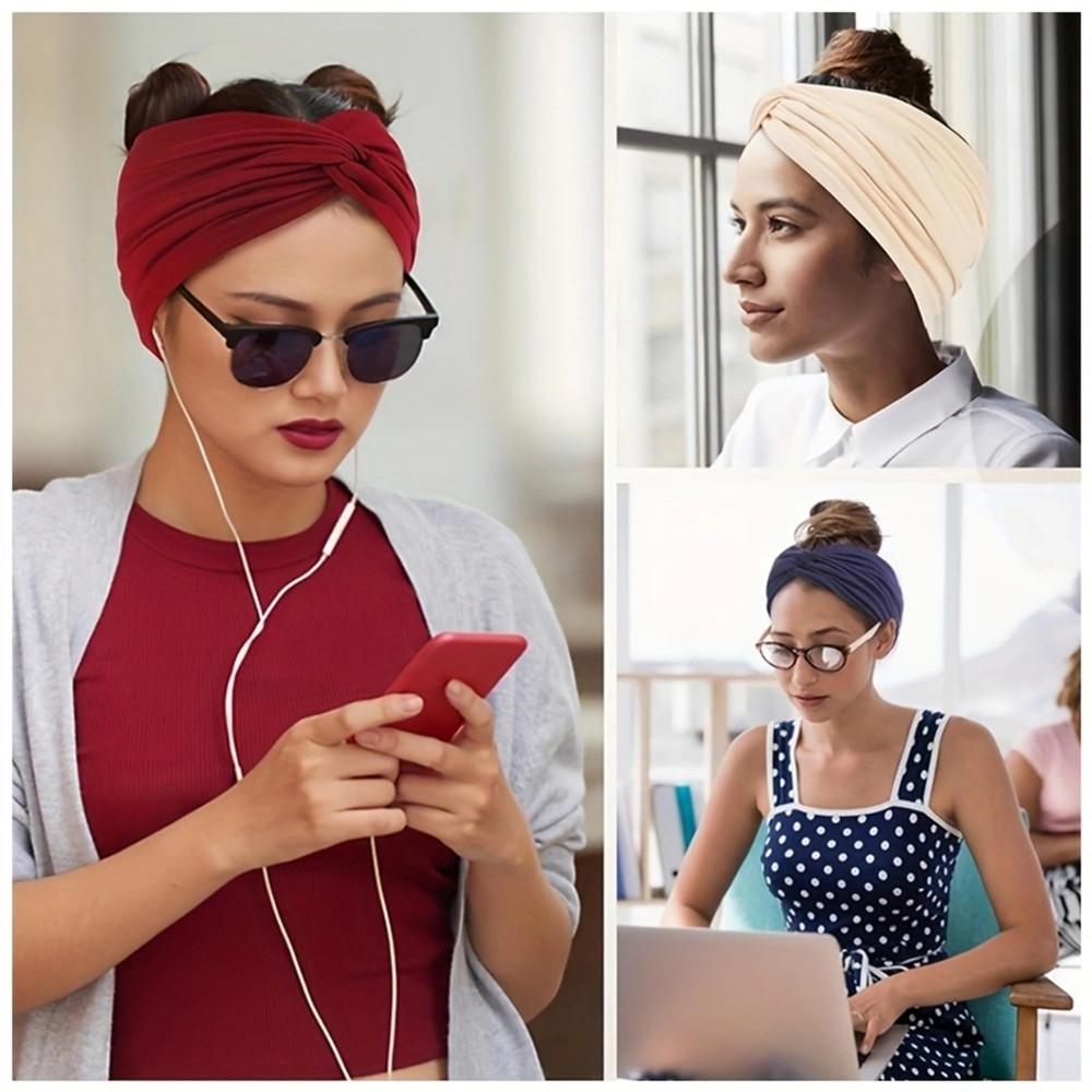 Diadema deportiva elástica de color sólido con nudo cruzado de Amazon para Europa y América.