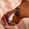 Broche de estilo coreano, sencillo y elegante, con incrustaciones de diamantes para hombre y mujer, con diseño de animal, ramillete vintage, accesorios de ropa de gato blanco y negro.