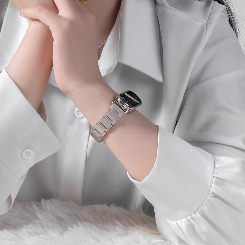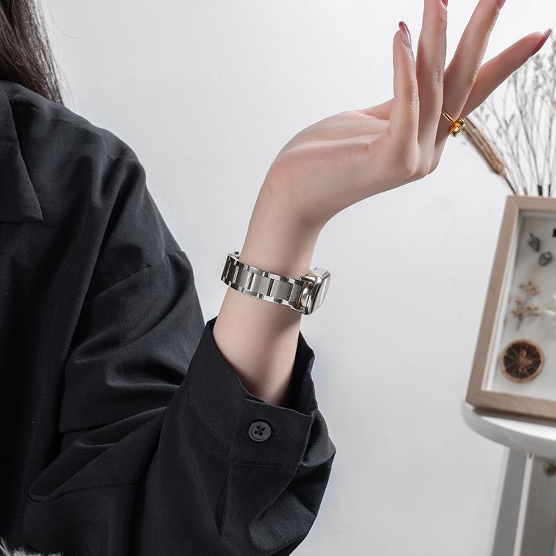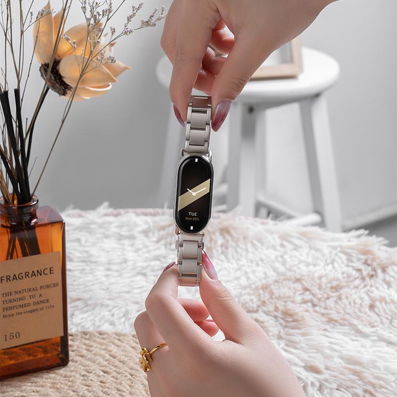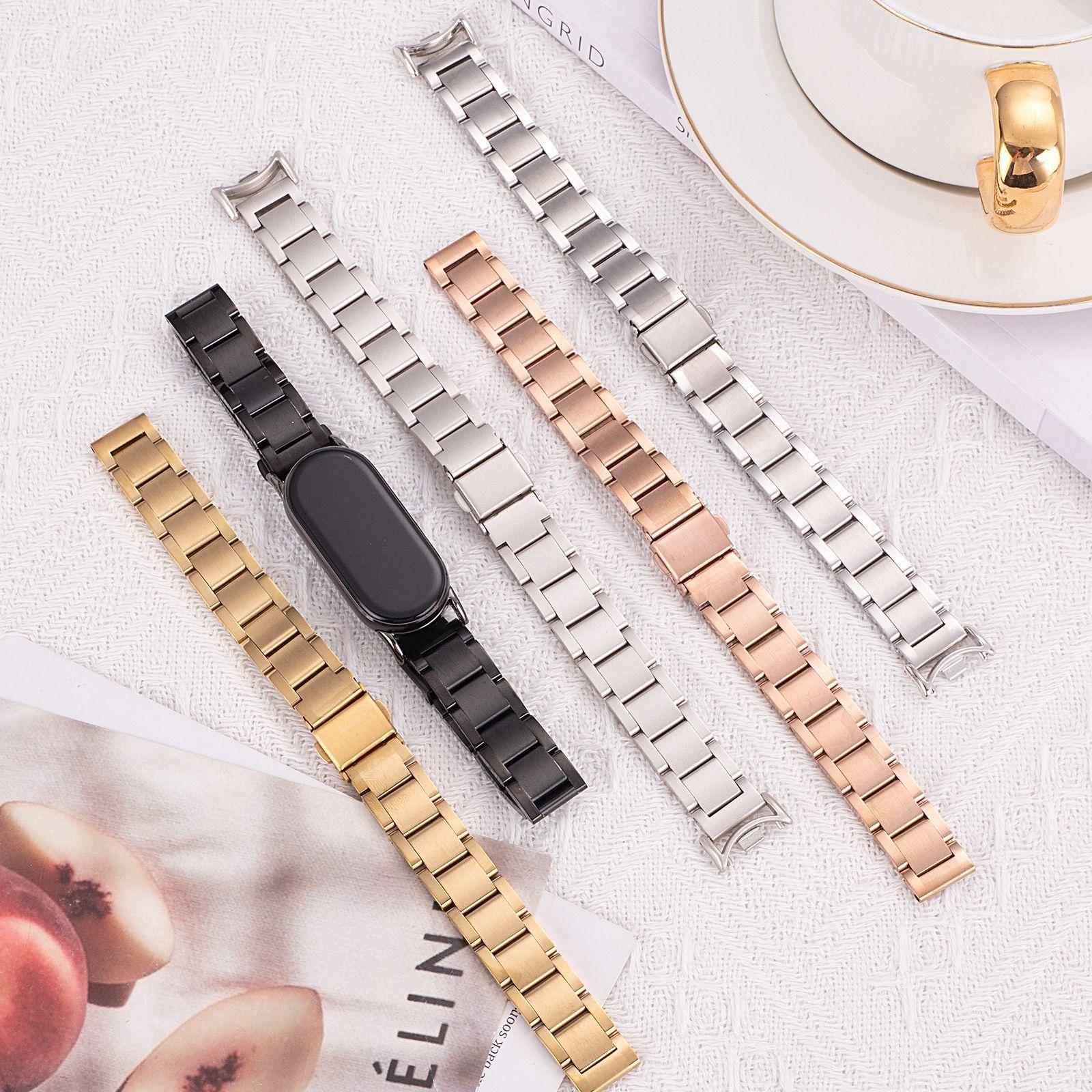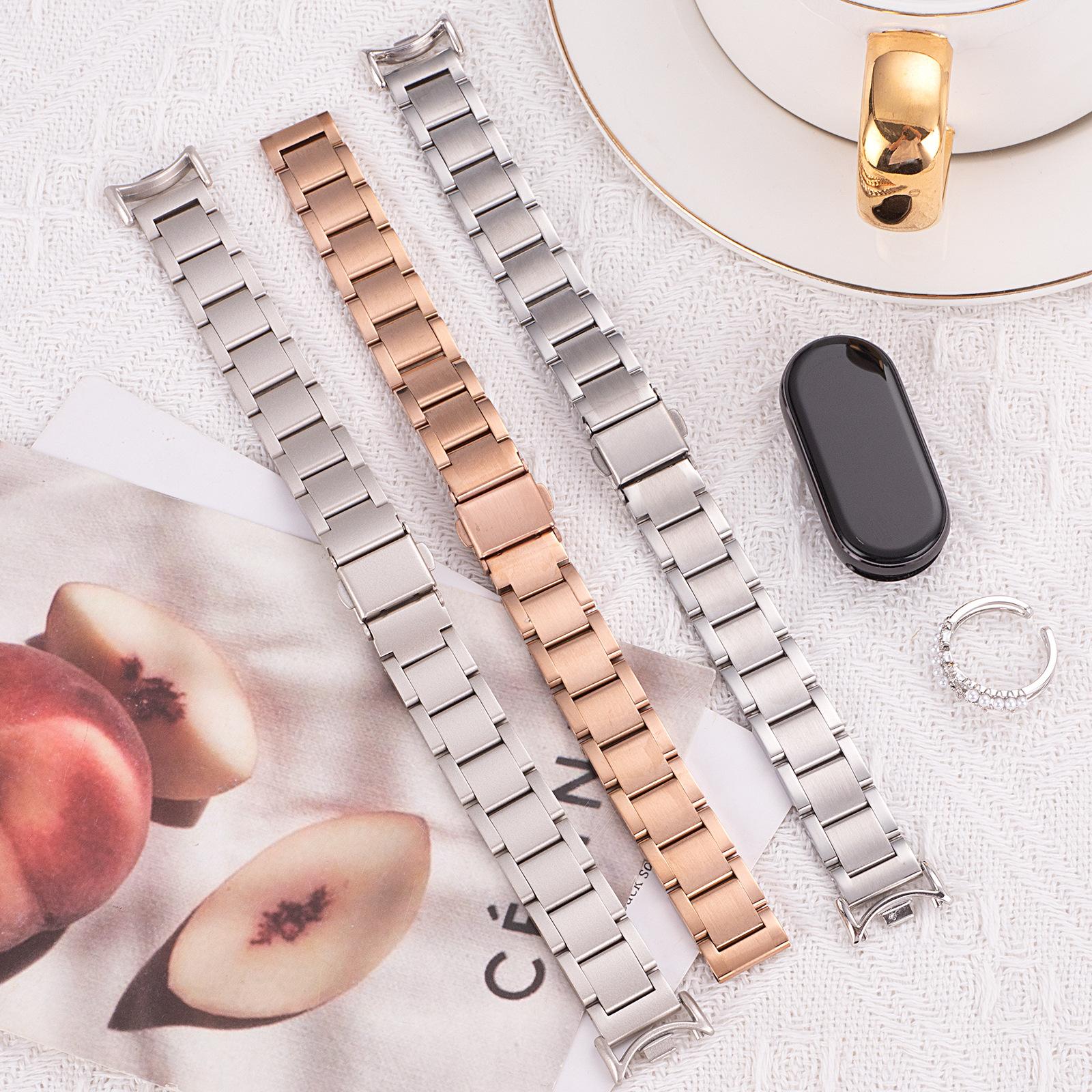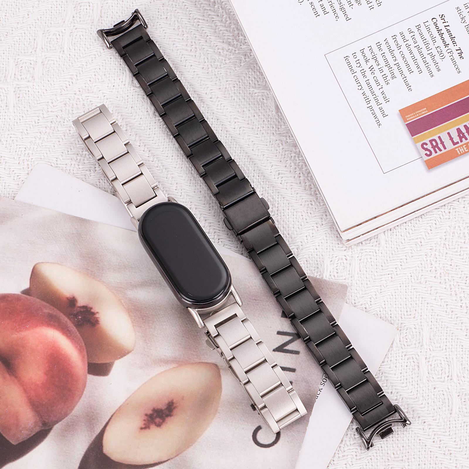 Adecuado para Xiaomi Mi Band 9 Correa de Reloj Acero Inoxidable Tres Cuentas Sólido Metal Arena Media Versión NFC Pulsera Correa de Reloj para Hombre y Mujer