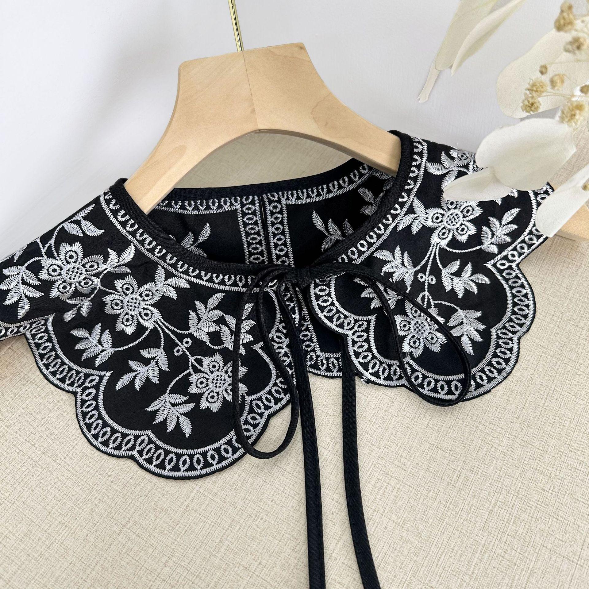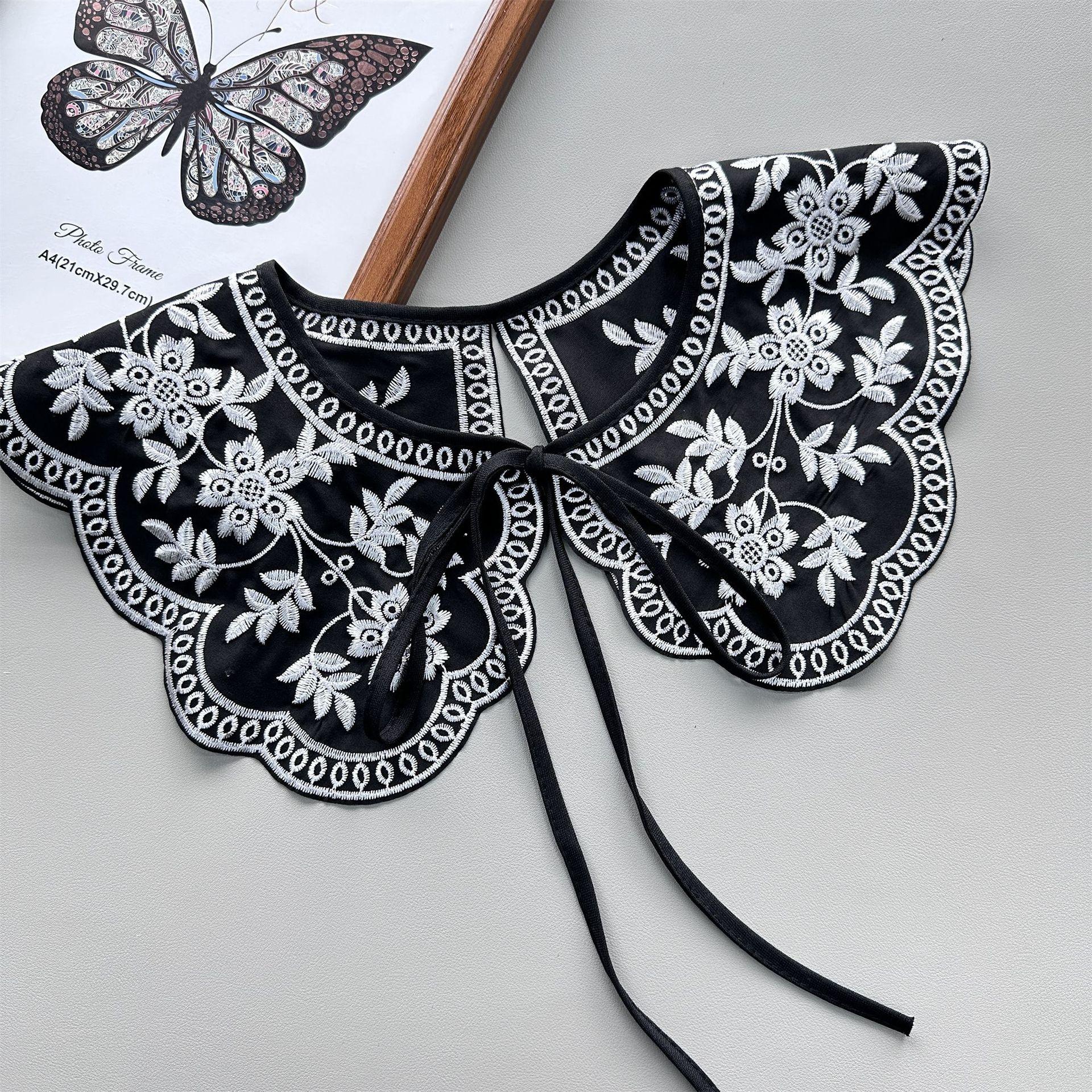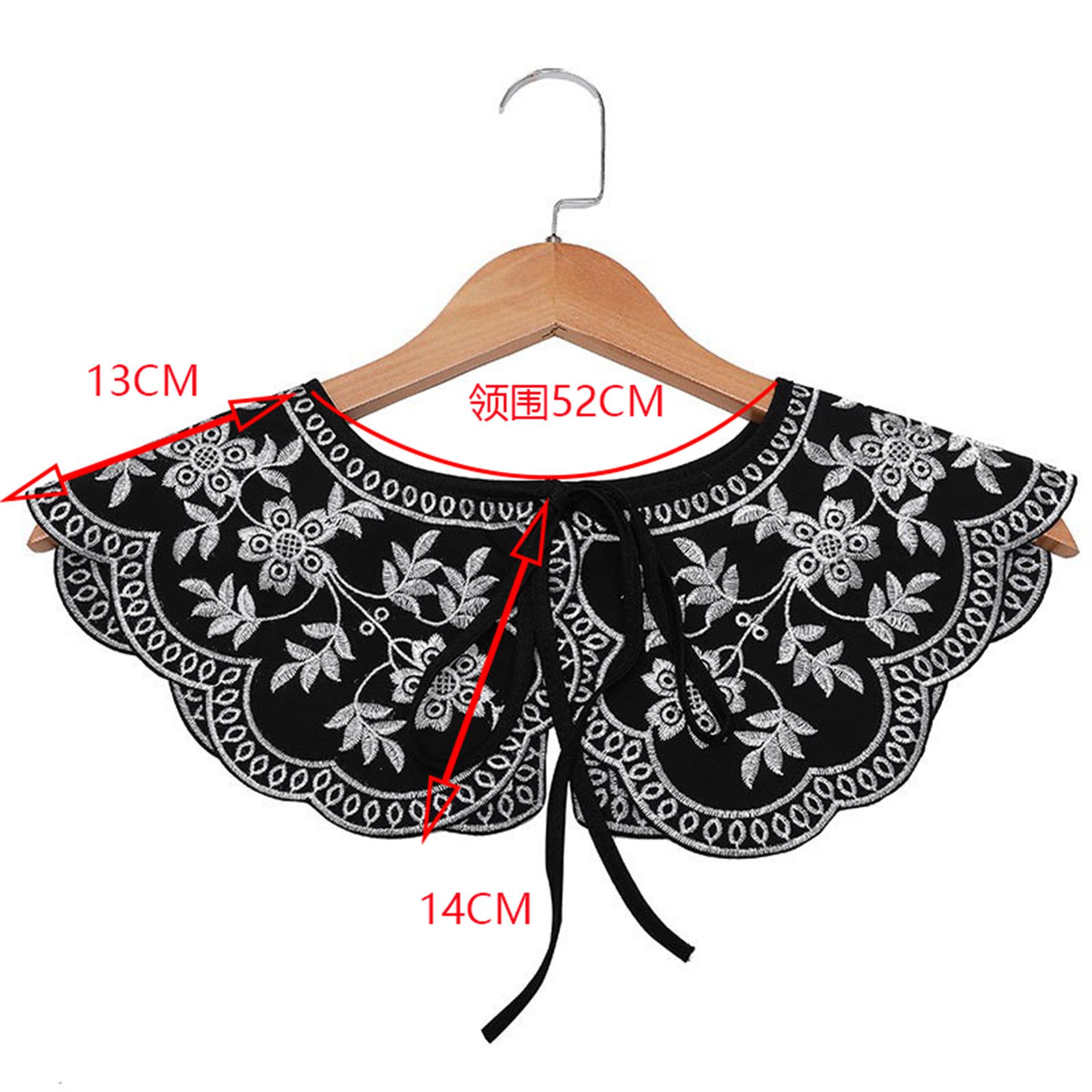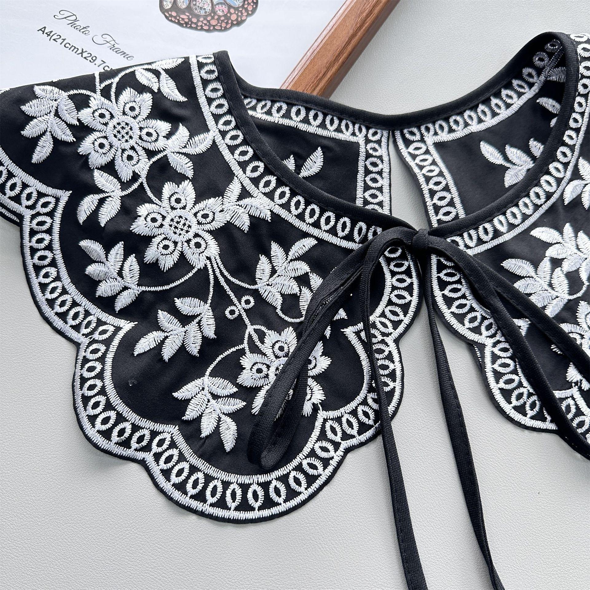 Encaje Negro con Cordones Cuello de Muñeca Bordado Cuello Falso Estilo Étnico Ropa a Juego Camisa Falda Cuello Pequeño Flor Nube Chal de Hombro