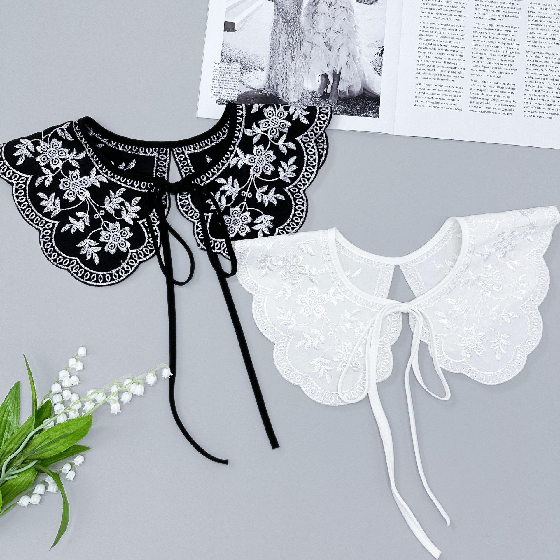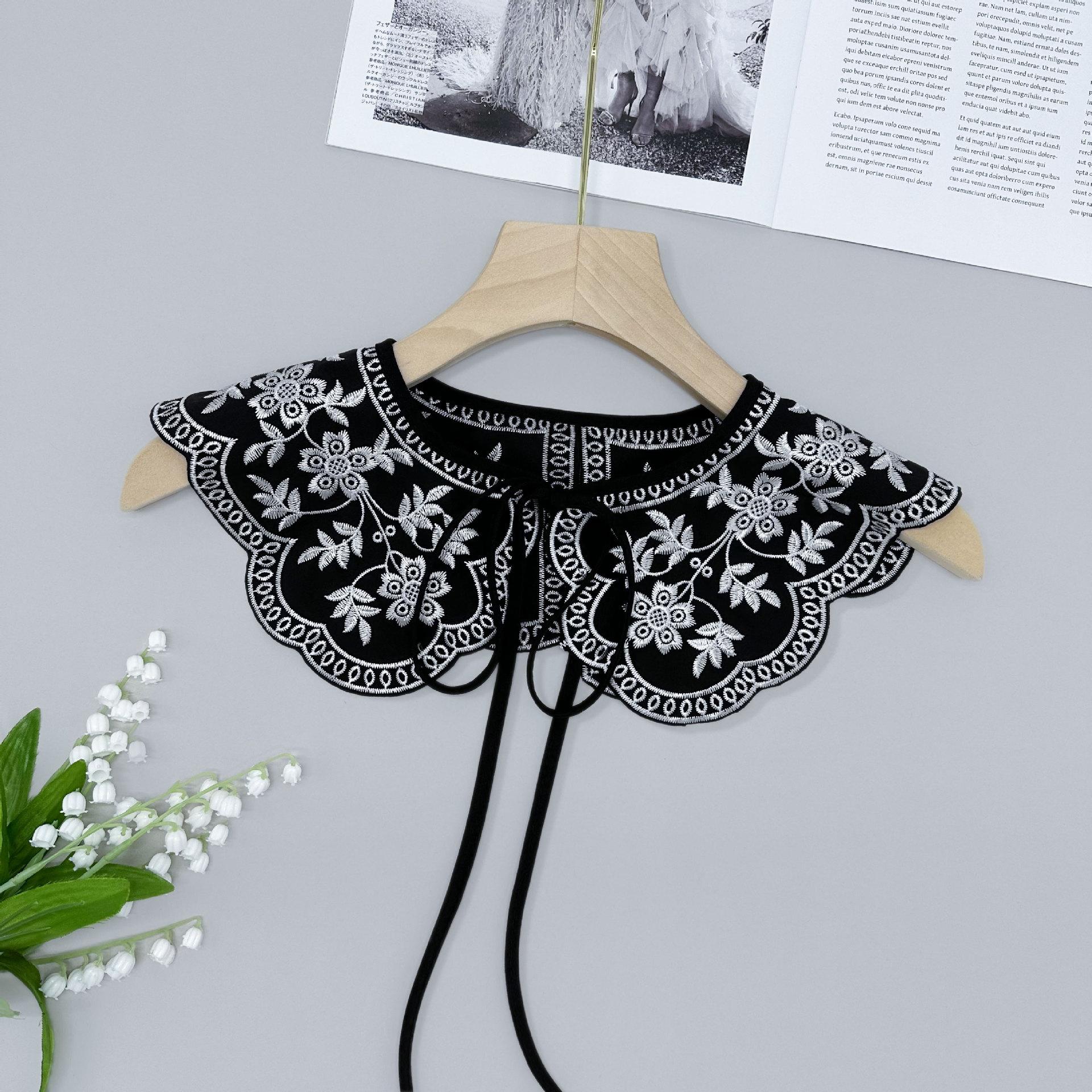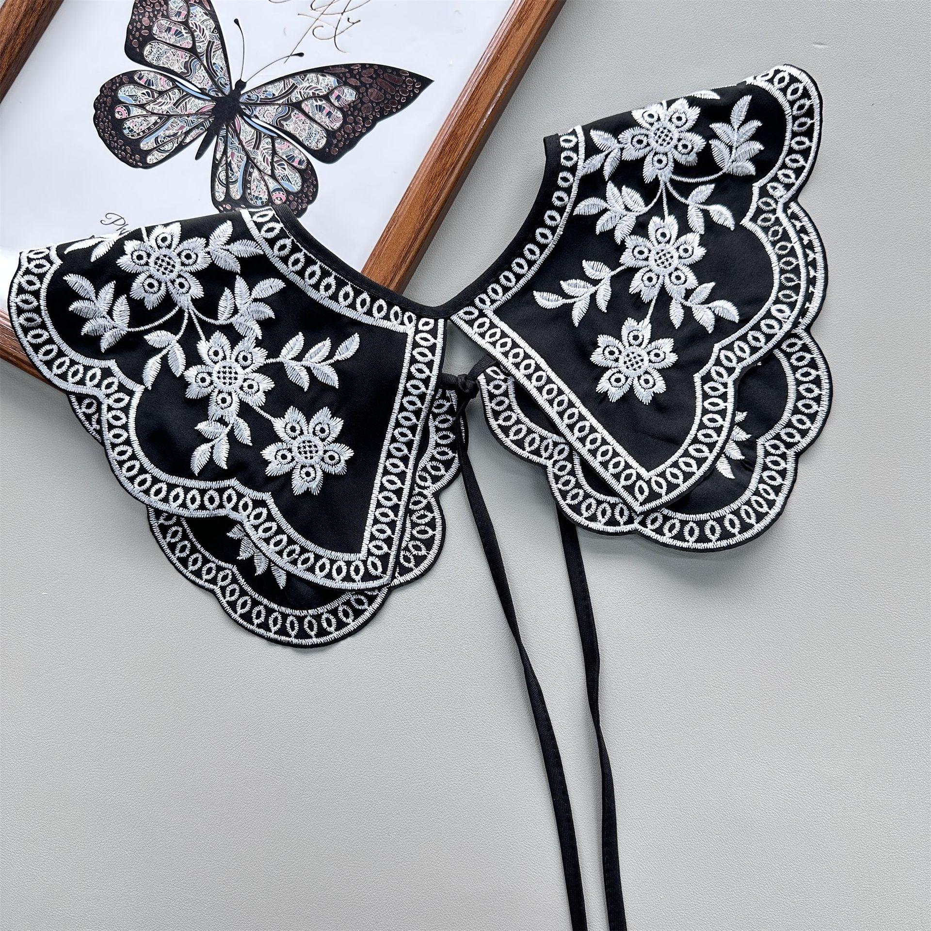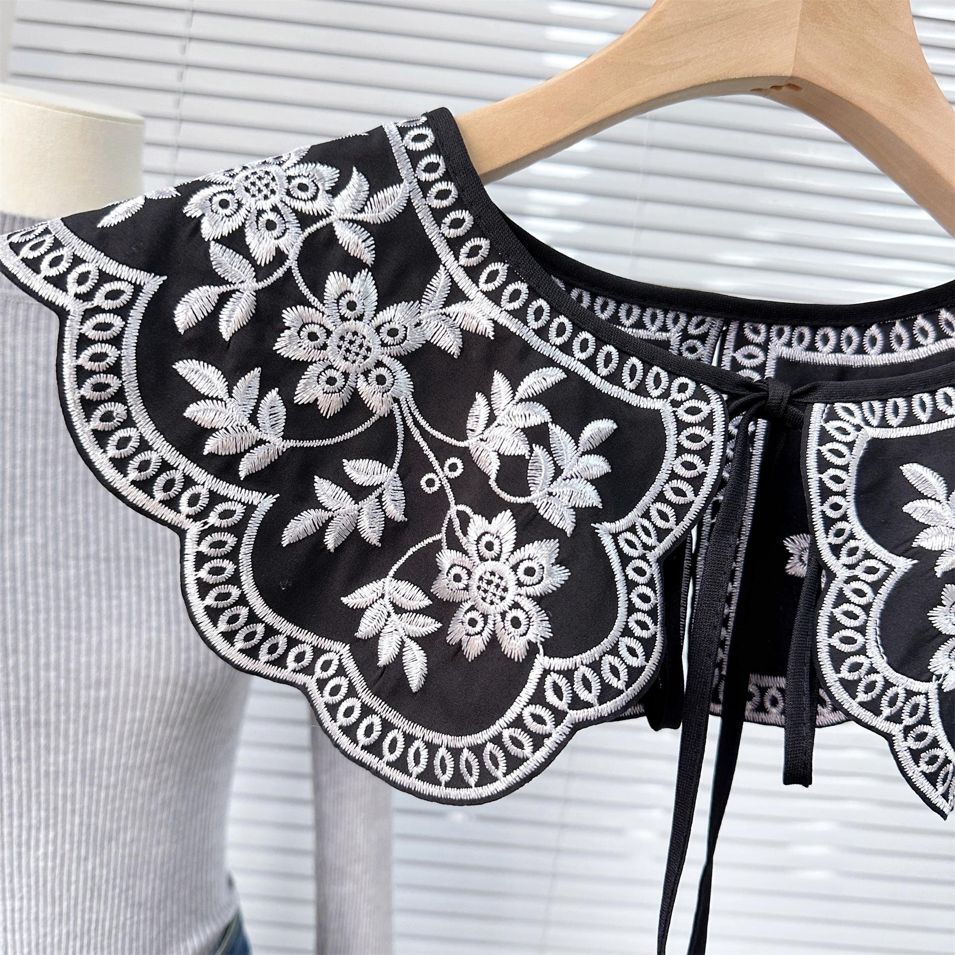 Encaje Negro con Cordones Cuello de Muñeca Bordado Cuello Falso Estilo Étnico Ropa a Juego Camisa Falda Cuello Pequeño Flor Nube Chal de Hombro