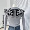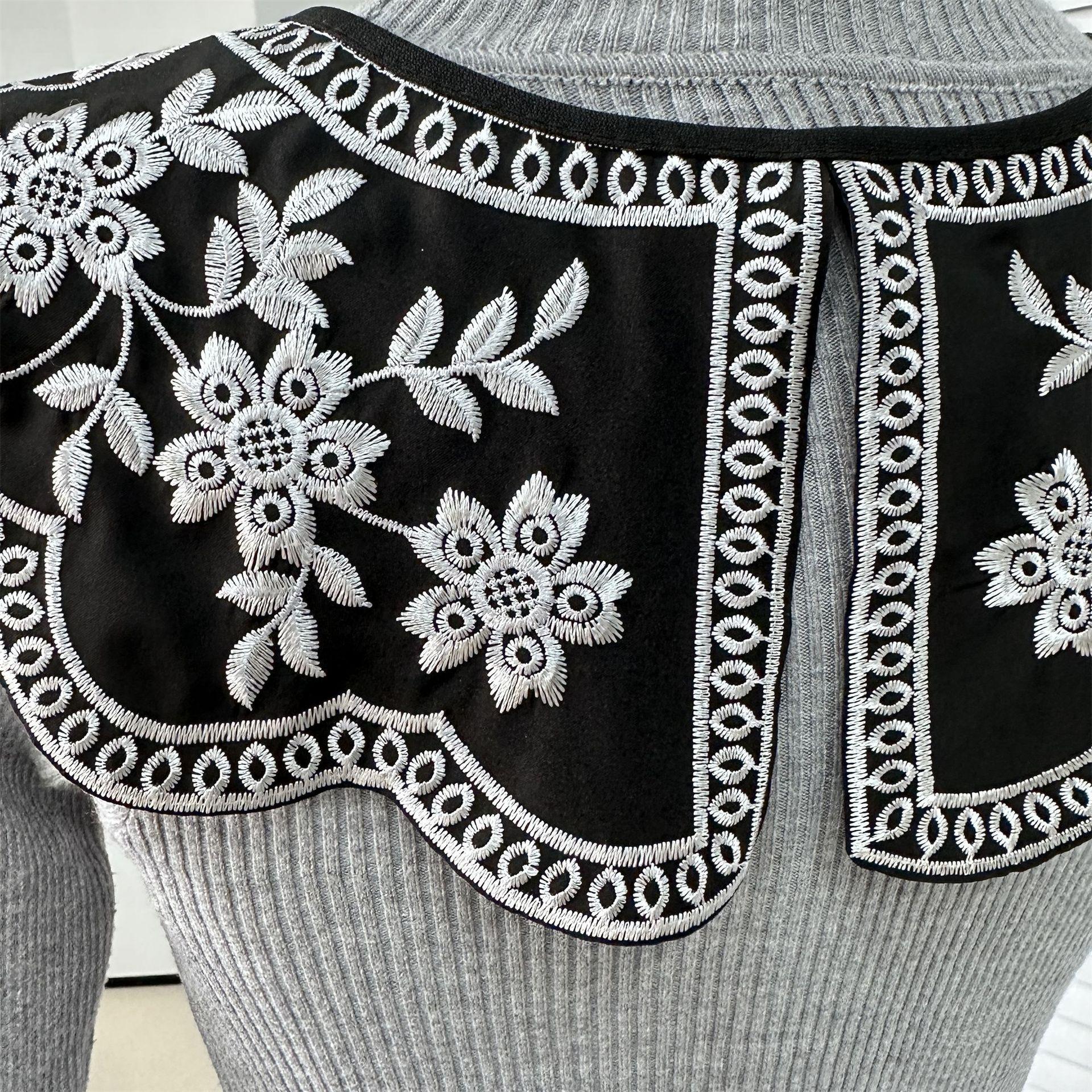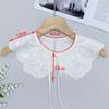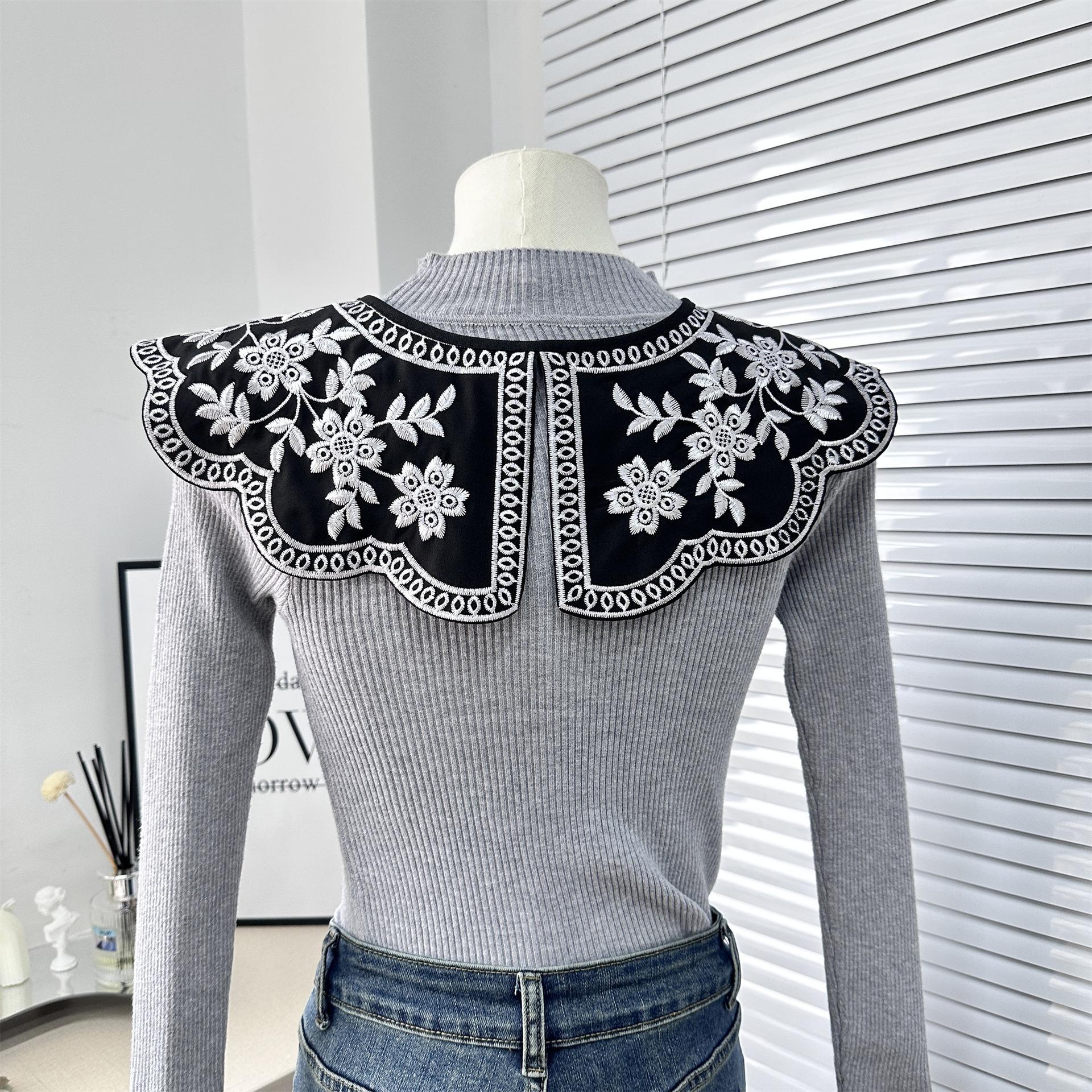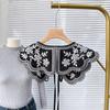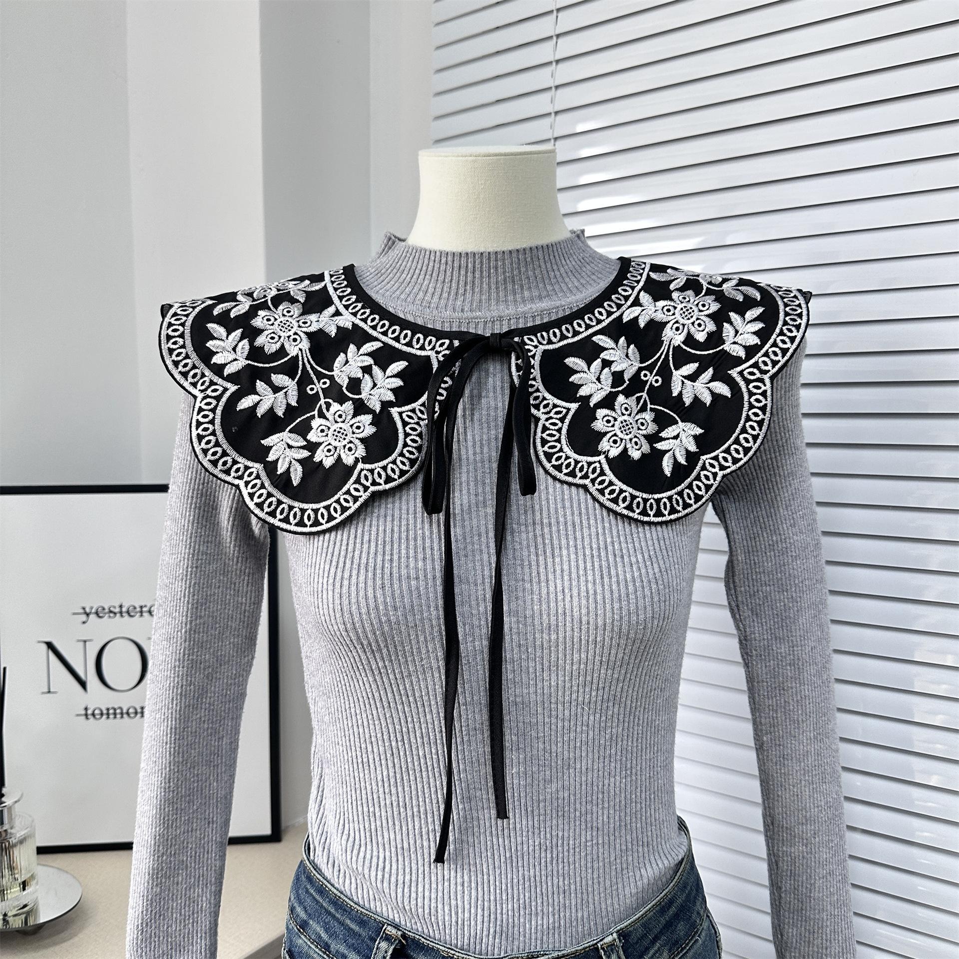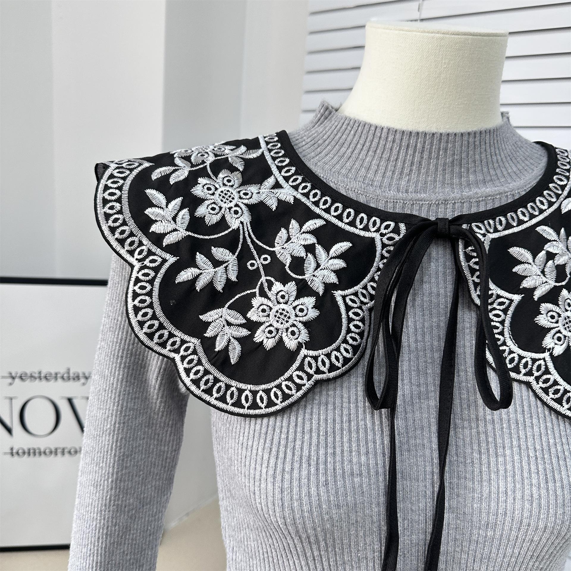 Encaje Negro con Cordones Cuello de Muñeca Bordado Cuello Falso Estilo Étnico Ropa a Juego Camisa Falda Cuello Pequeño Flor Nube Chal de Hombro
