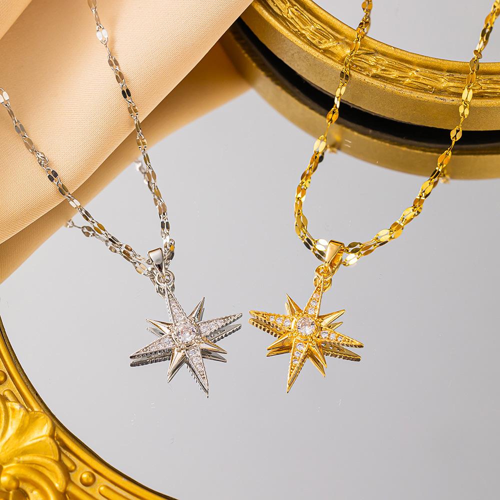 Collar de acero de titanio con estrella de seis puntas de lujo, estilo francés, ligero y de alta gama, para mujer, cadena de clavícula con microincrustaciones, ocho meteoritos para hombre, elegante y a la moda.