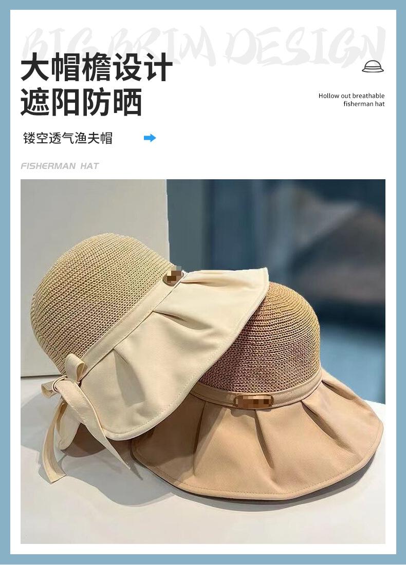 Sombrero de pescador de ala ancha transpirable para mujer, sombrero de verano para el sol, estilo coreano, combina con todo, protección solar para exteriores.