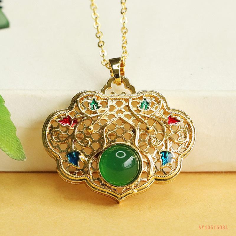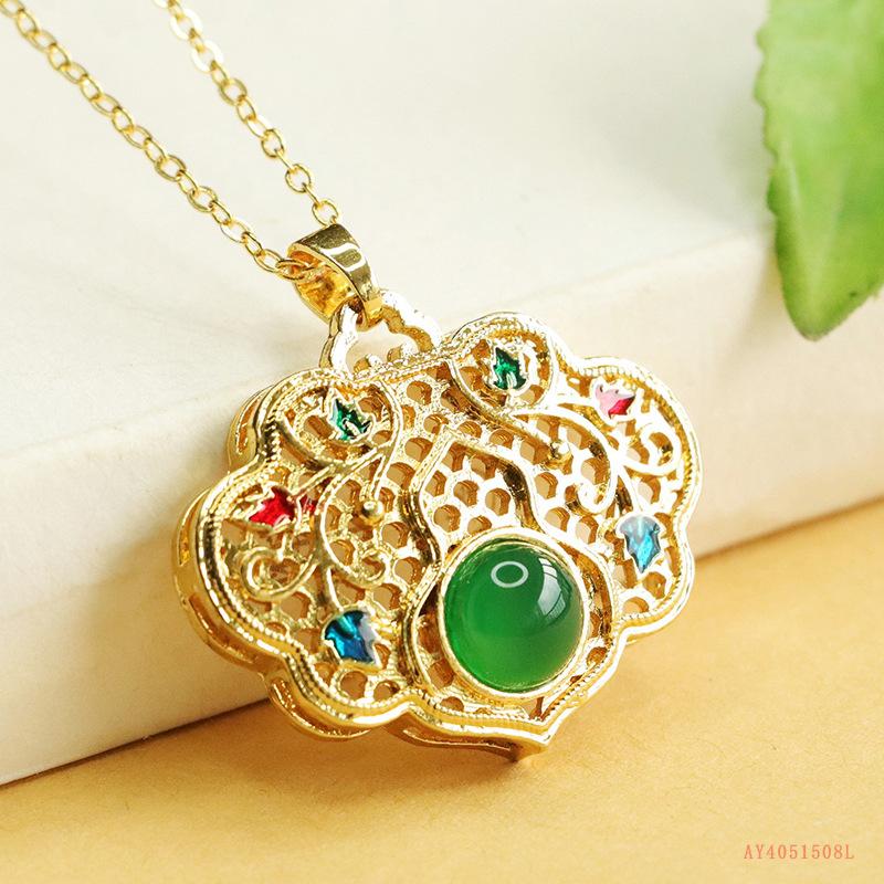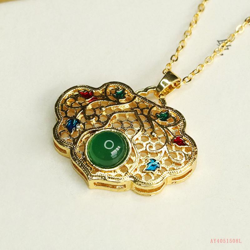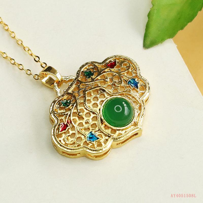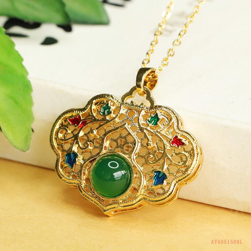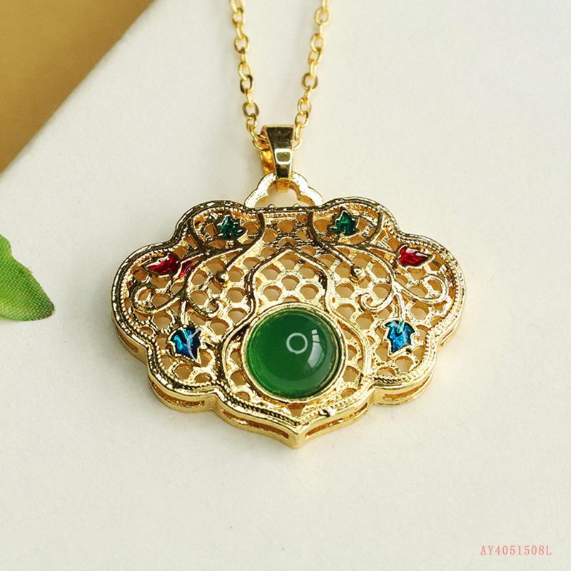 Colgante de ágata verde Aiyu Ruyi, collar de cristal de calcedonia de hielo, estilo chino, venta al por mayor, AY4051508L
