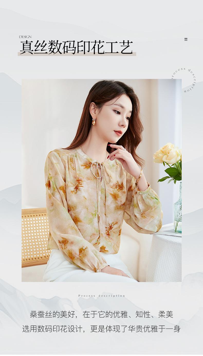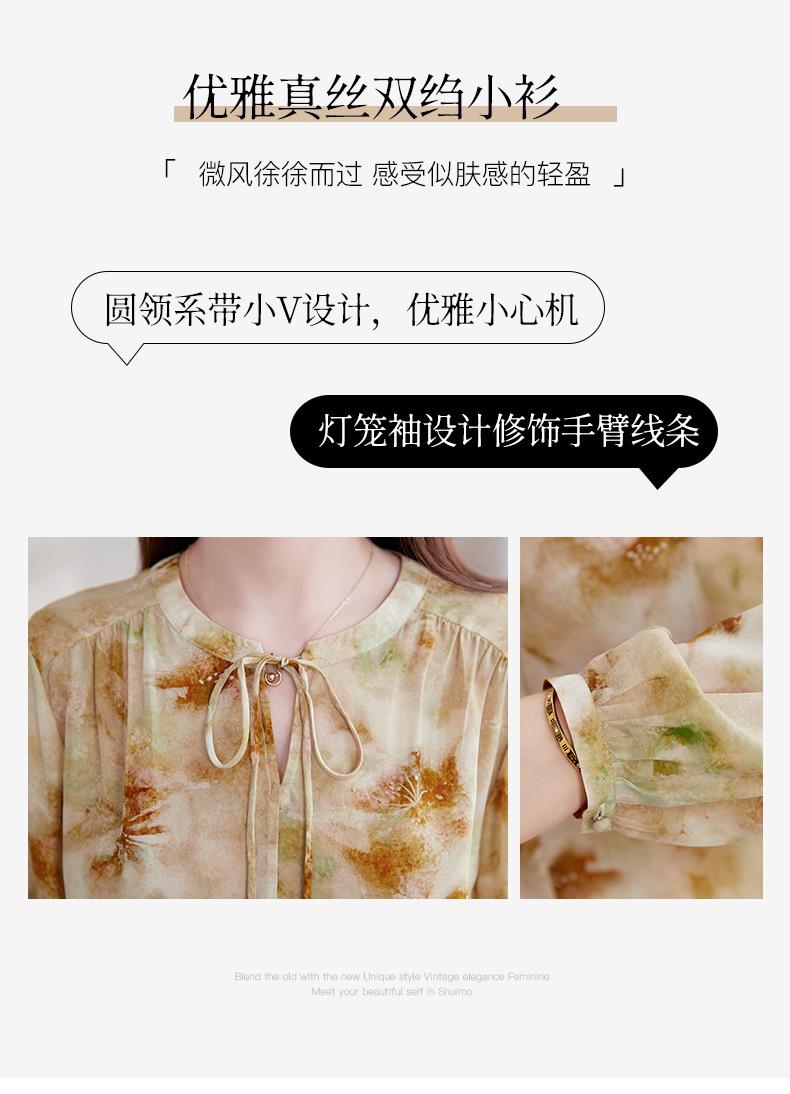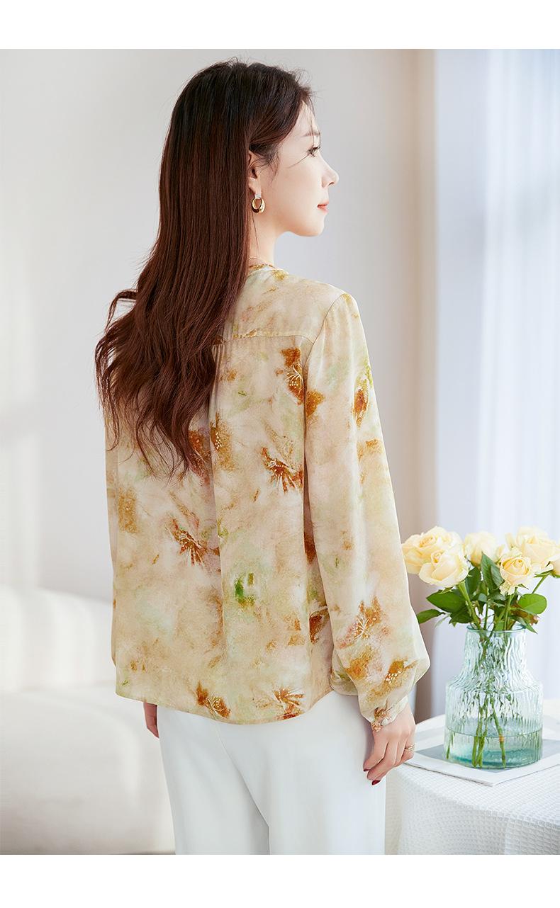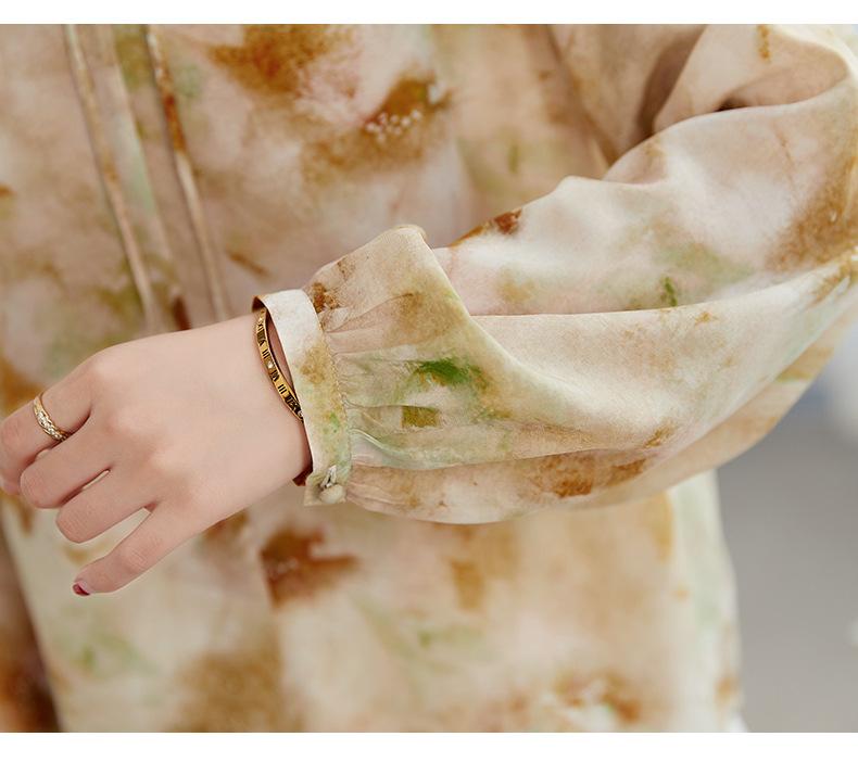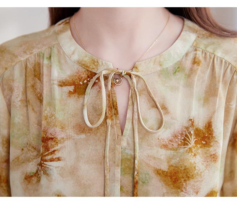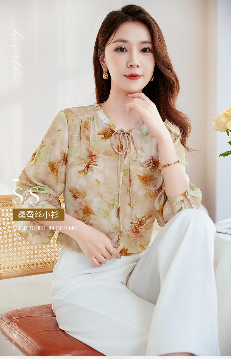 [Seda de Morera 100%] 2025 Xia Xin Estilo Nacional Camisa de Seda Suelta para Mujer Talla Grande Slim Estampada 9628