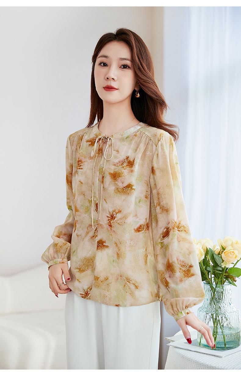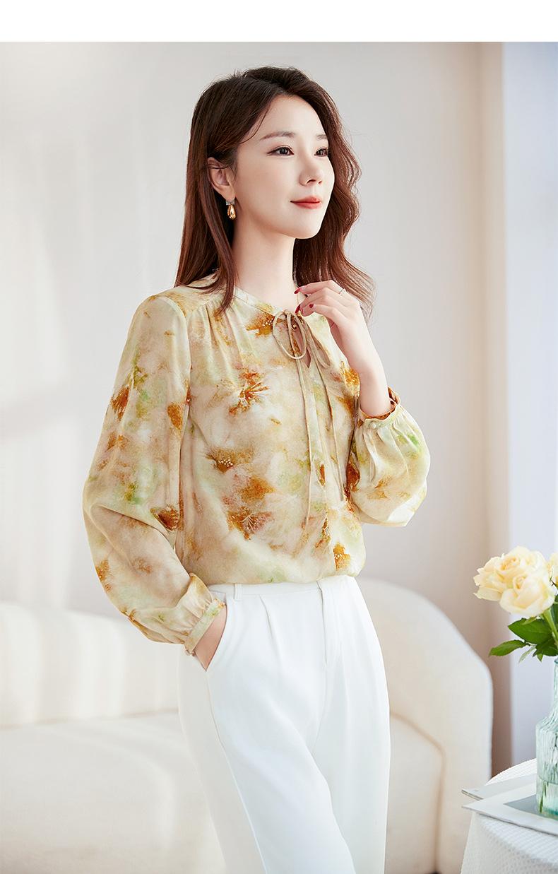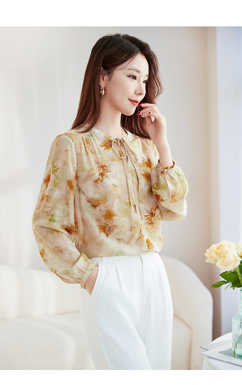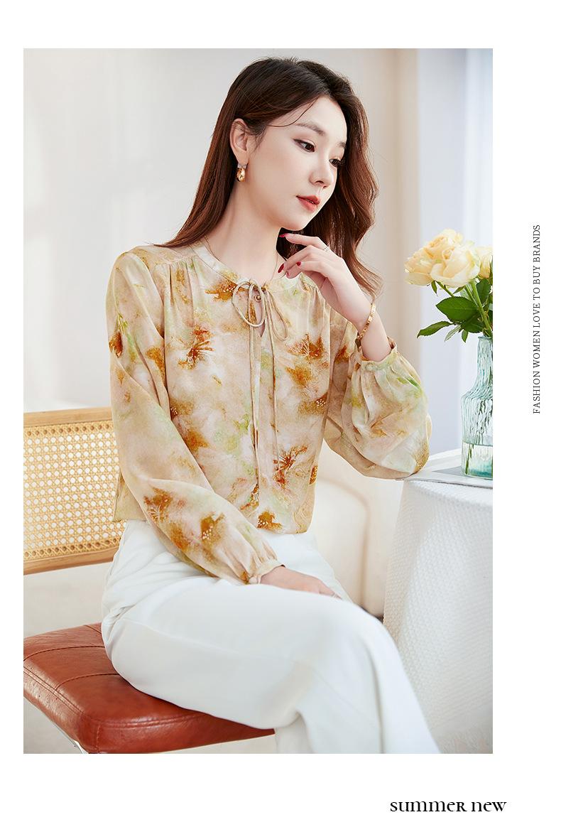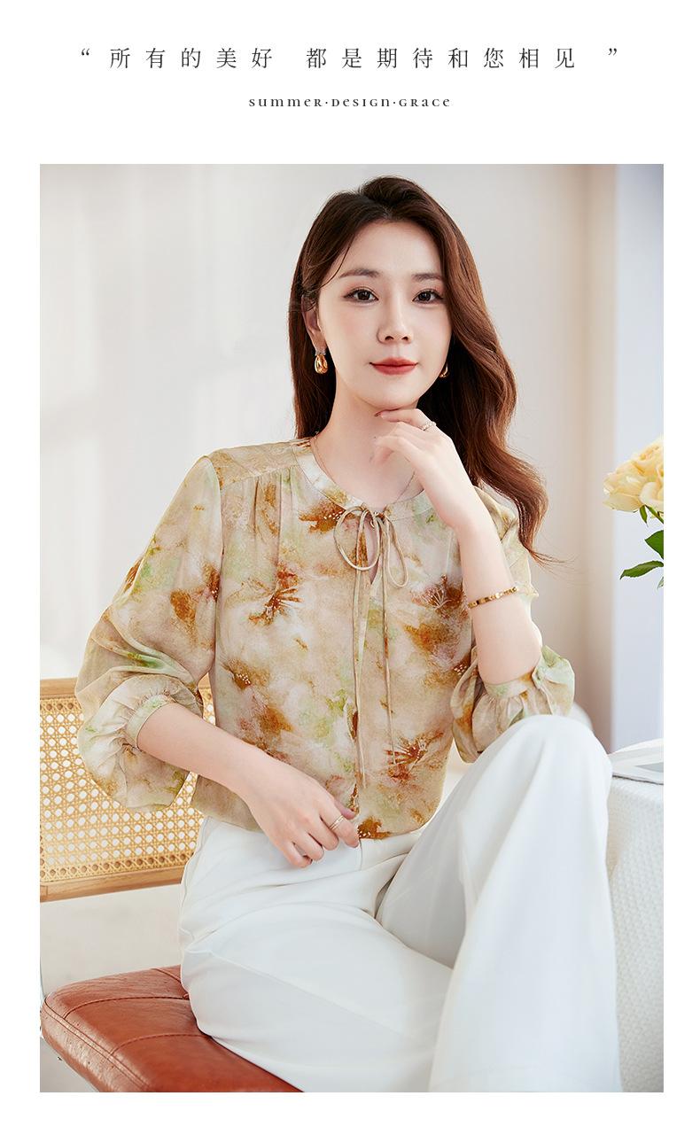 [Seda de Morera 100%] 2025 Xia Xin Estilo Nacional Camisa de Seda Suelta para Mujer Talla Grande Slim Estampada 9628