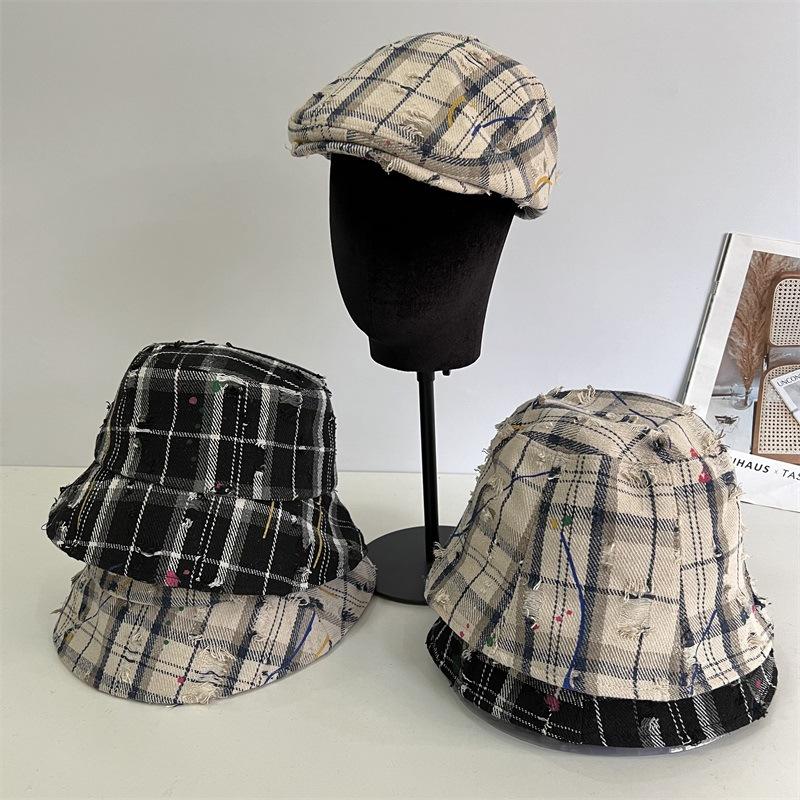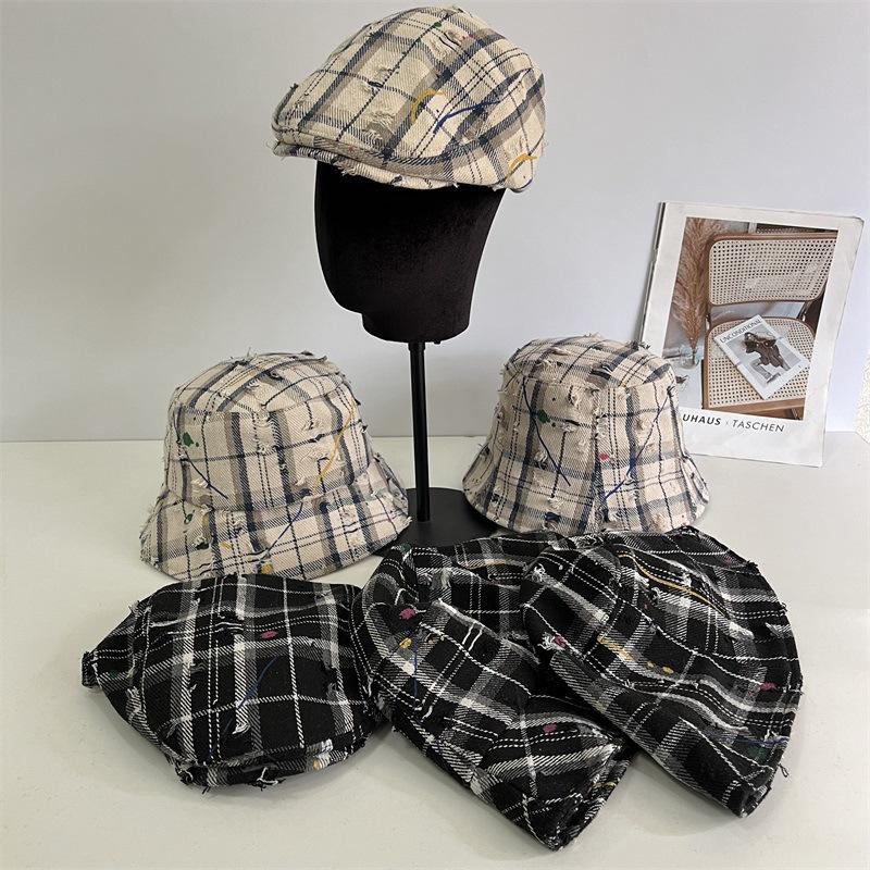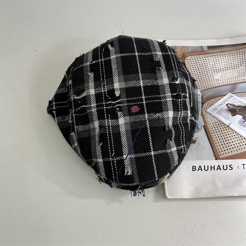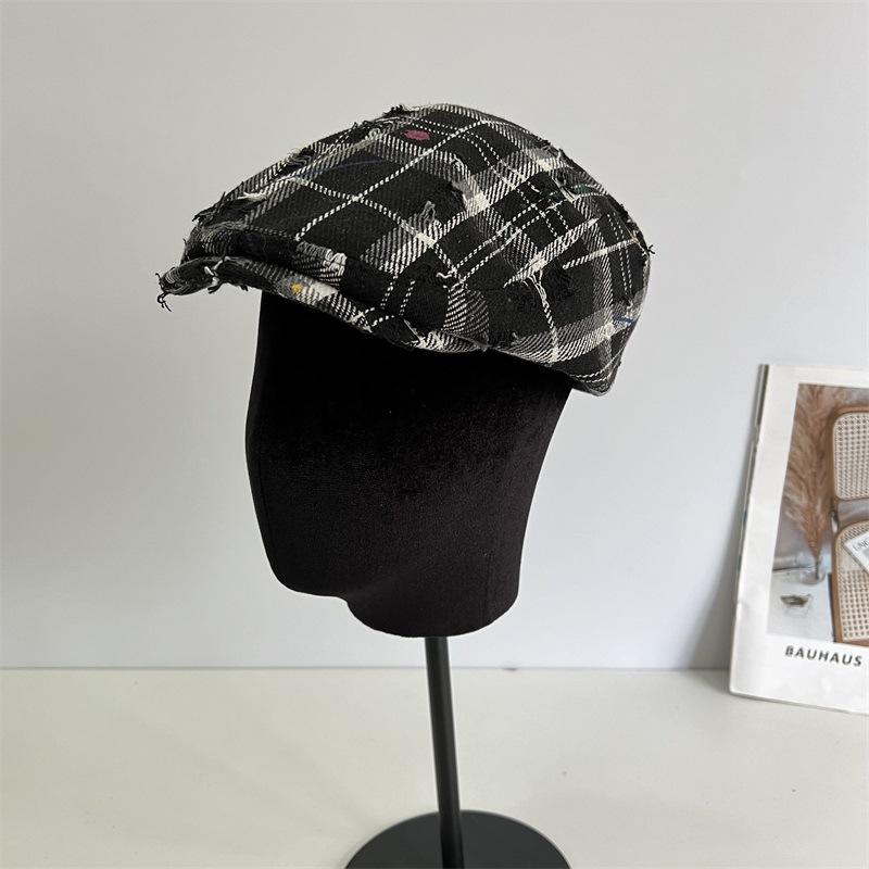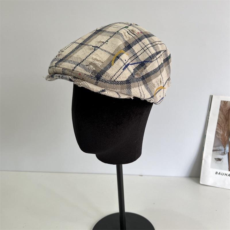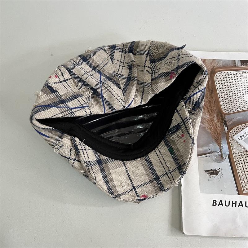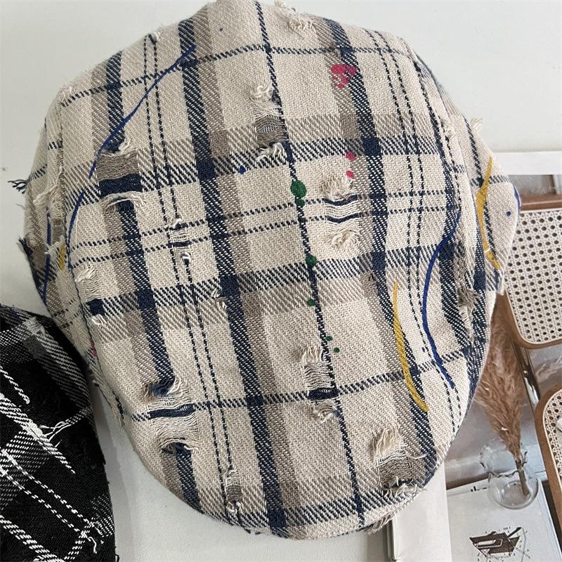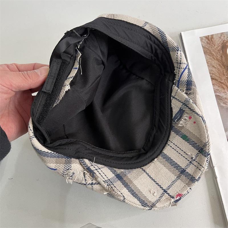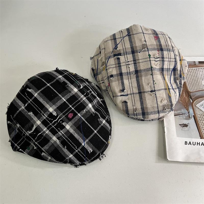 Gorra Progresiva de Cuadros Retro para Niños Moda de Primavera y Otoño Boina Graffiti Desgarrada Sombrero de Pintor Gorra de Uso Frontal y Reverso