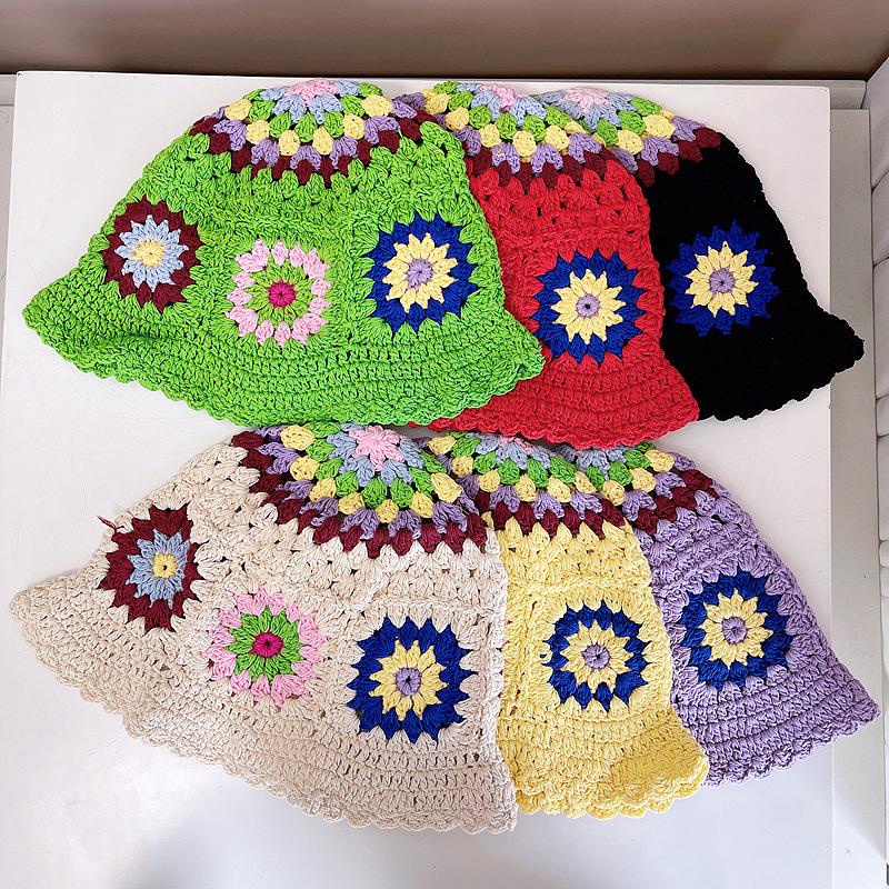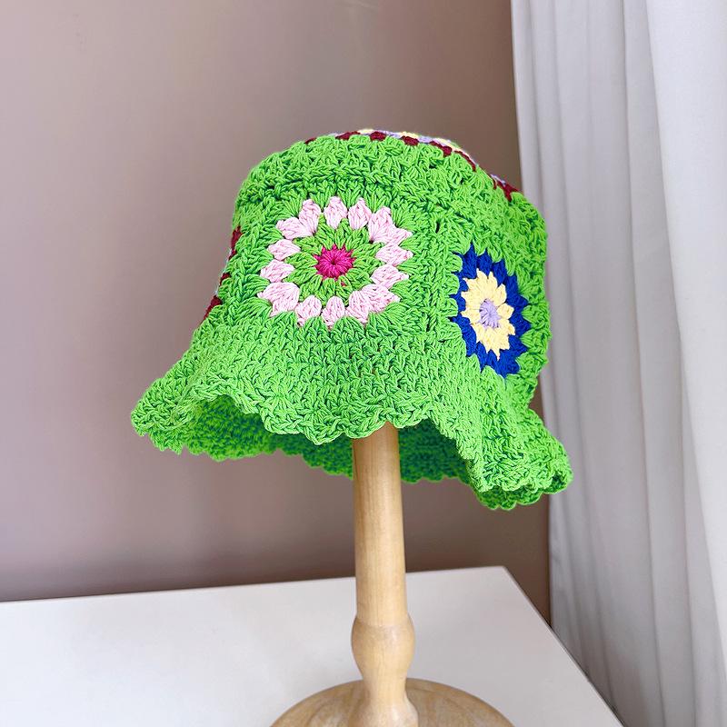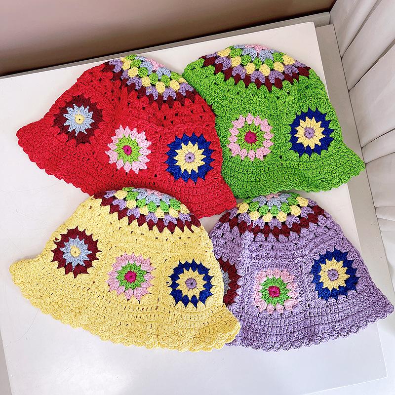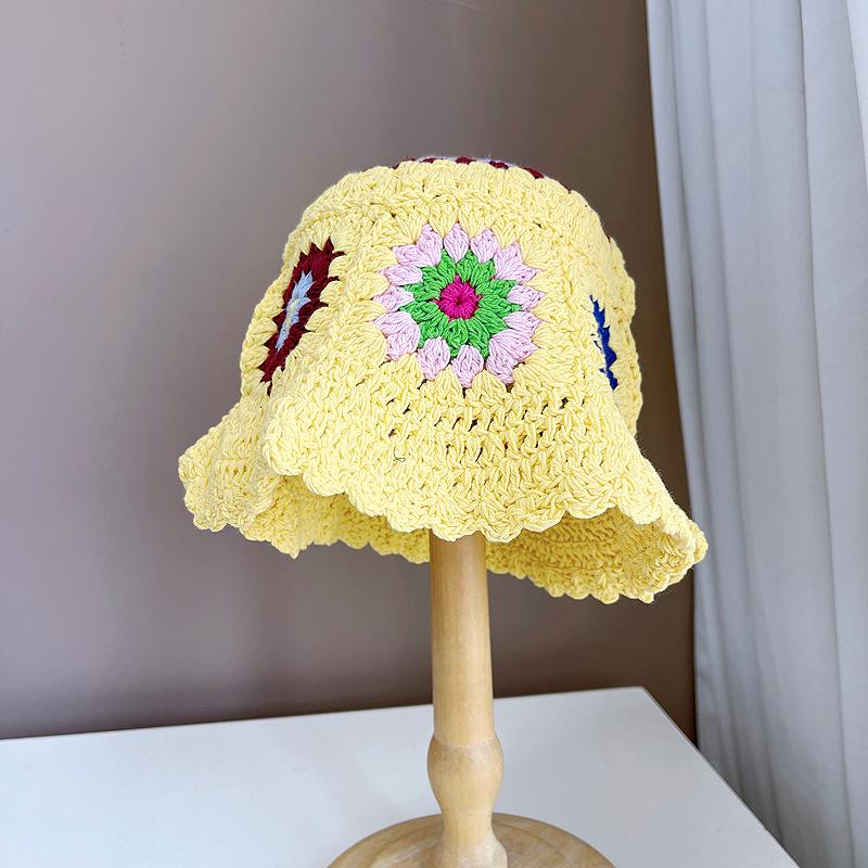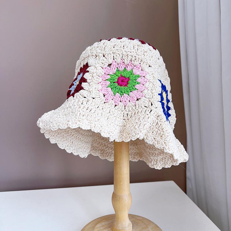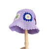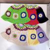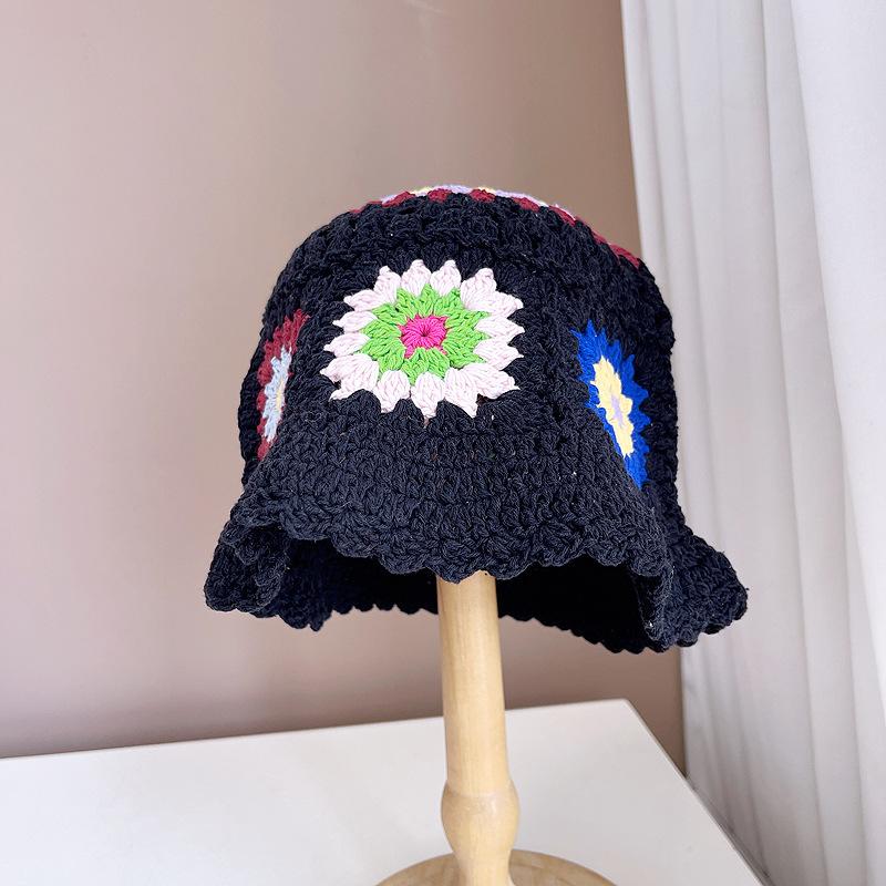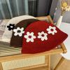 Sombrero de pescador de lana vintage hecho a mano con color de nicho para mujer, tejido con flores para otoño, estilo Hyun Ya, color contrastante, moderno.