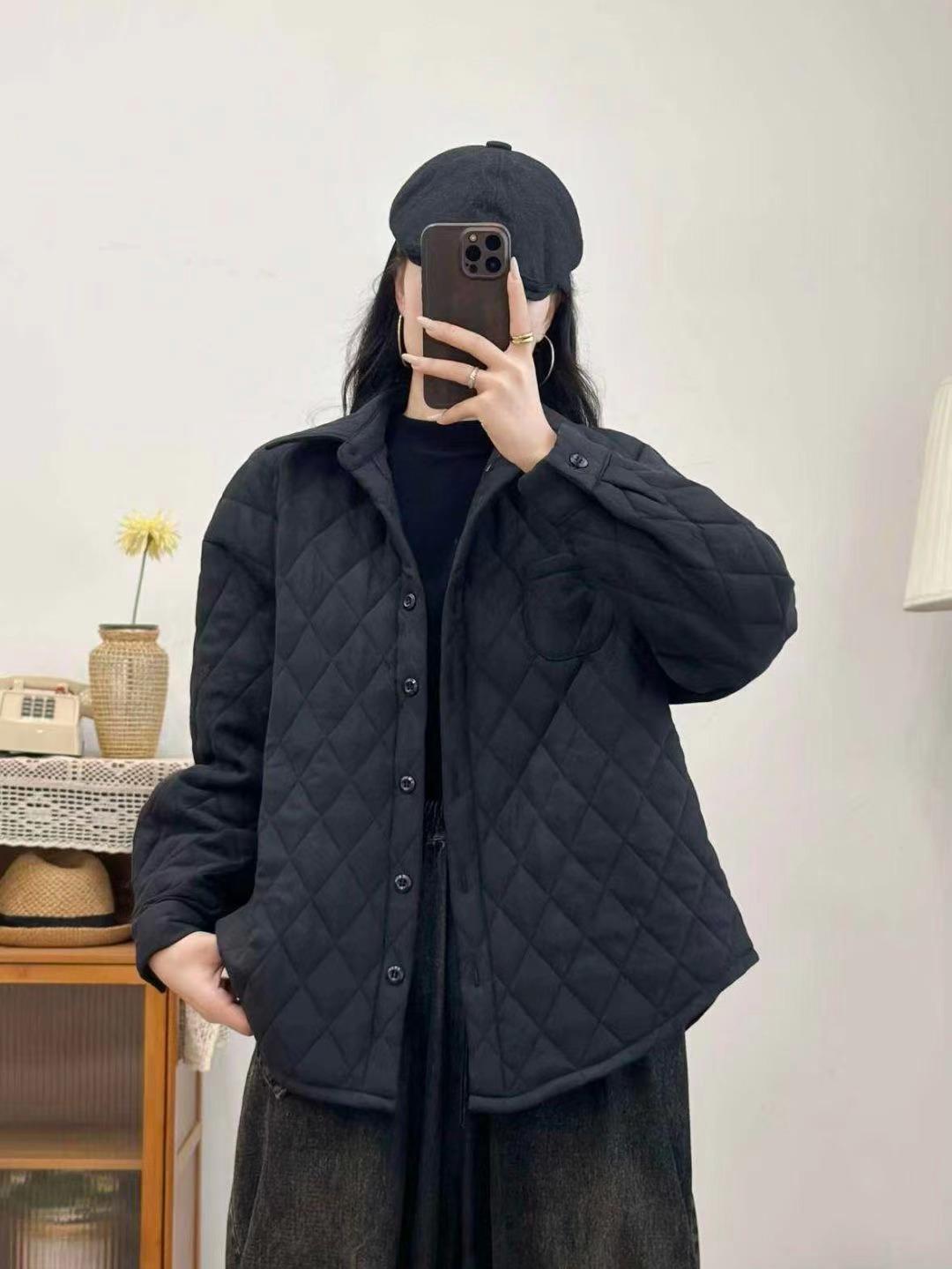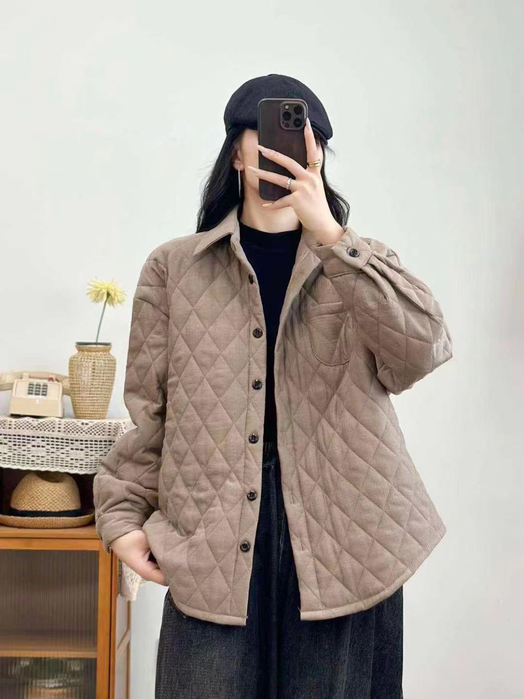 Abrigo informal acolchado de algodón para mujer, otoño e invierno, nuevo, holgado, talla grande, para chica gordita, largo medio, solapa romboidal, top versátil