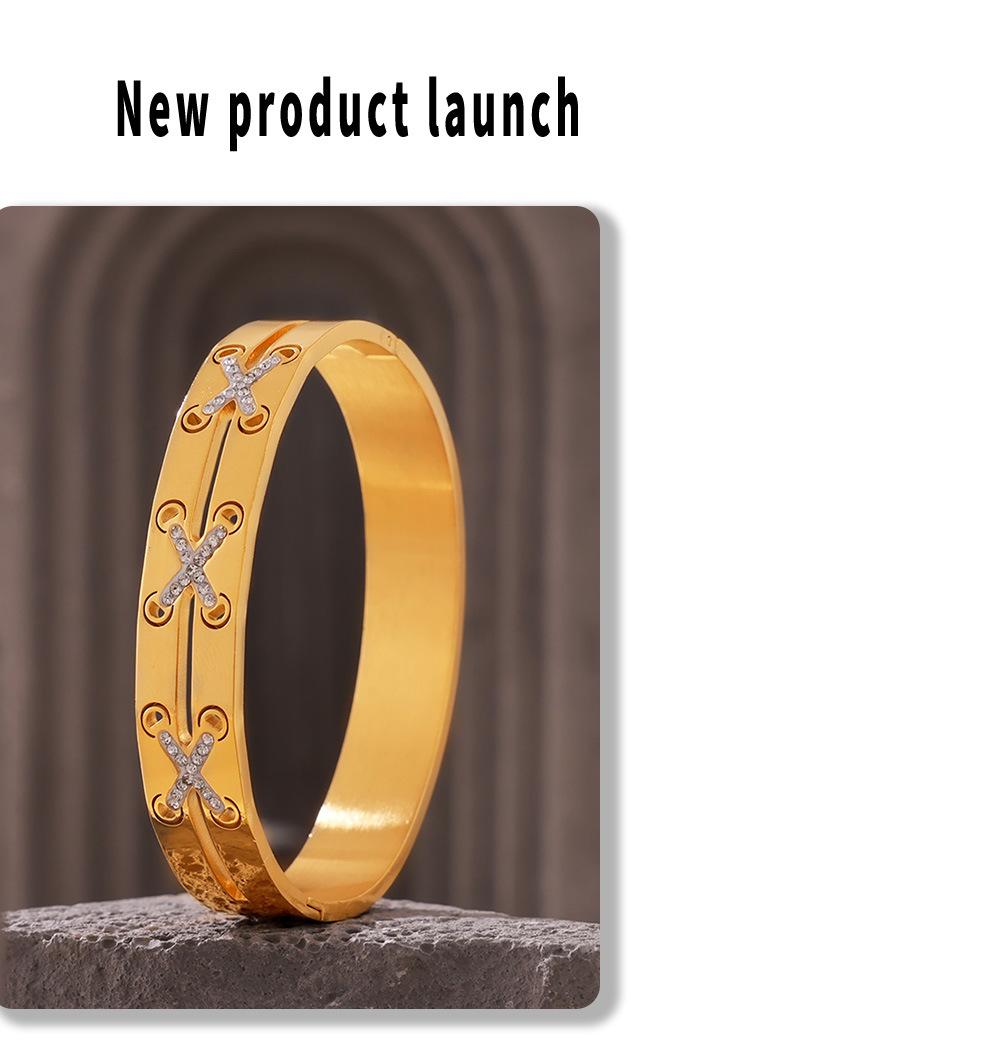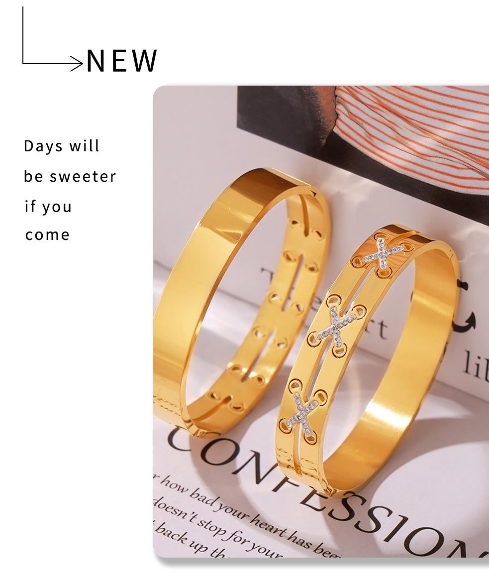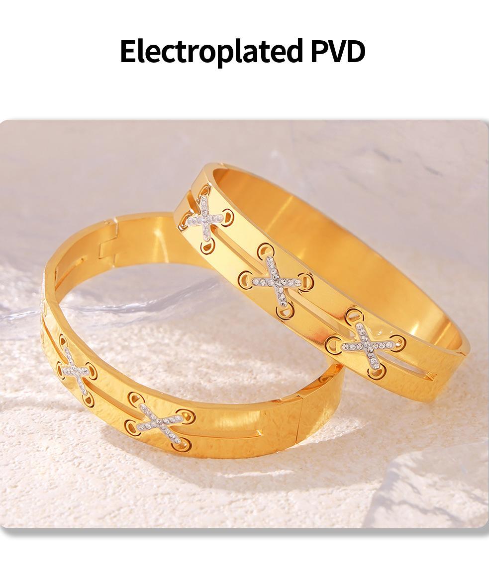 Pulsera exagerada con diseño de tendencia de cruz de diamantes con personalidad caliente transfronteriza entre Europa y Estados Unidos, joyería vintage de acero inoxidable al por mayor
