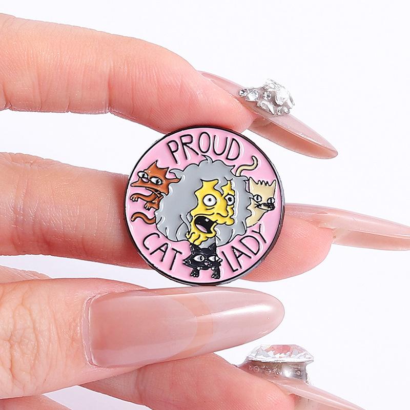 Broche de modelado de personajes lindos creativos de dibujos animados europeos y americanos, insignia de accesorios de metal de gato de animación con personalidad transfronteriza al por mayor