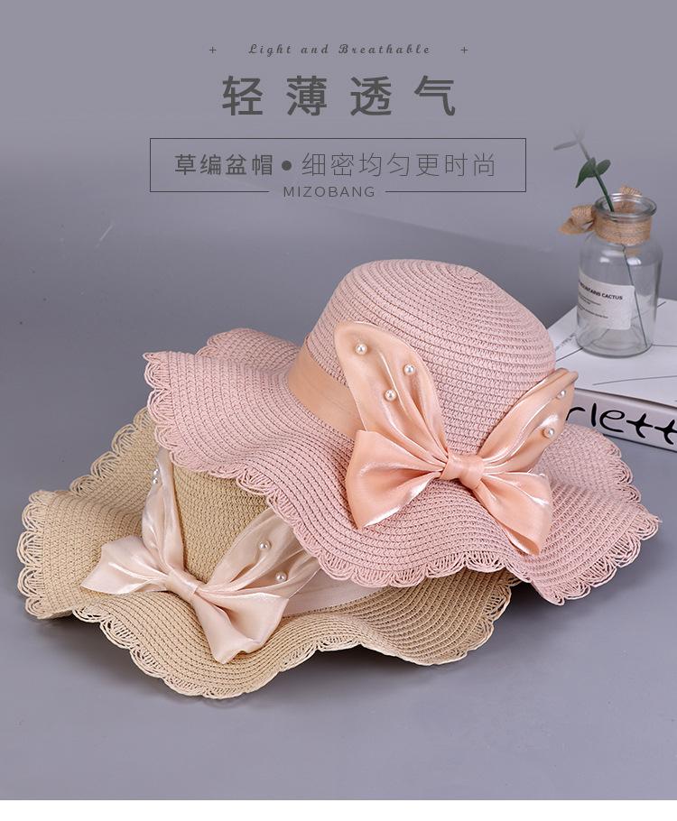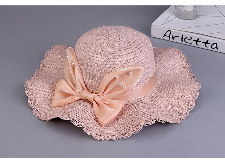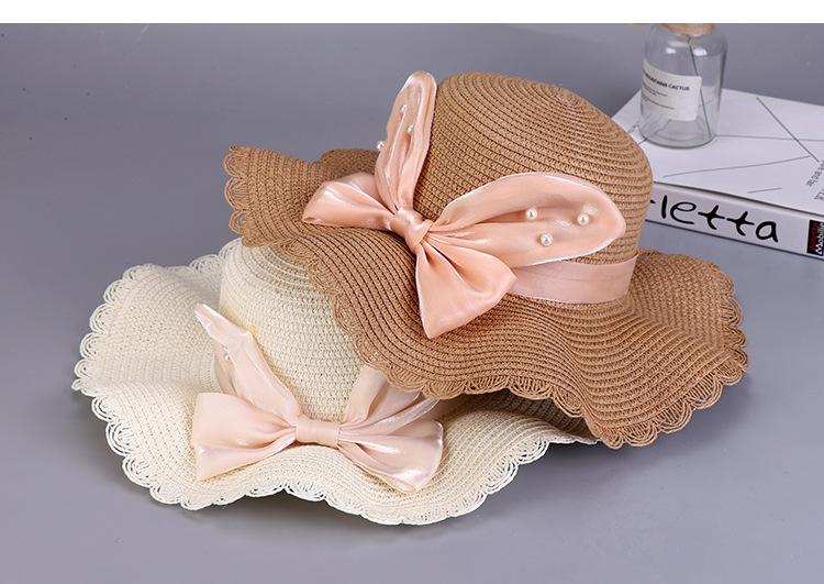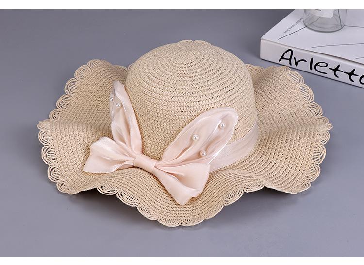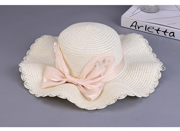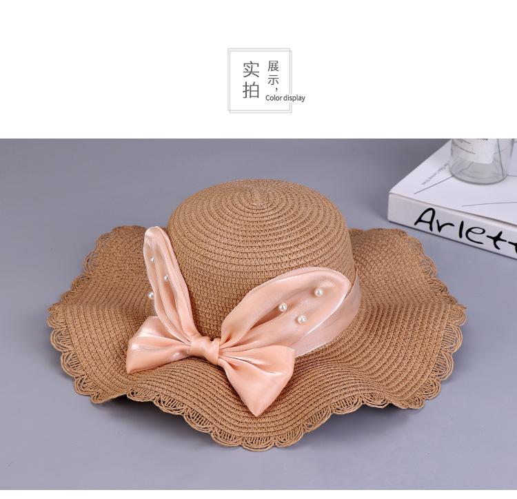Nuevo sombrero de playa de verano estilo coreano con lazo y olas grandes para mujer, para viajes al aire libre, parasol, protector solar, sombrero de paja transpirable.