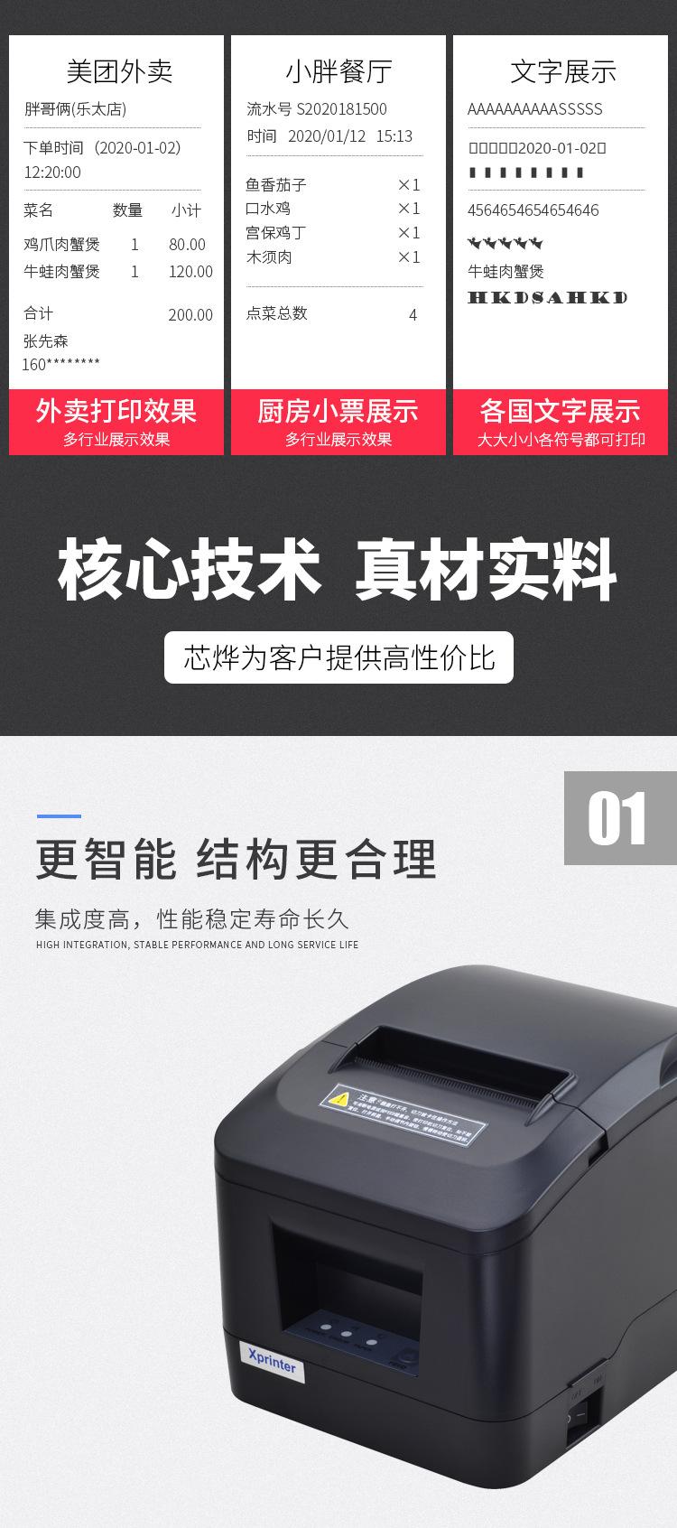 Impresora Térmica Xinye Xp-A160M Recibo 80mm Catering Para Llevar Cajero Puerto de Red Cocina Corte Automático de Papel