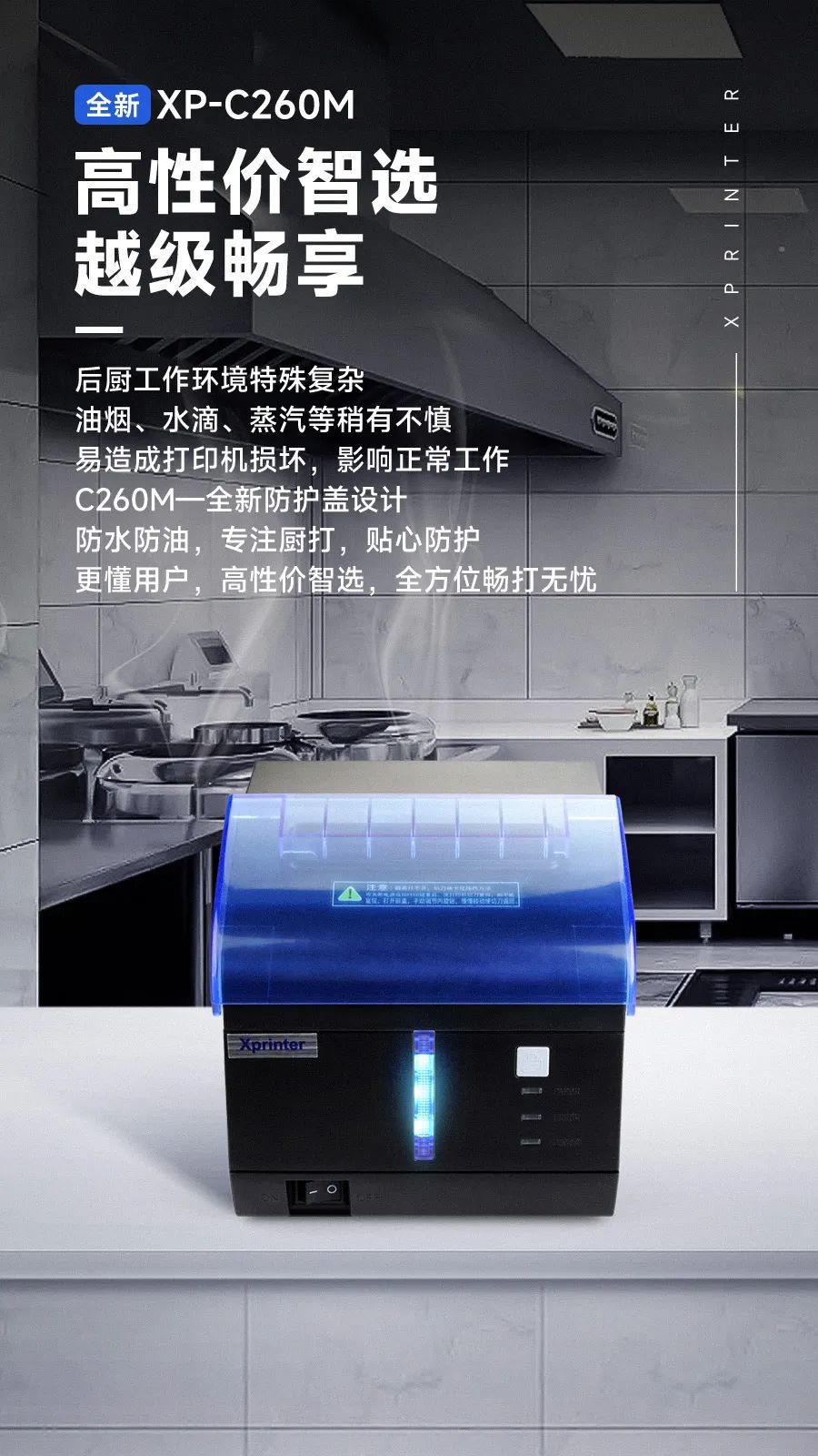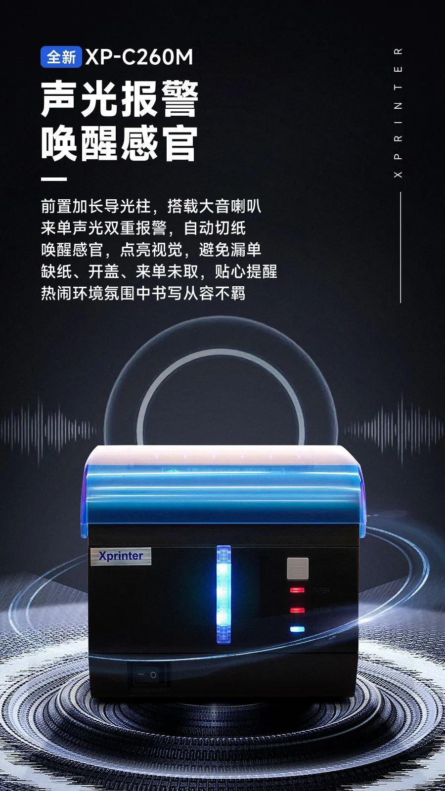 Xinye XP-C260M térmico a prueba de aceite malla 80mm cocina alarma sonora y luminosa corte de papel automático impresora de recibos