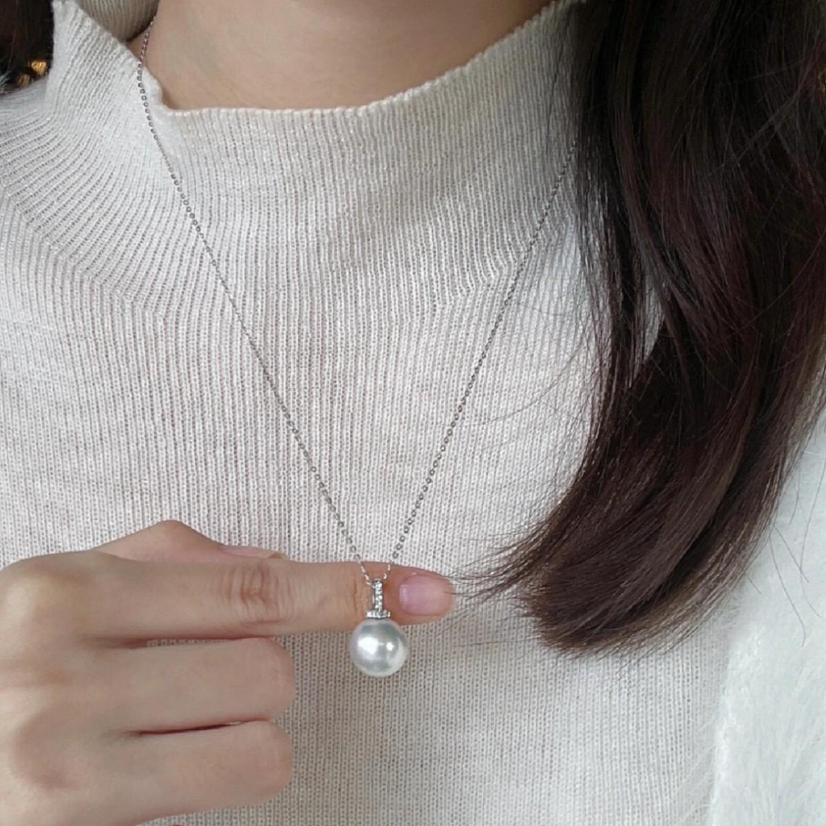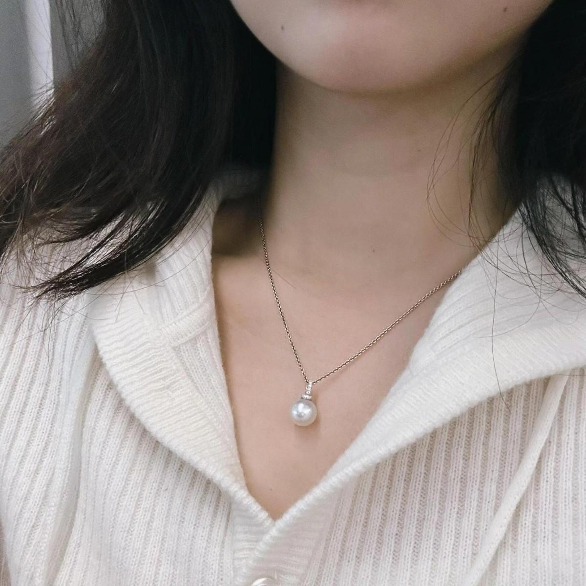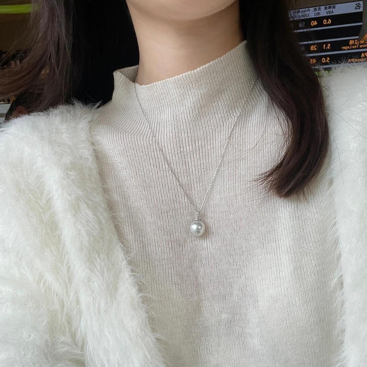Collar de chupete de perla blanca Shijia Ao de plata esterlina S925 para mujer, estilo ligero, cadena de clavícula de lujo con colgante de microdiamantes de alta calidad.