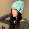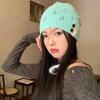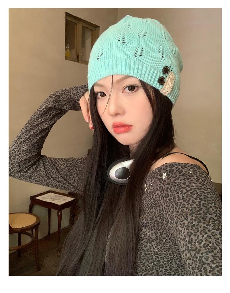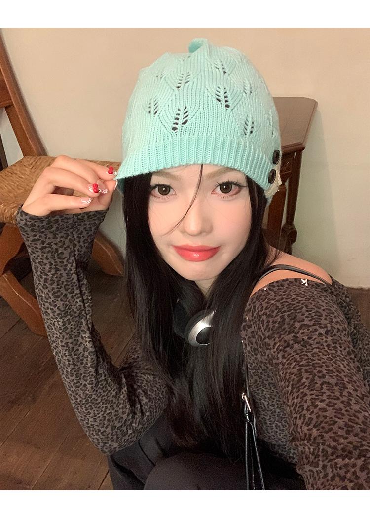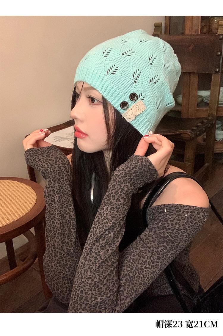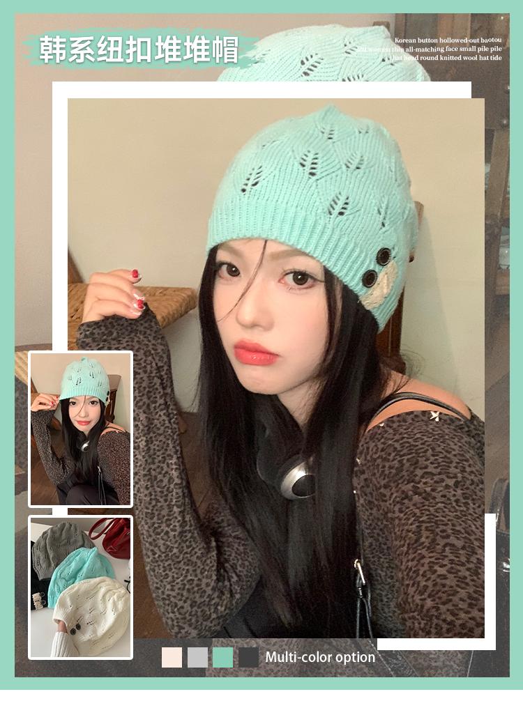 Gorro Baotou de punto con botones huecos al estilo coreano para mujer, otoño e invierno, combina con todo, con cara pequeña, gorro de lana con cabeza grande