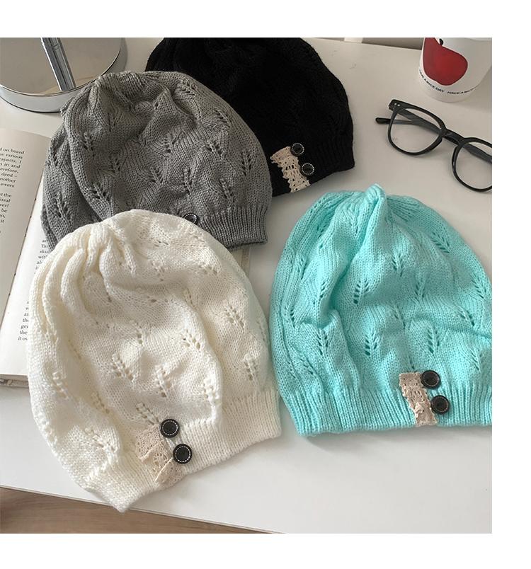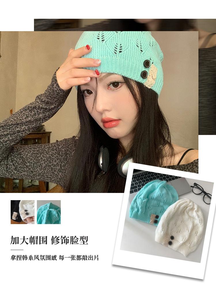 Compra Gorro Baotou de punto con botones huecos al estilo coreano para mujer, otoño e invierno, combina con todo, con cara pequeña, gorro de lana con cabeza grande al por mayor en Joom.pro