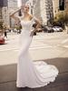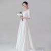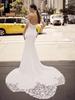 Vestido de novia de cola de pez, elegante y sencillo, estilo francés, de alta calidad, con hombros al descubierto y gasa que adelgaza los hombros.