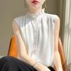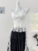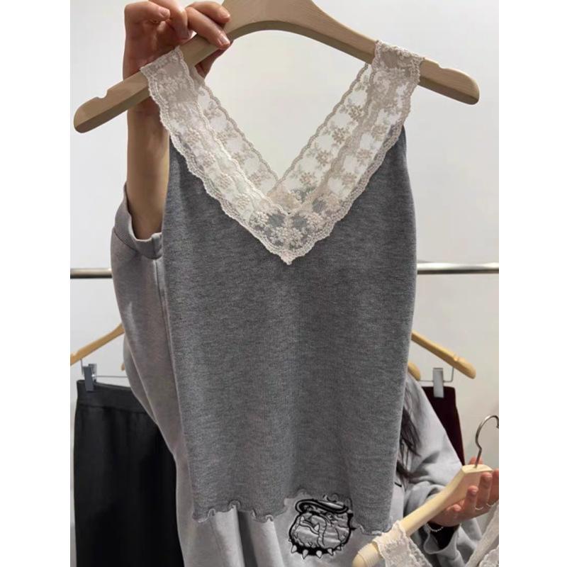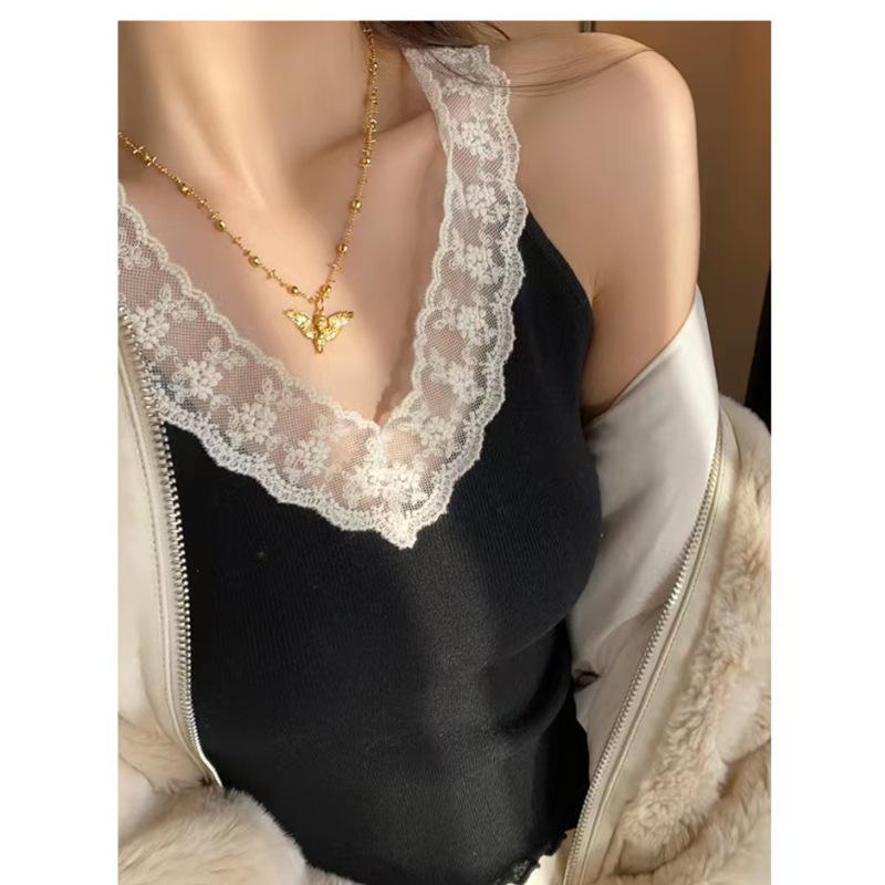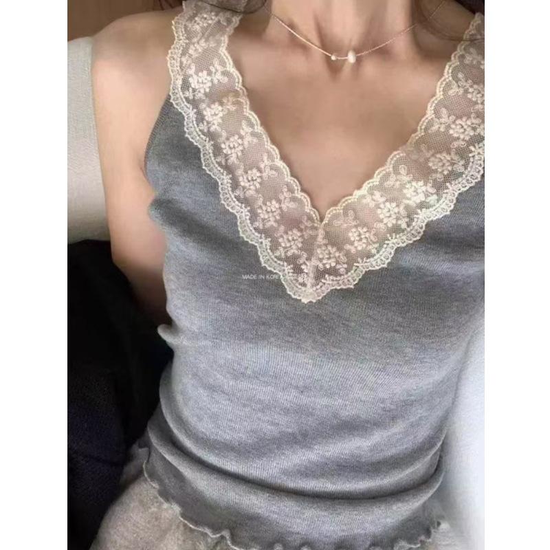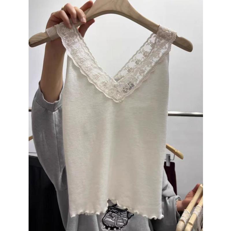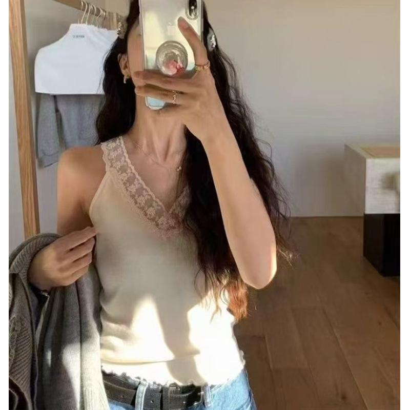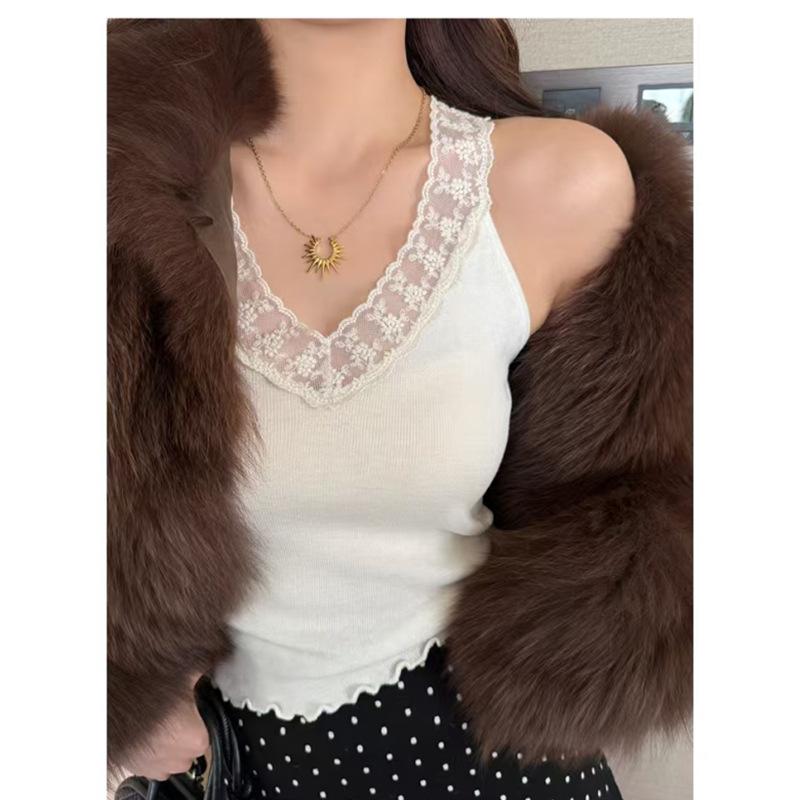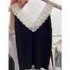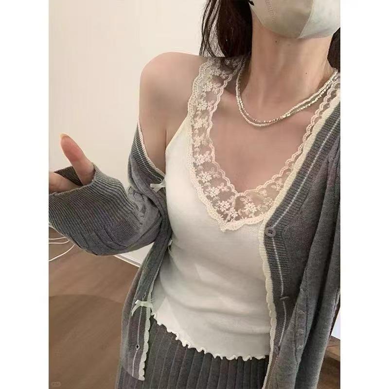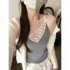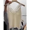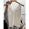 Chaleco de punto sin mangas, ajustado, con encaje y cuello dulce francés, primavera y verano 2025