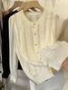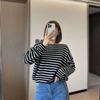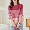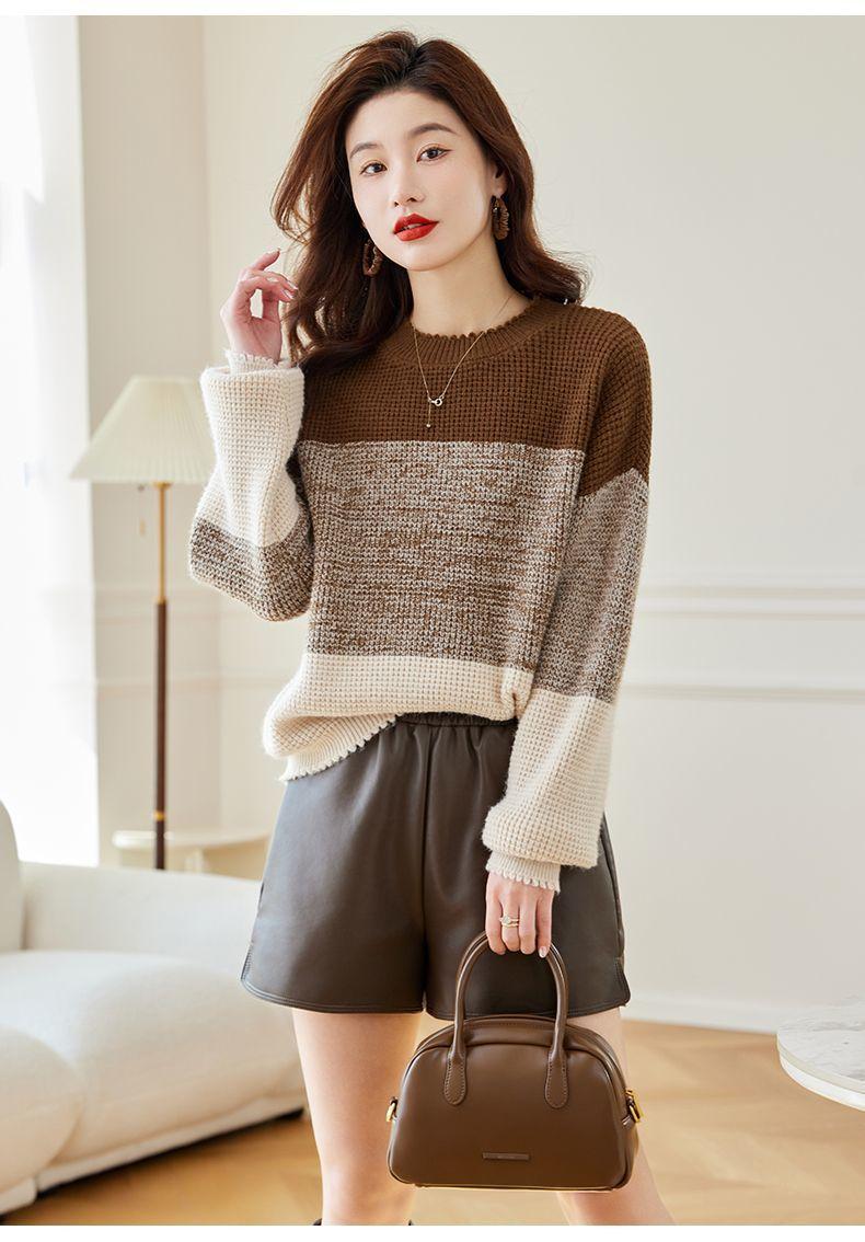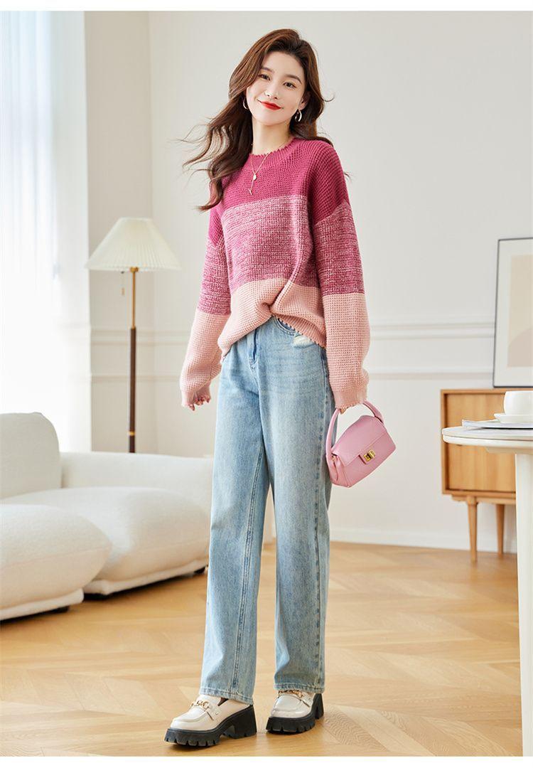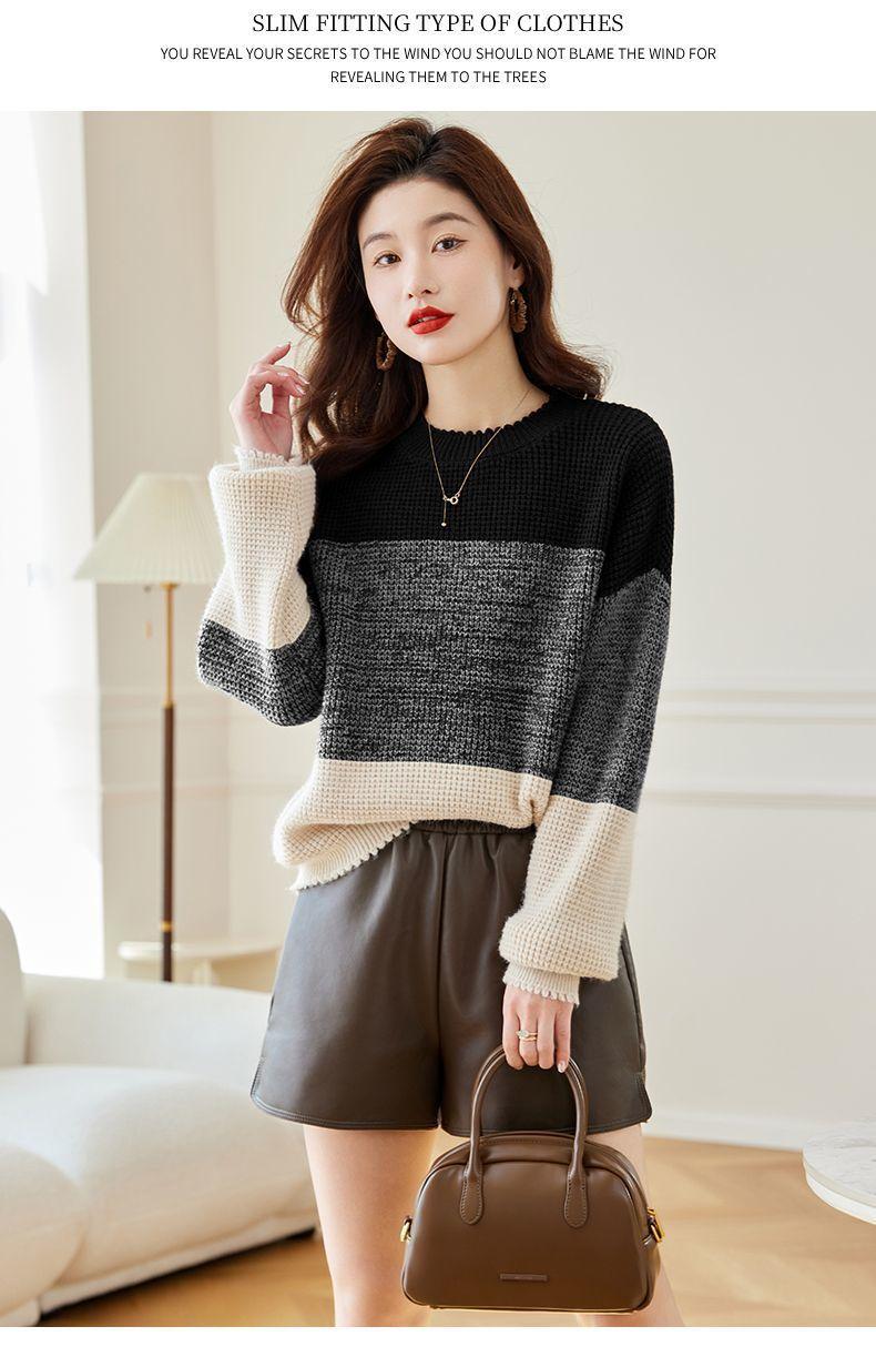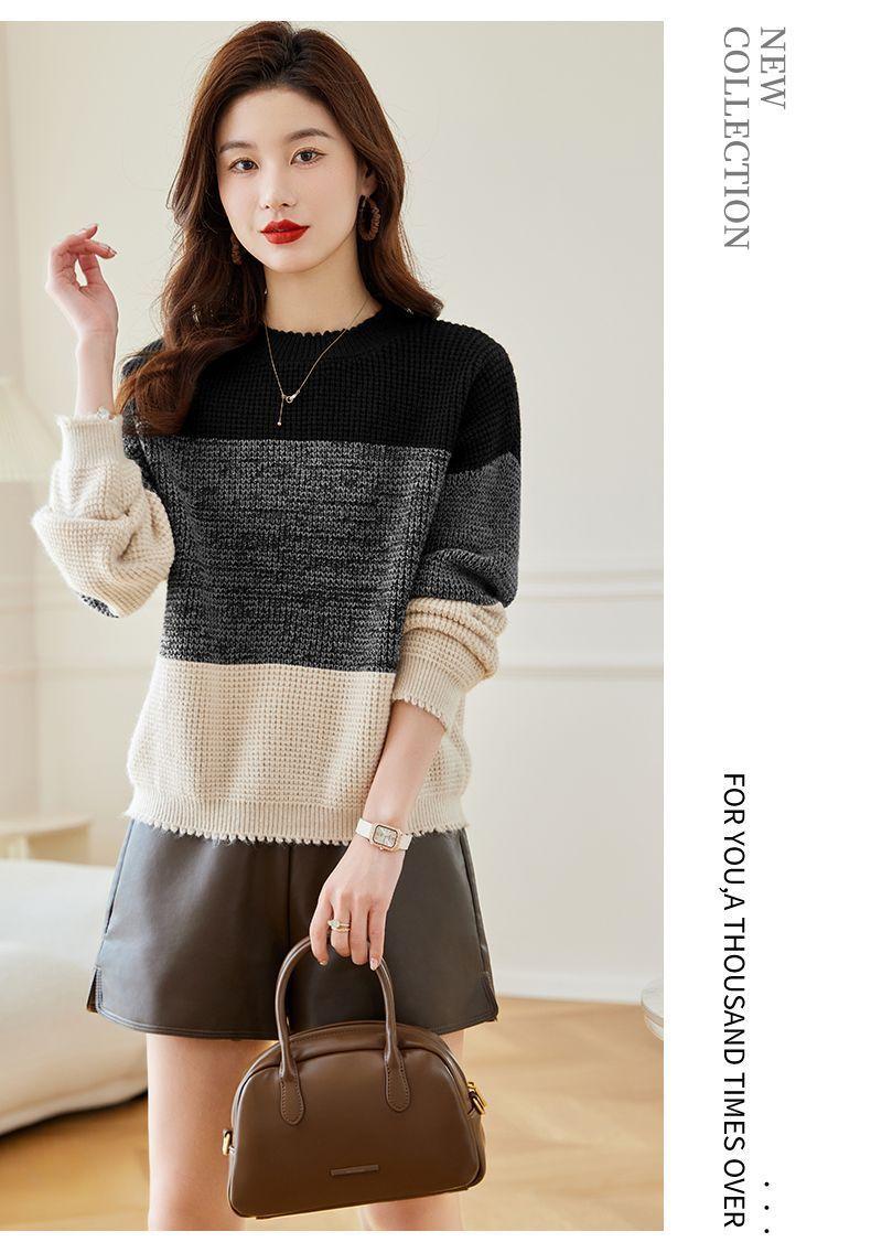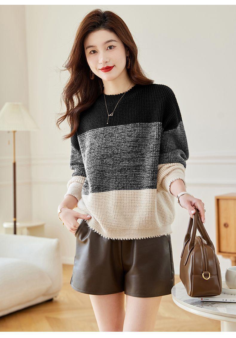 Suéter de Estambre Floral a Rayas de Color Contrastante para Mujer Otoño e Invierno 24 Nuevo Estilo Coreano Estilo Lazy Holgado Talla Grande Suéter con Camisa Interior