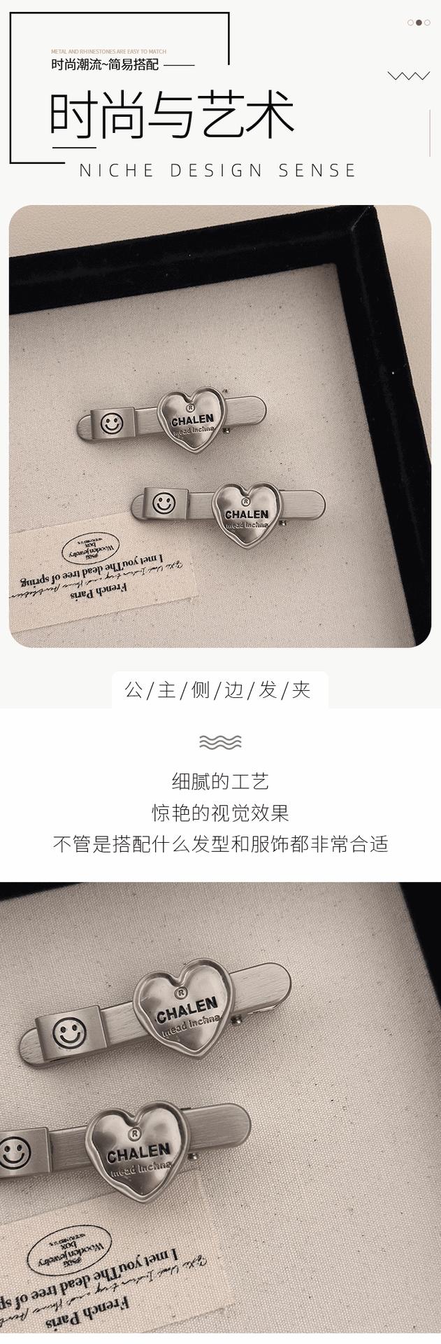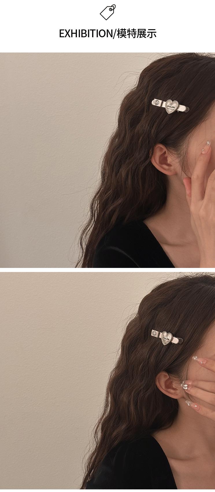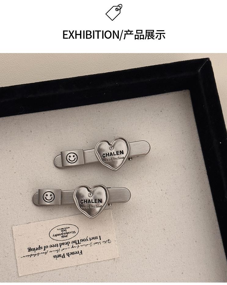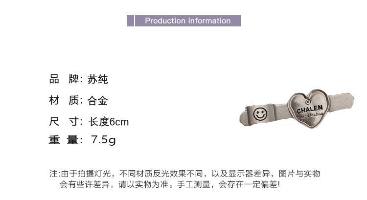 Horquilla de metal cepillado con forma de cara sonriente y letra, clip lateral, elegante, con palabra de gran sentido, flequillo, clip de pico de pato, tocado