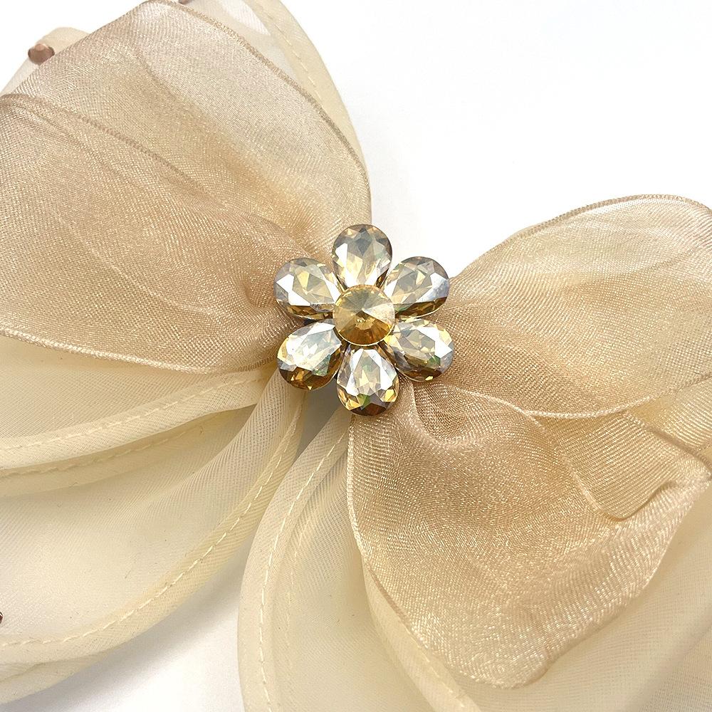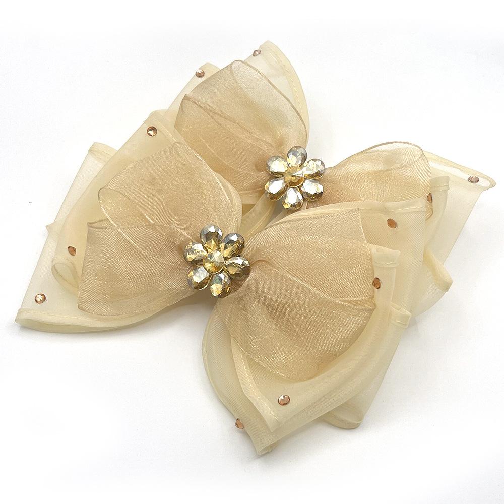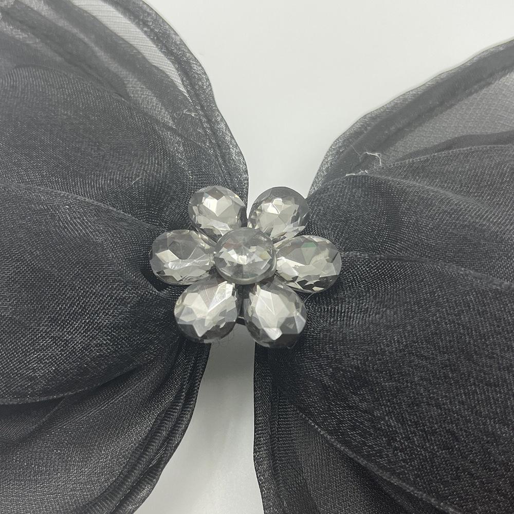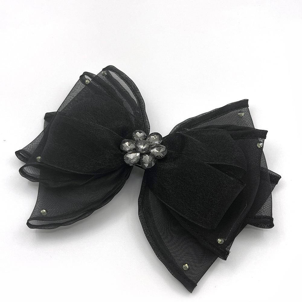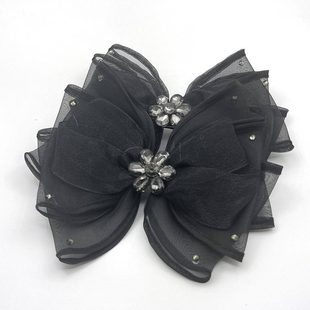 Horquilla de organza con lazo de diamantes de imitación, de malla, con forma de hada, dulce, con lazo medio, para el pelo, con forma de bola, con clip superior, con temperamento de flor