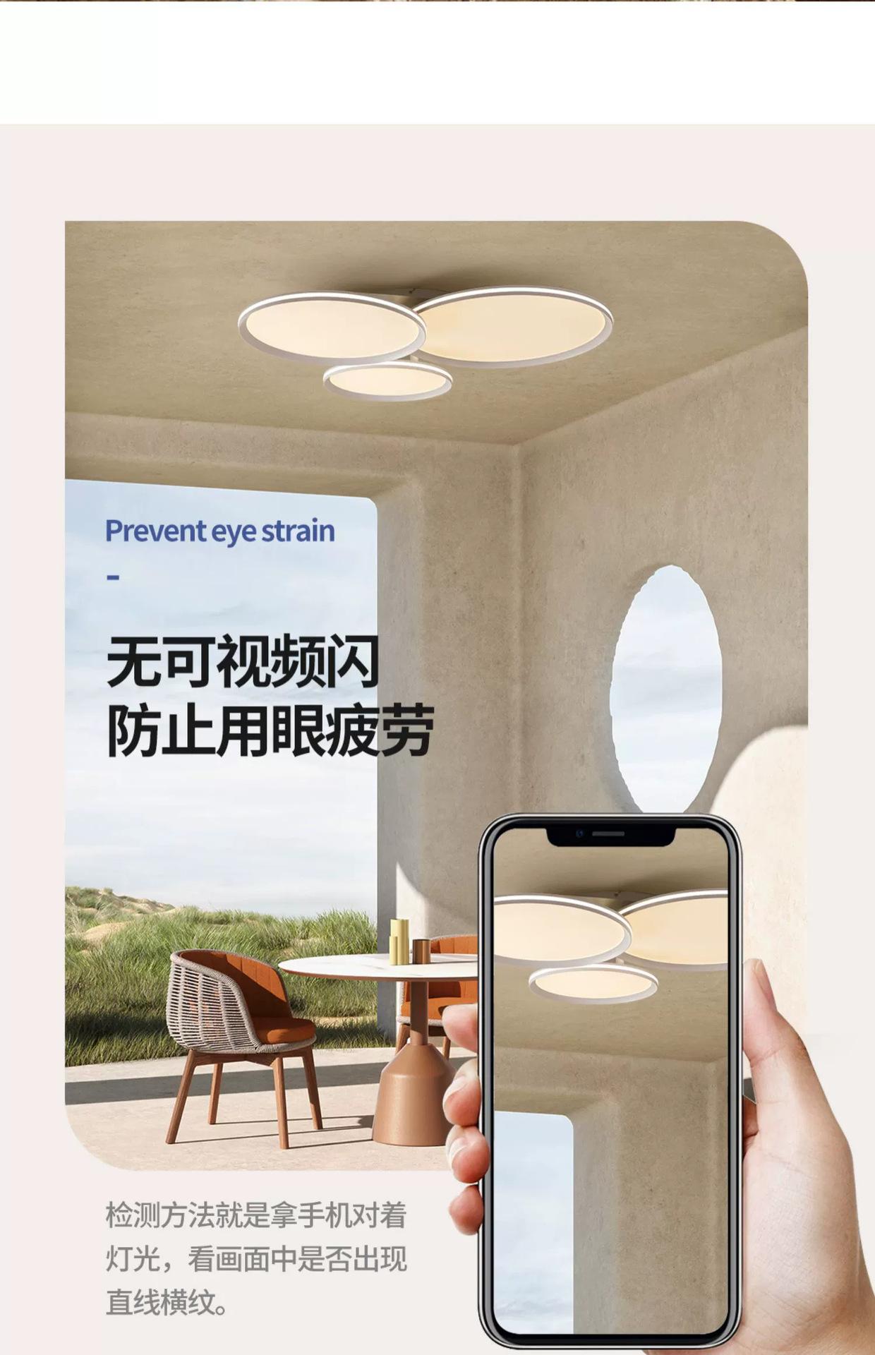 Lámpara de Techo Minimalista para Protección Ocular Espectro Completo Sala de Estar Estilo Crema Popular Lámpara de Techo Creativa para Dormitorio Estudio Lámparas Normcore