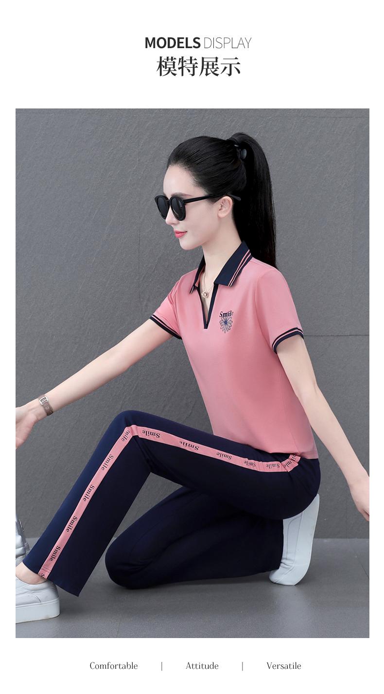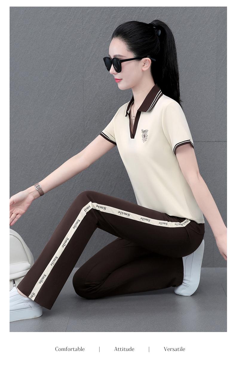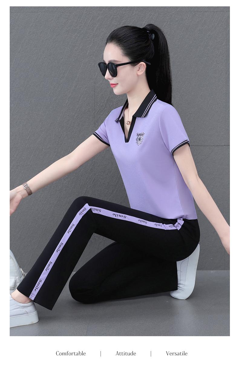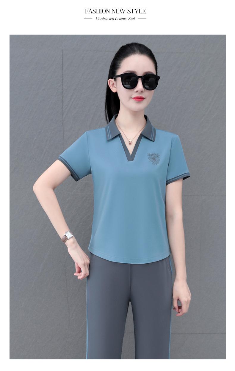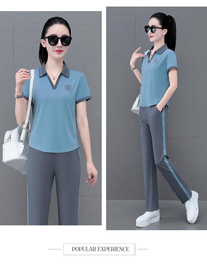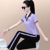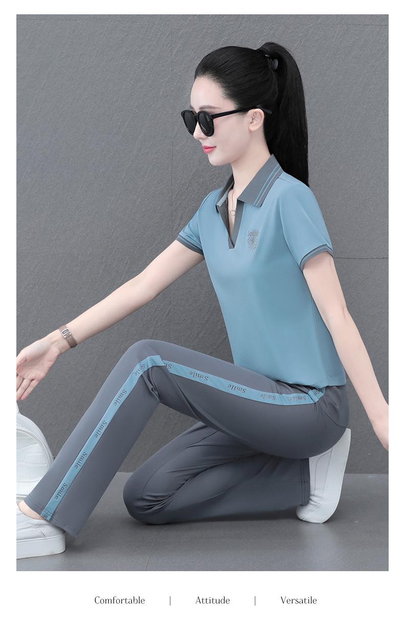 Traje deportivo para mujer Verano 2024 Nuevo Seda de hielo Fino Lassel Manga corta Pantalones Suelto para Correr al aire libre Conjunto de dos piezas