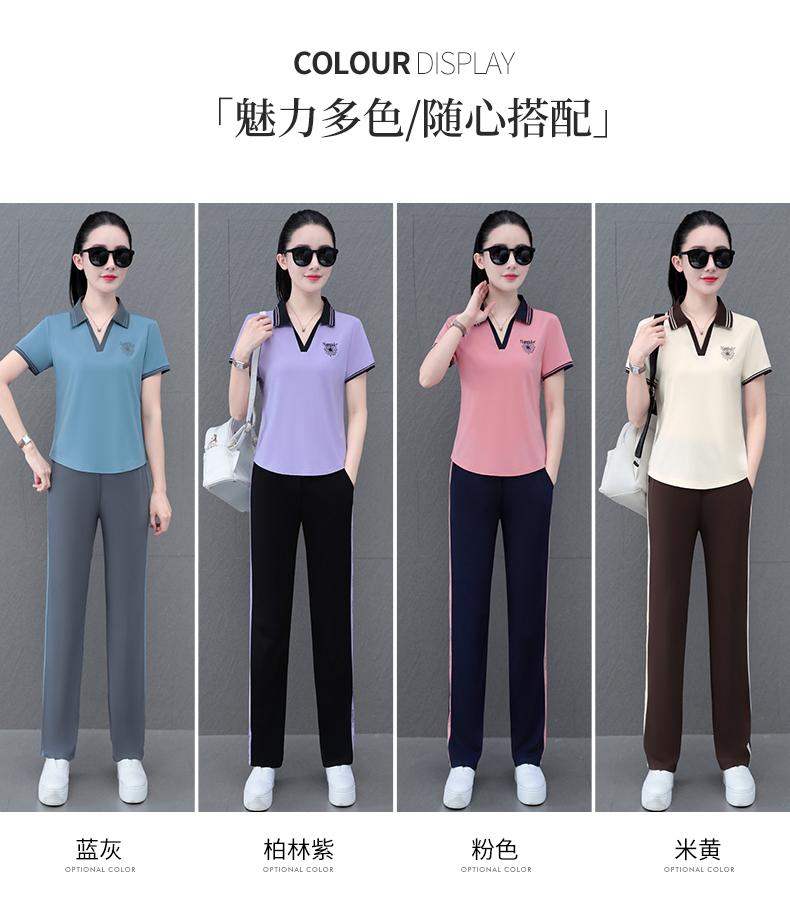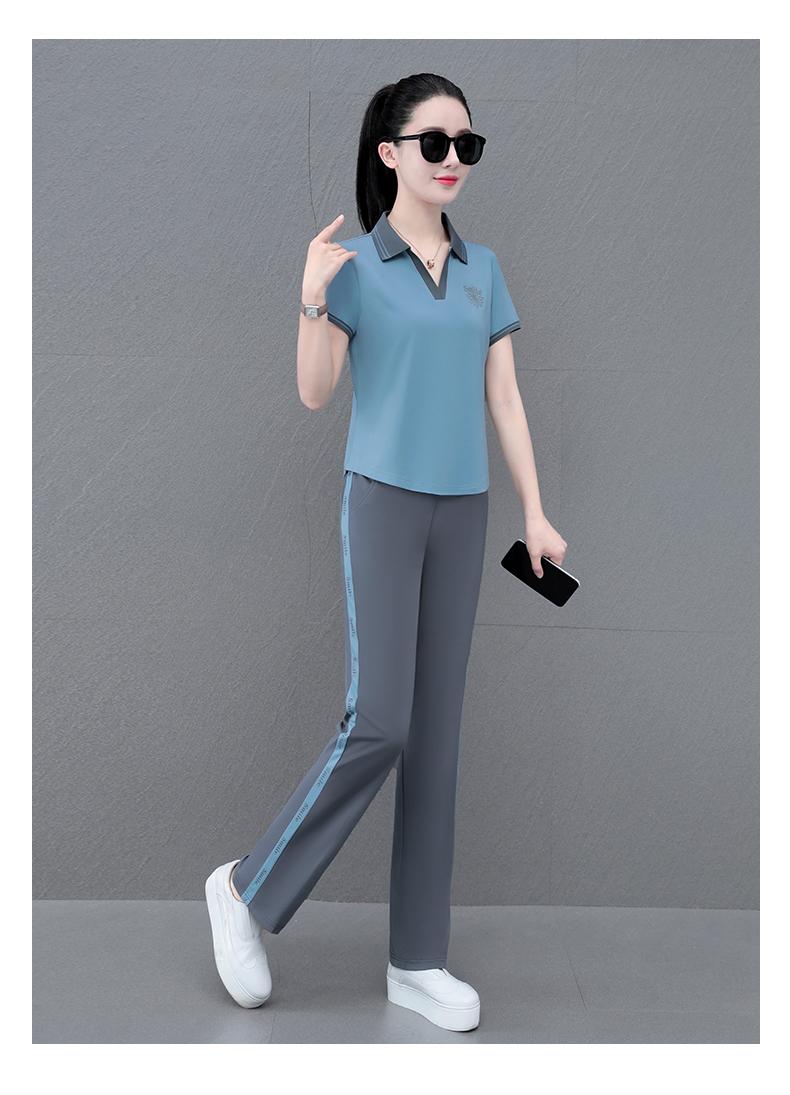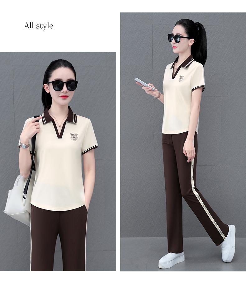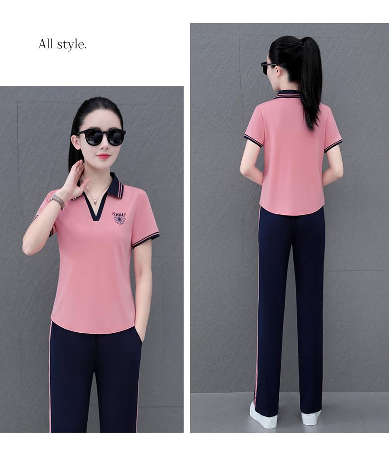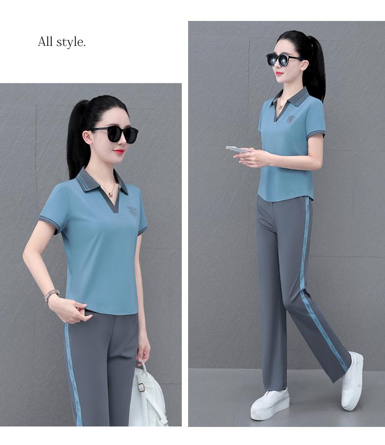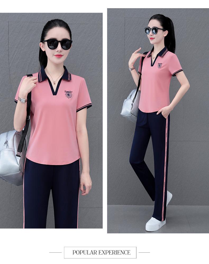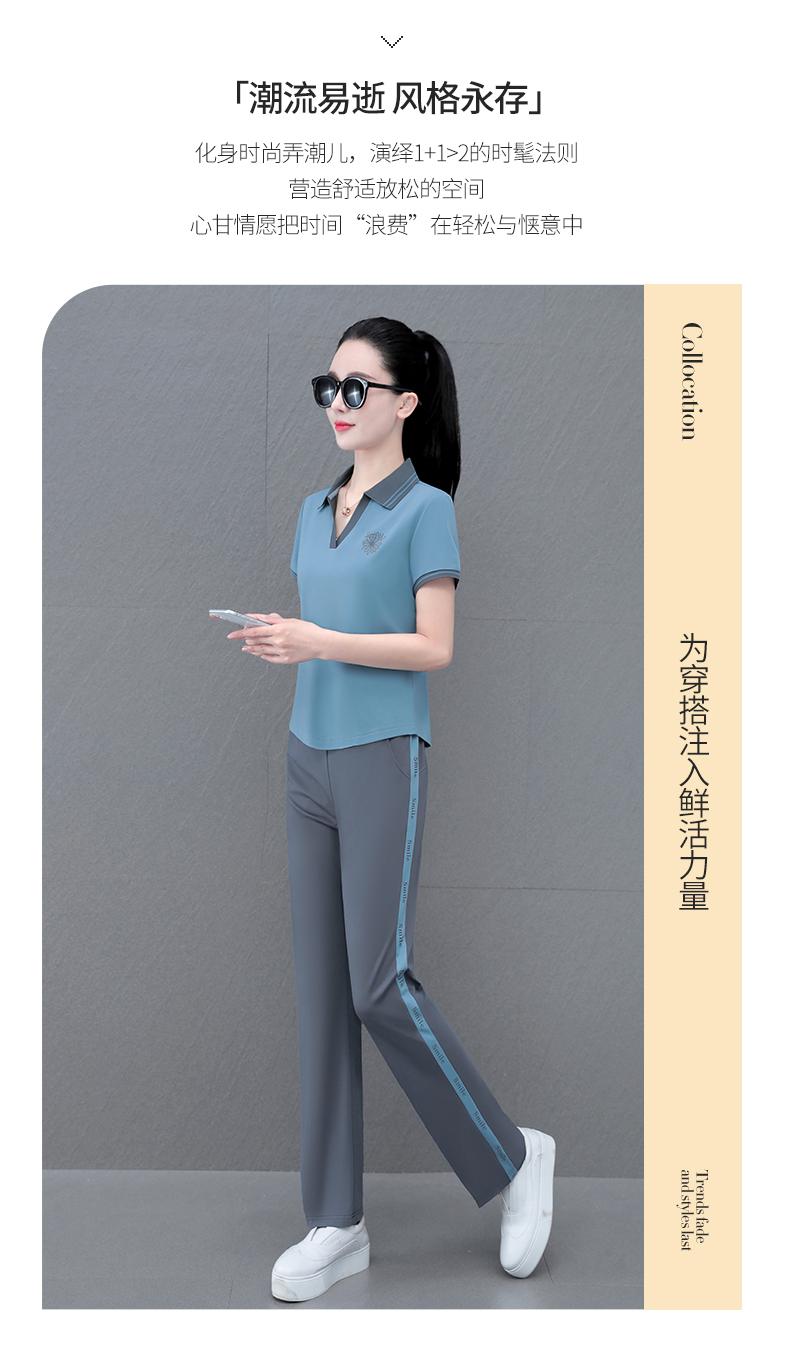 Traje deportivo para mujer Verano 2024 Nuevo Seda de hielo Fino Lassel Manga corta Pantalones Suelto para Correr al aire libre Conjunto de dos piezas