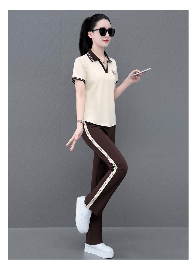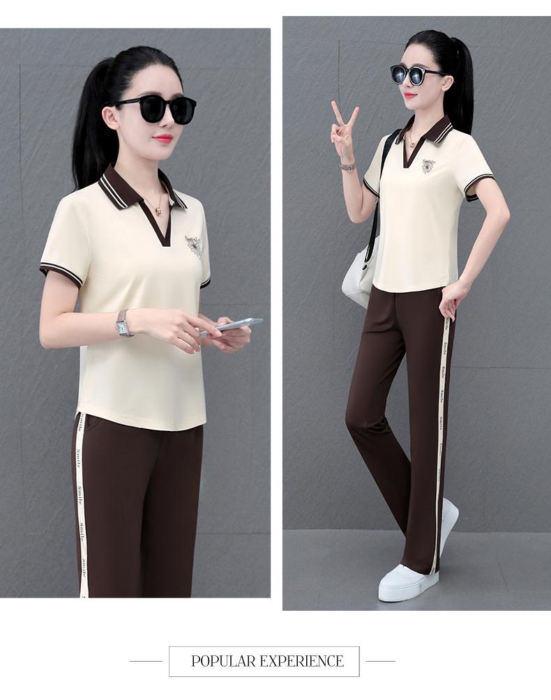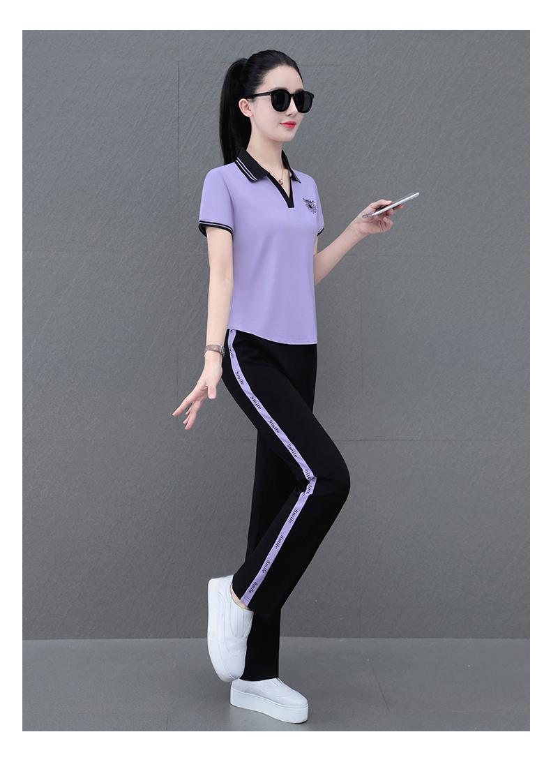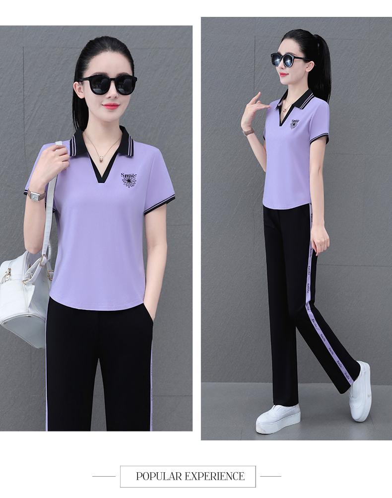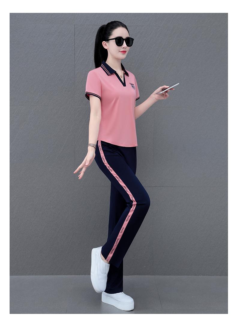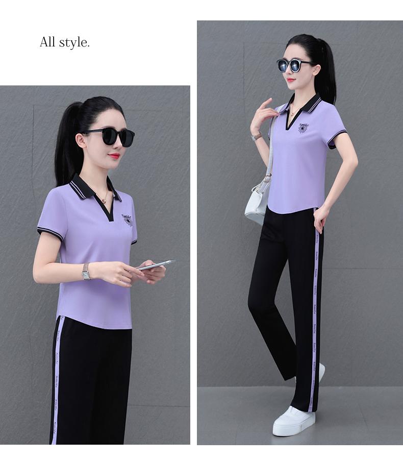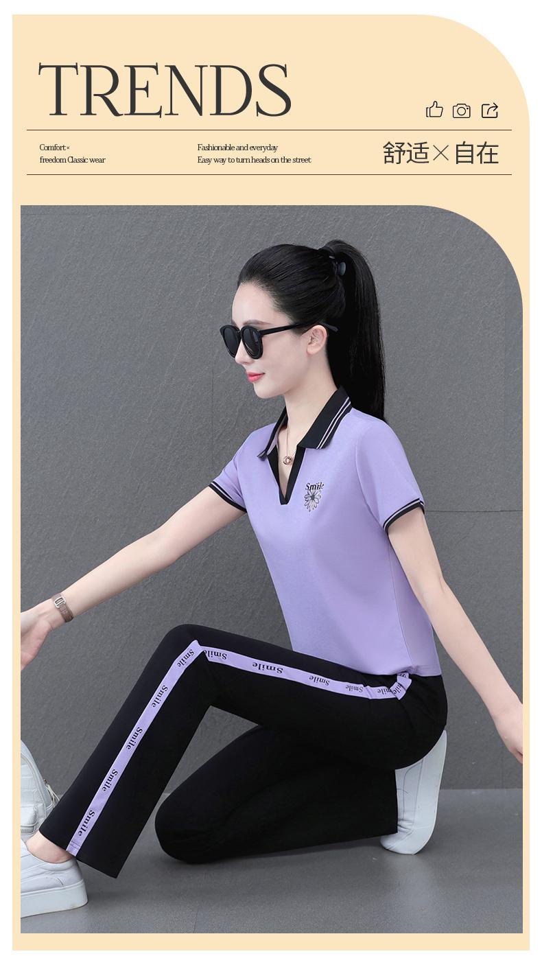 Traje deportivo para mujer Verano 2024 Nuevo Seda de hielo Fino Lassel Manga corta Pantalones Suelto para Correr al aire libre Conjunto de dos piezas
