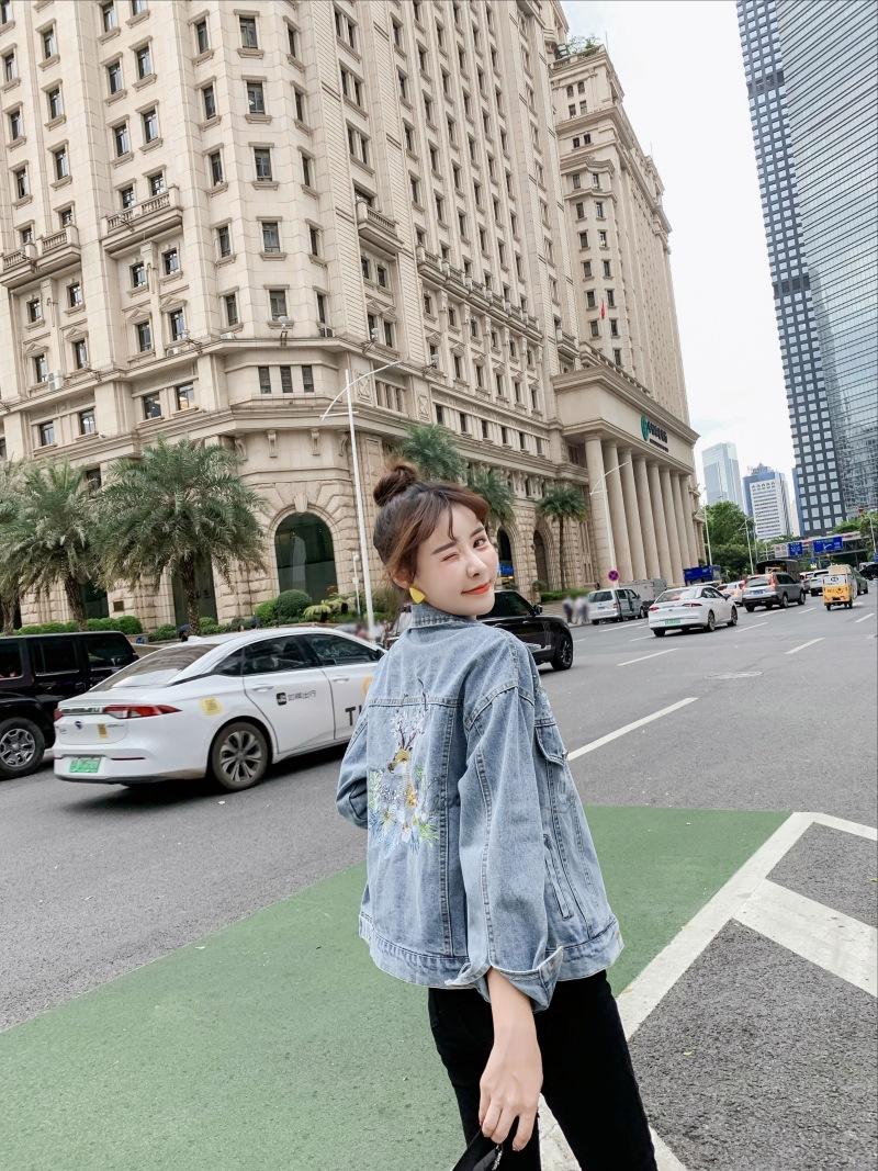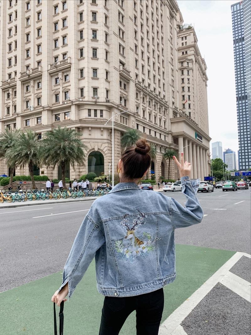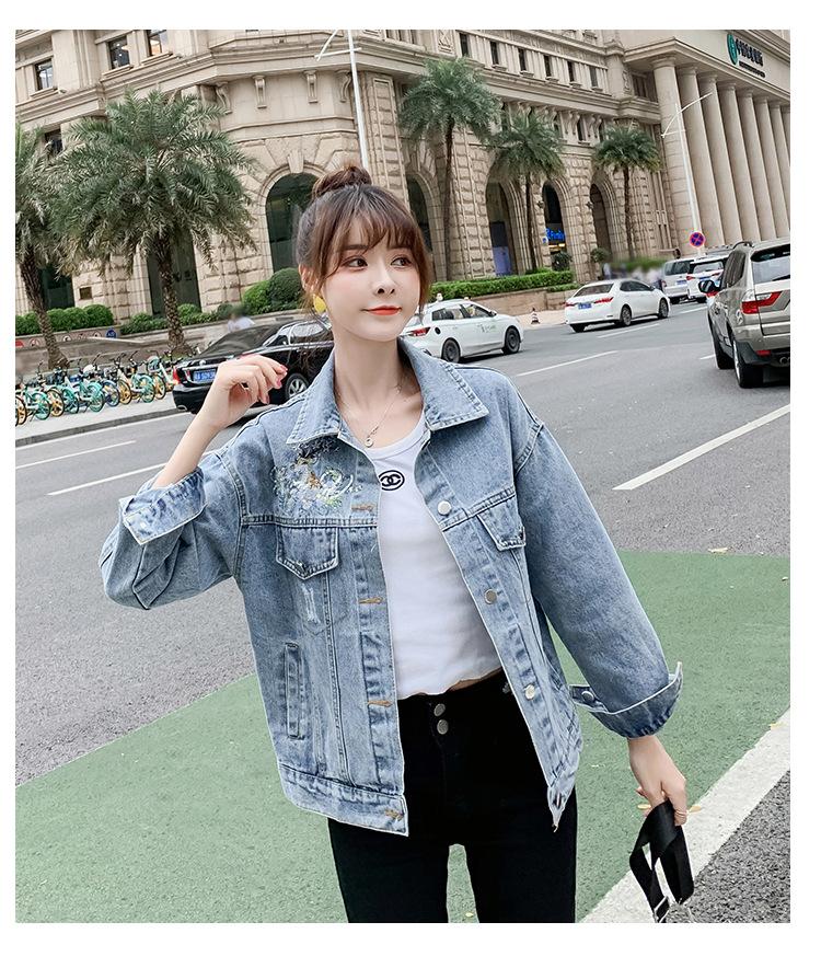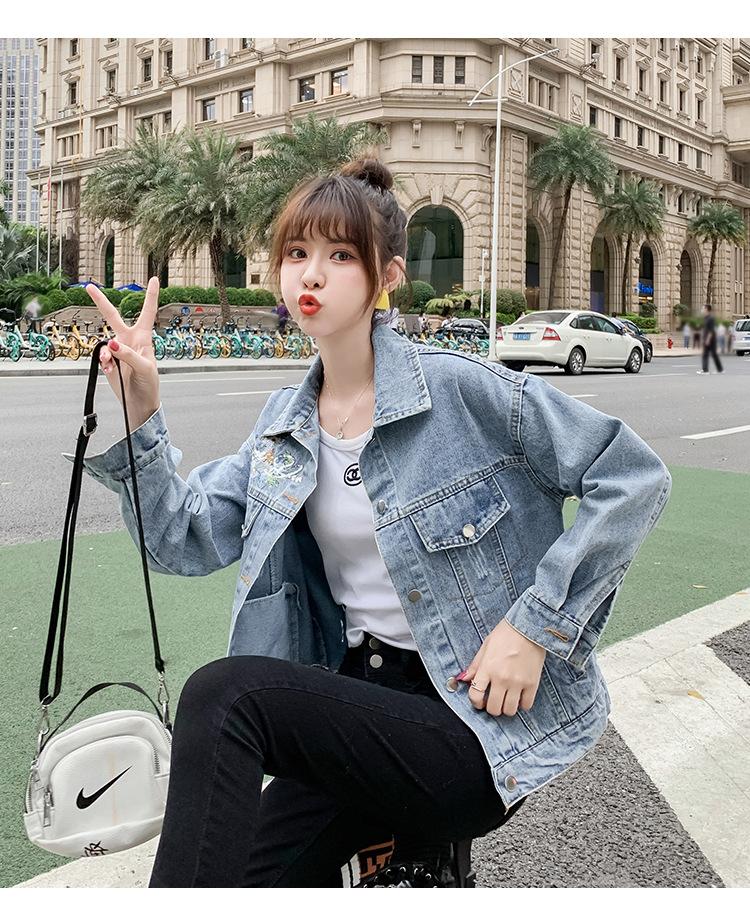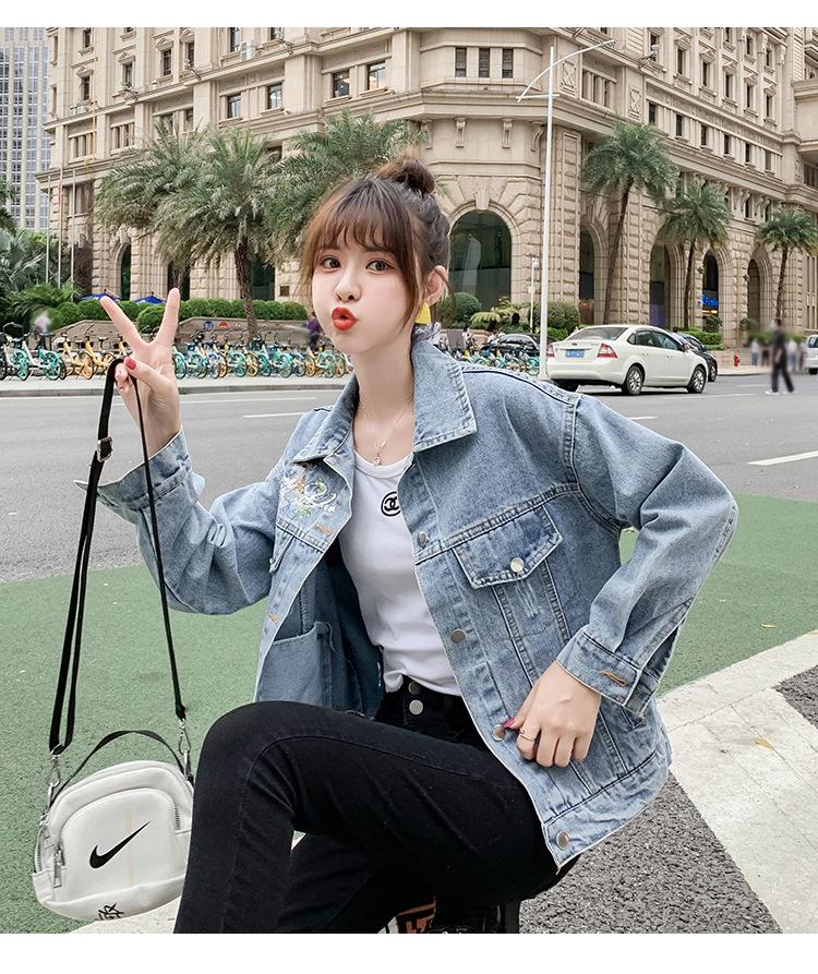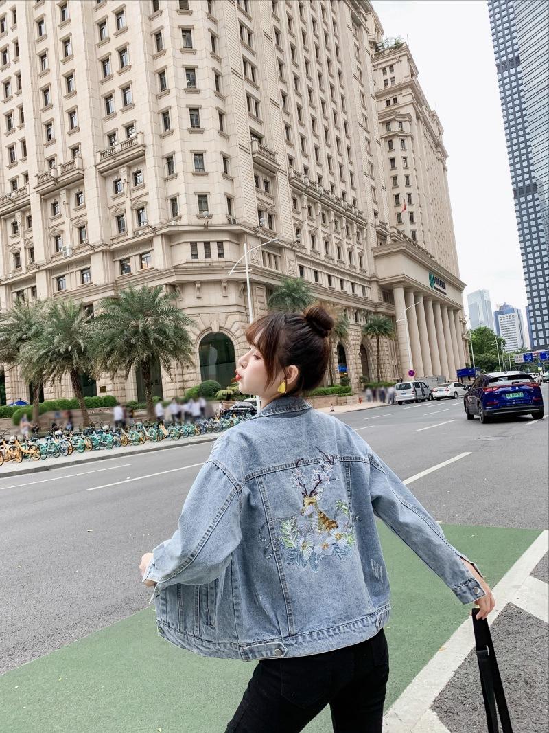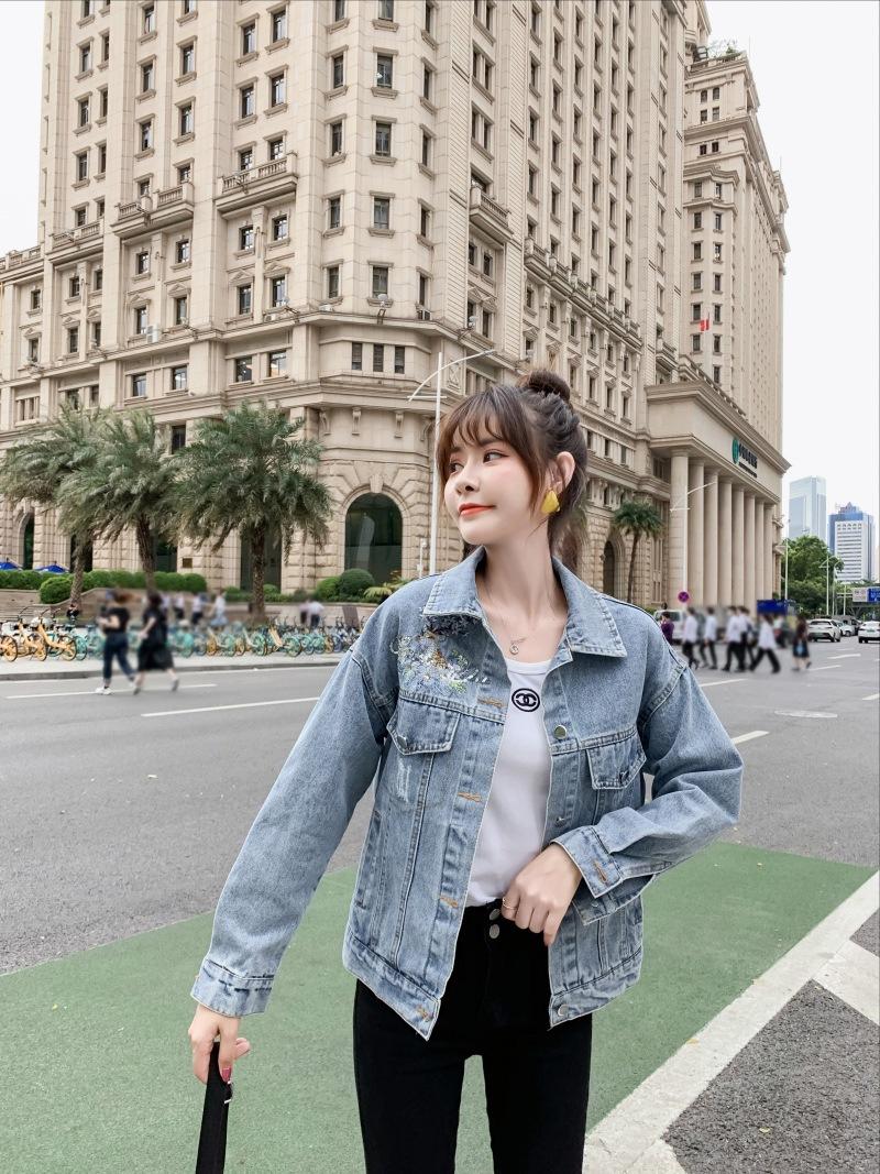 Tops Cortos de Mezclilla Bordados para Mujer Otoño 2025 Nuevo Estilo Hong Kong Bordados Casuales Holgados Tops Estilo Trendy