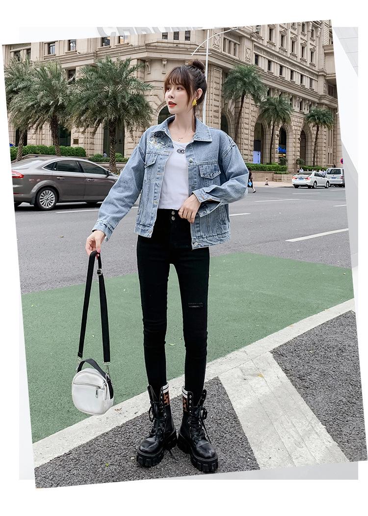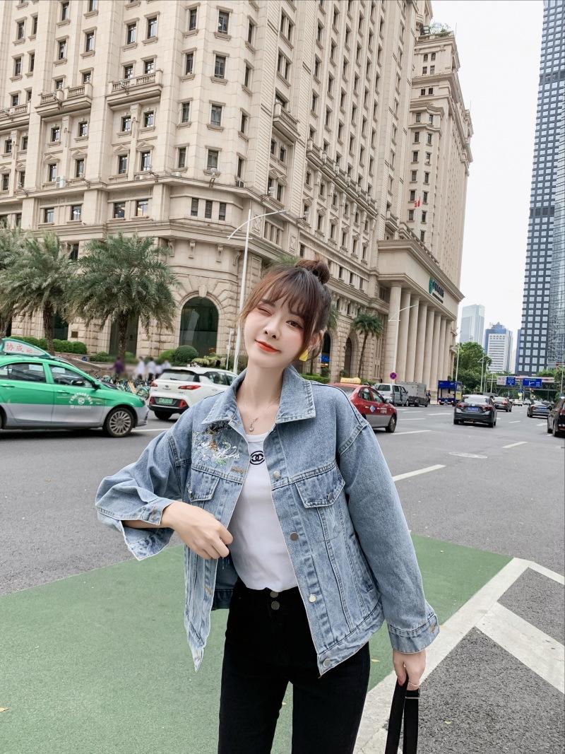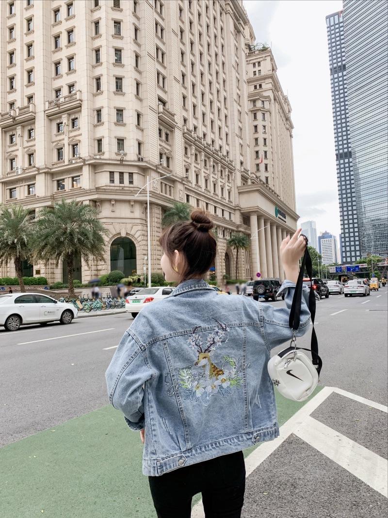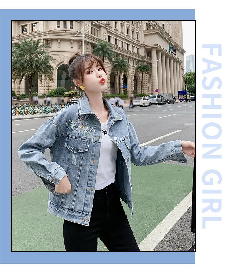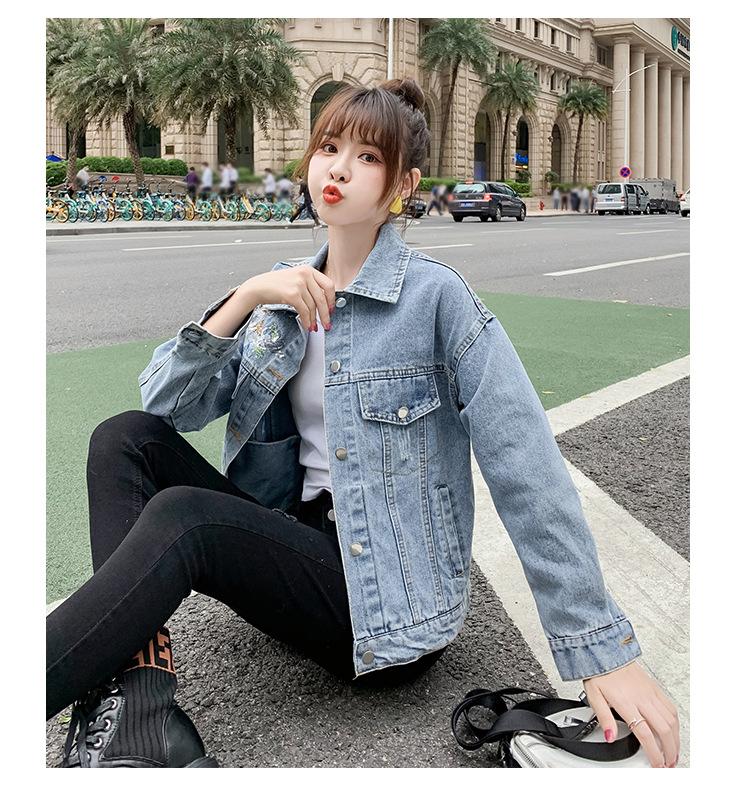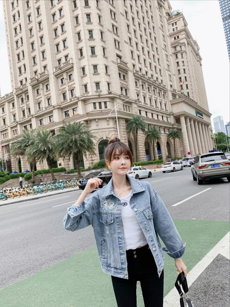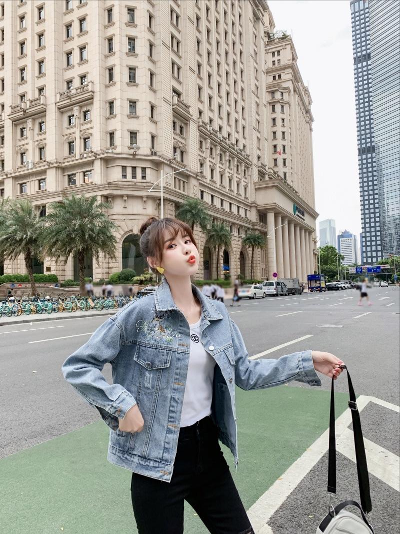 Tops Cortos de Mezclilla Bordados para Mujer Otoño 2025 Nuevo Estilo Hong Kong Bordados Casuales Holgados Tops Estilo Trendy