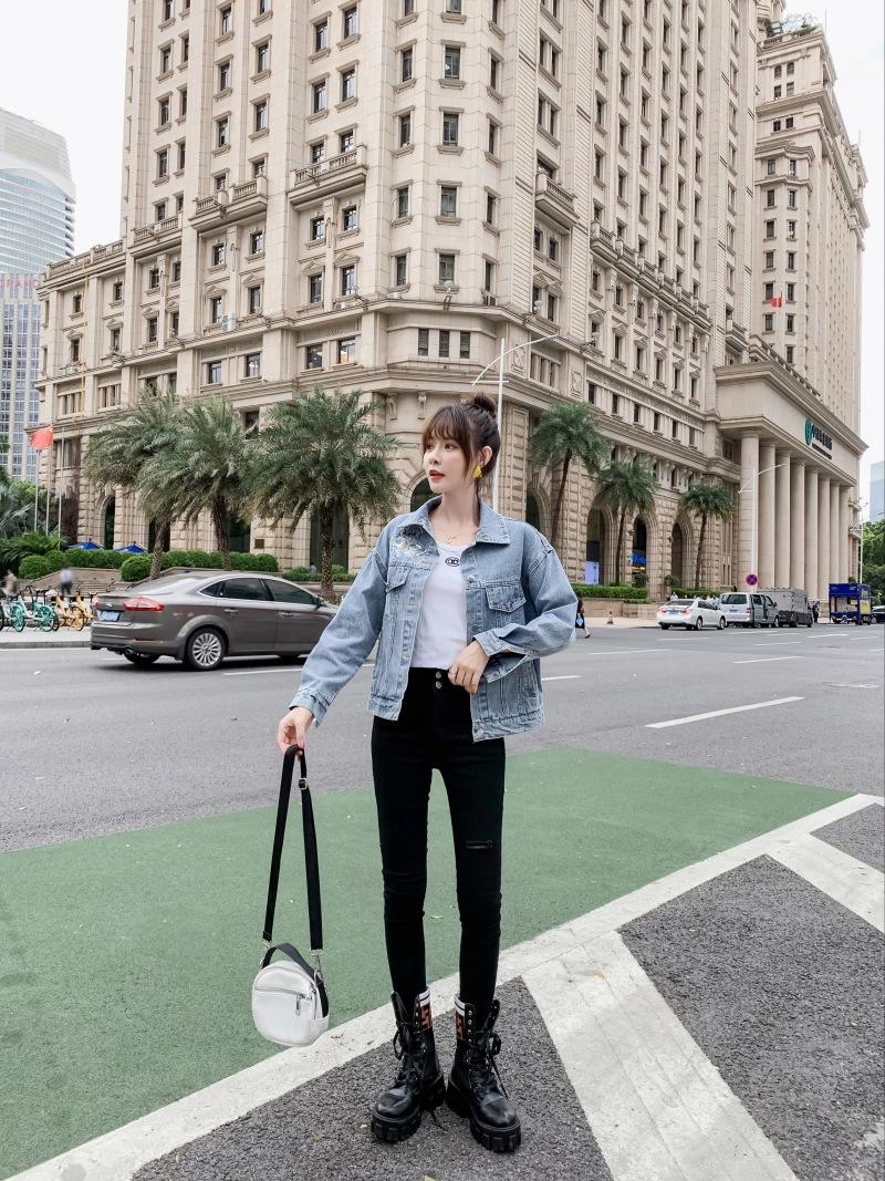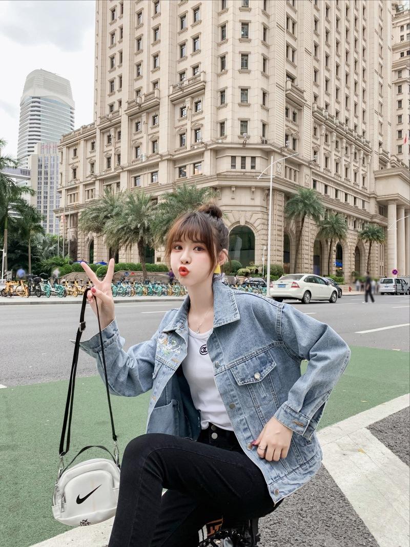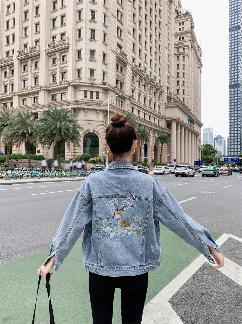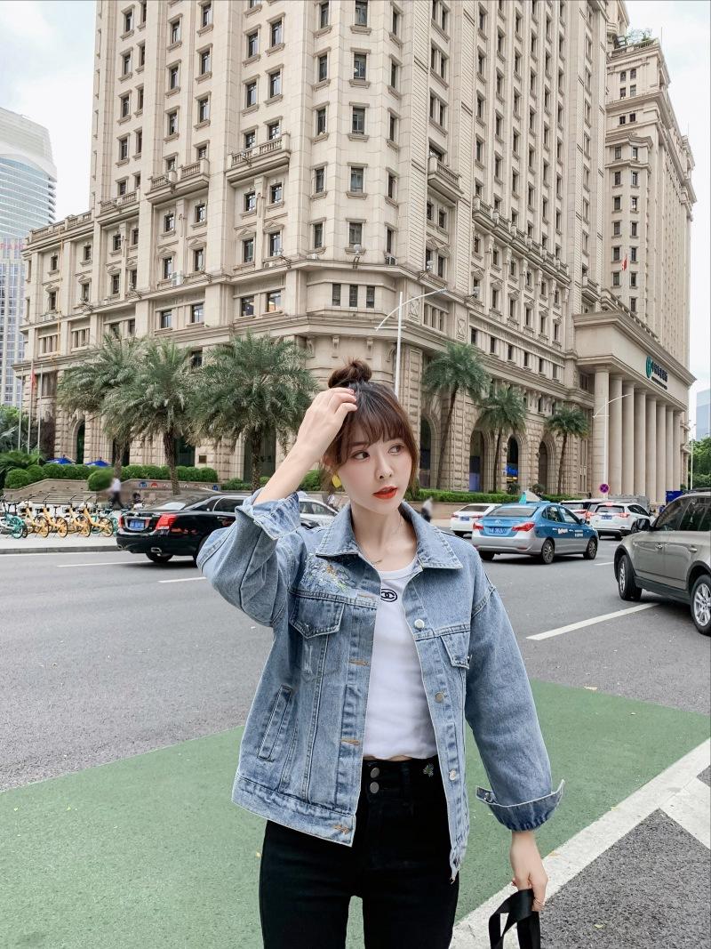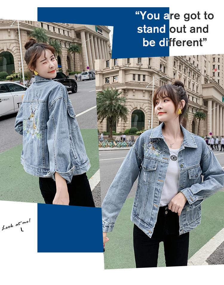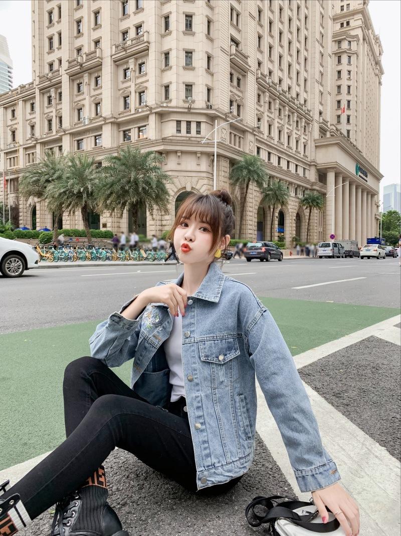Tops Cortos de Mezclilla Bordados para Mujer Otoño 2025 Nuevo Estilo Hong Kong Bordados Casuales Holgados Tops Estilo Trendy