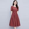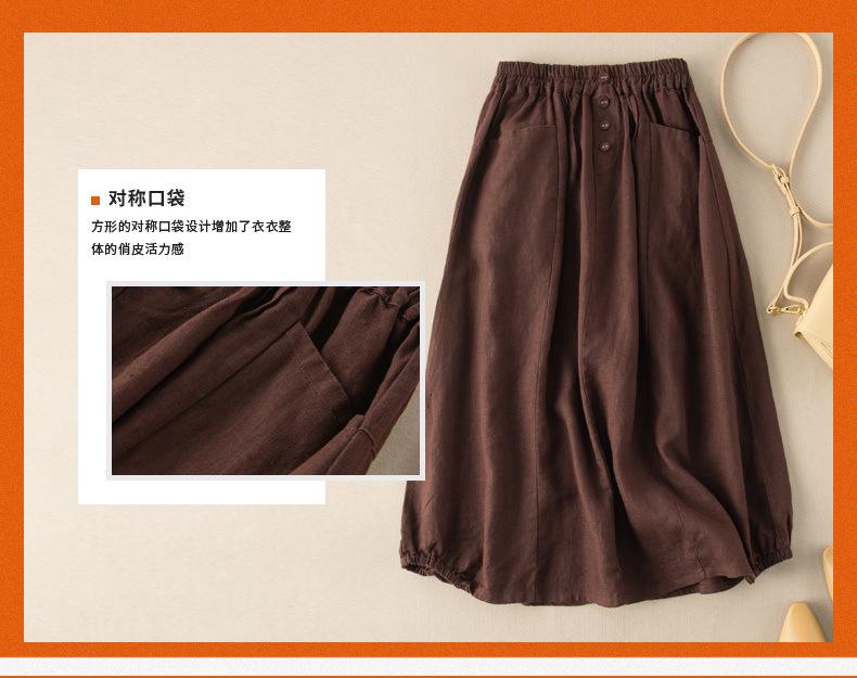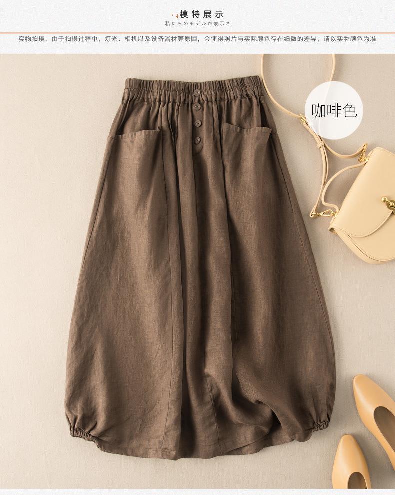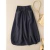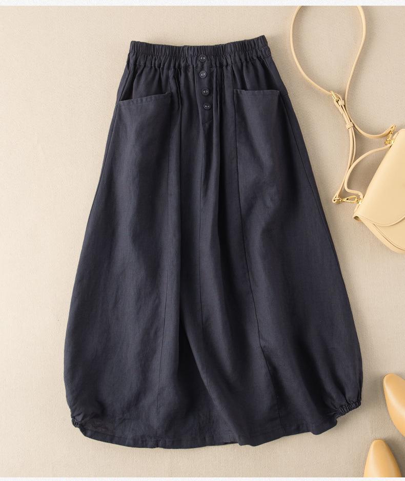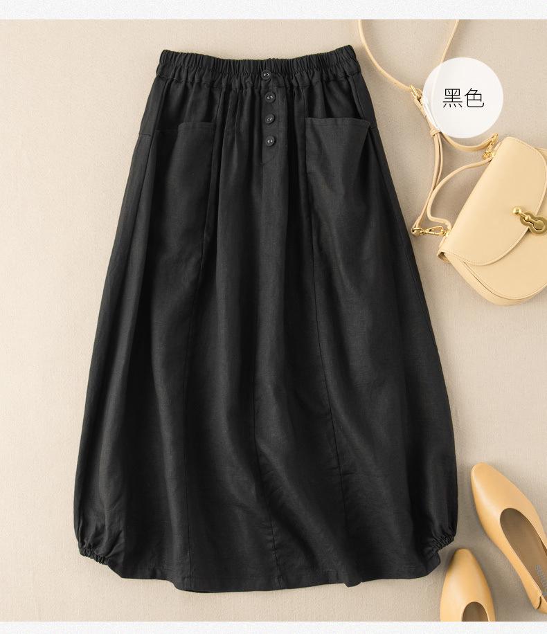 Falda de verano de talla grande para mujer, estilo nuevo, de imitación de lino, estilo retro, de cintura alta, estilo A, adelgazante, artística y elegante.