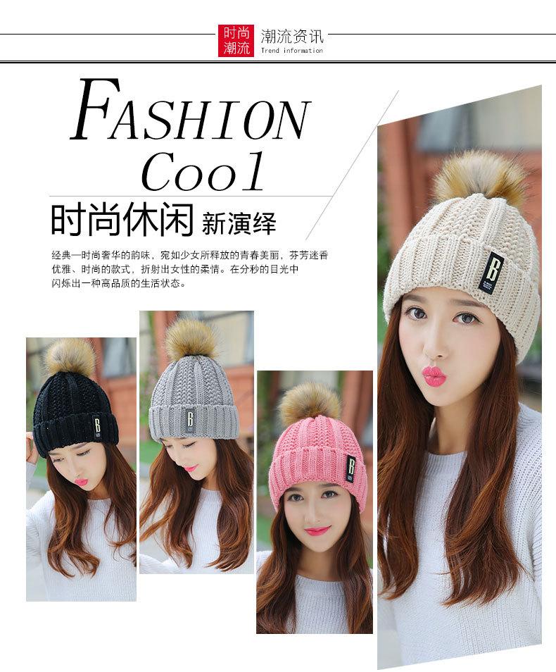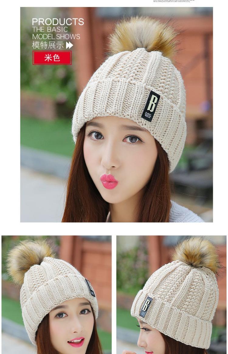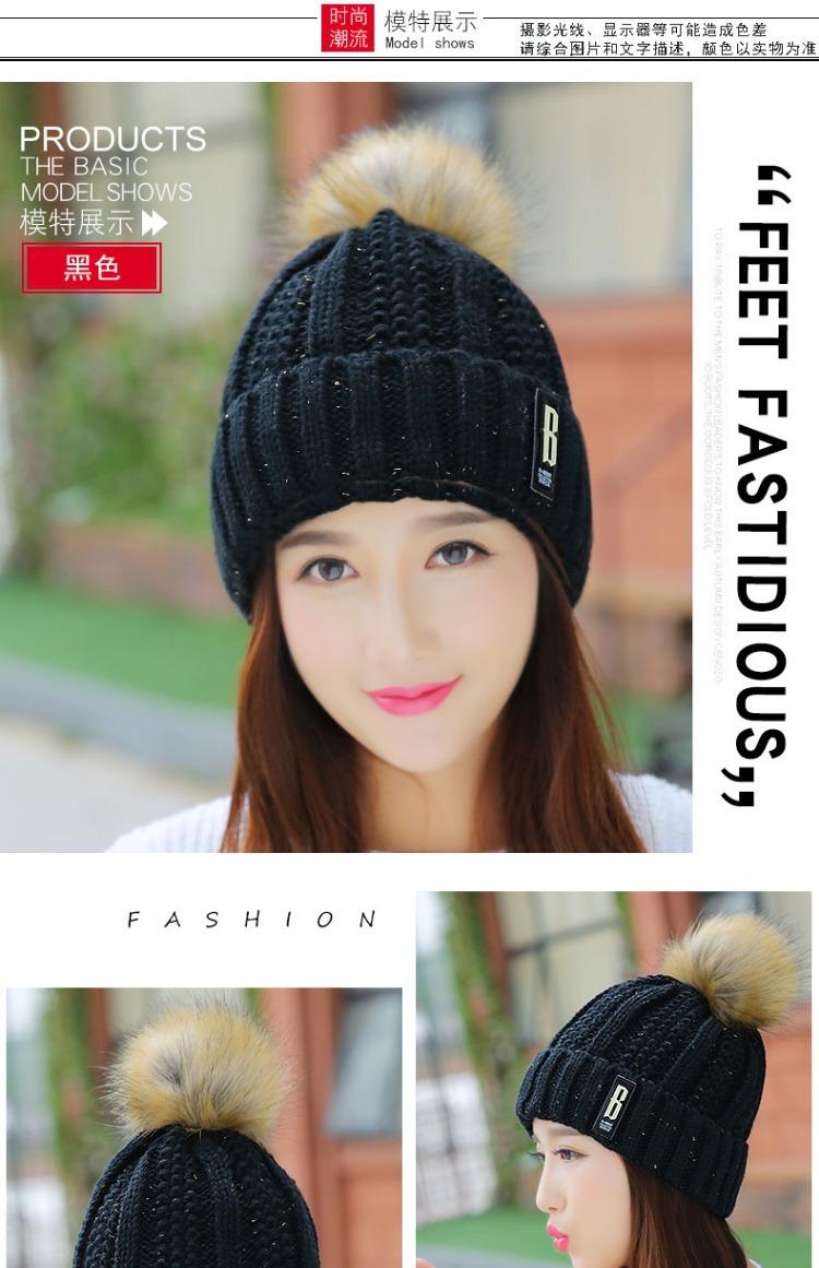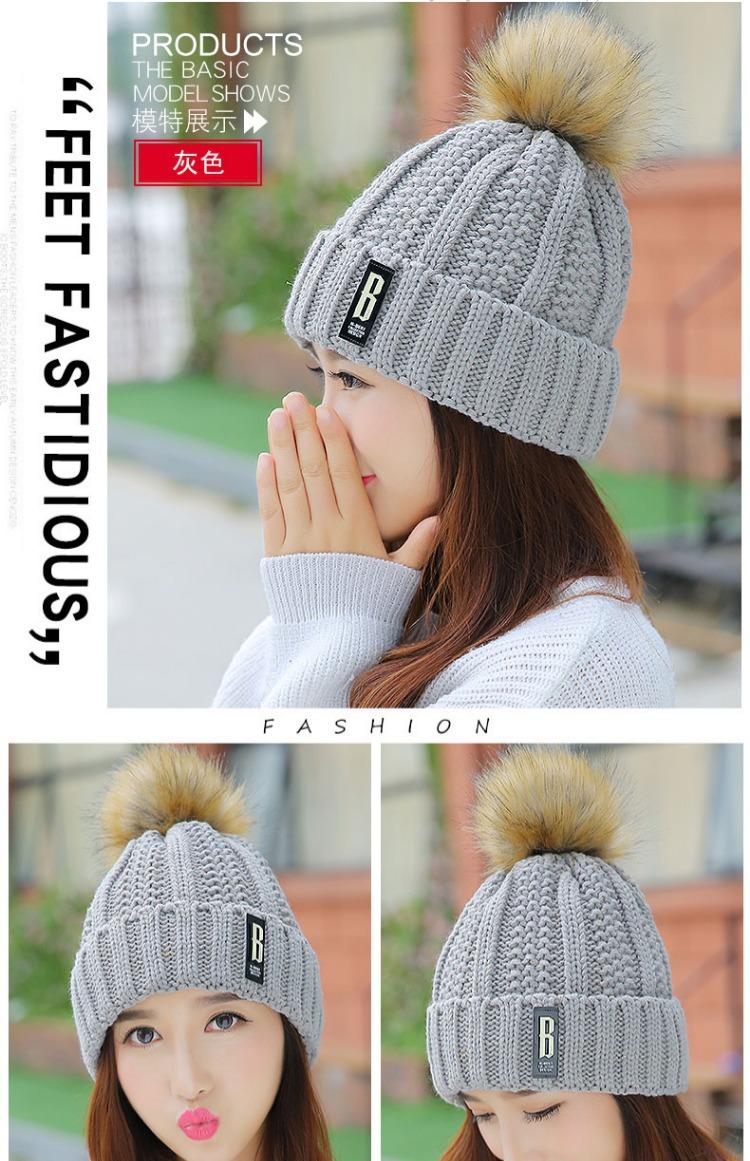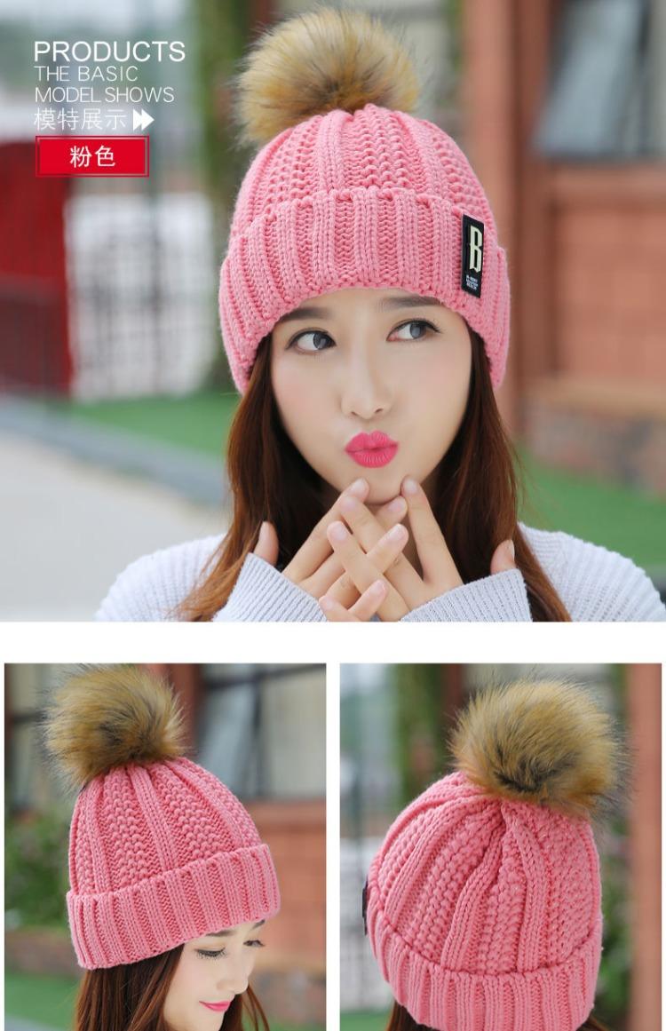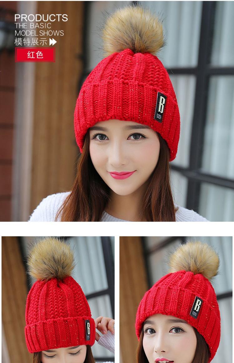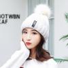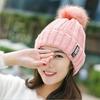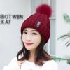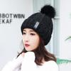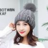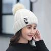 Gorro de lana estilo coreano para mujer, cálido gorro de punto con forro polar y bola de pelo grueso, informal, combinable y moderno, para otoño e invierno.