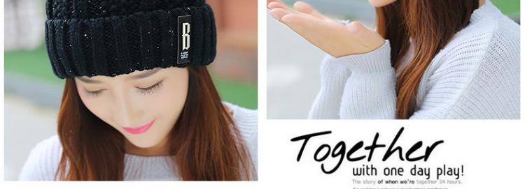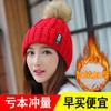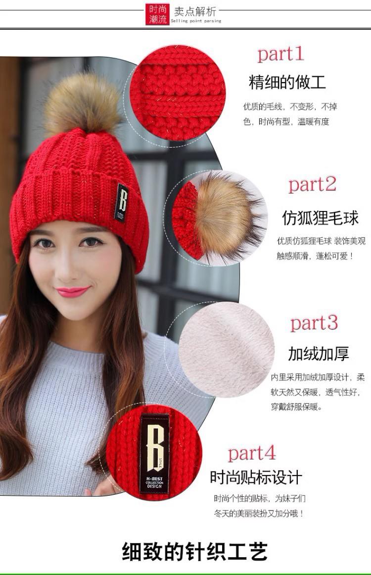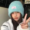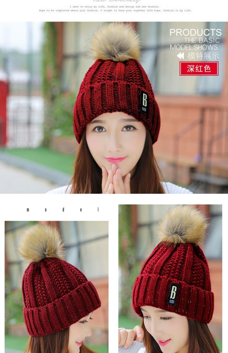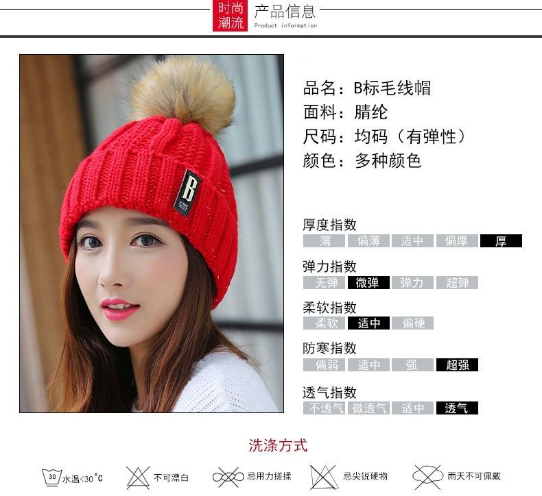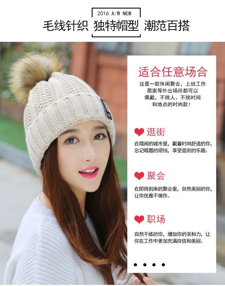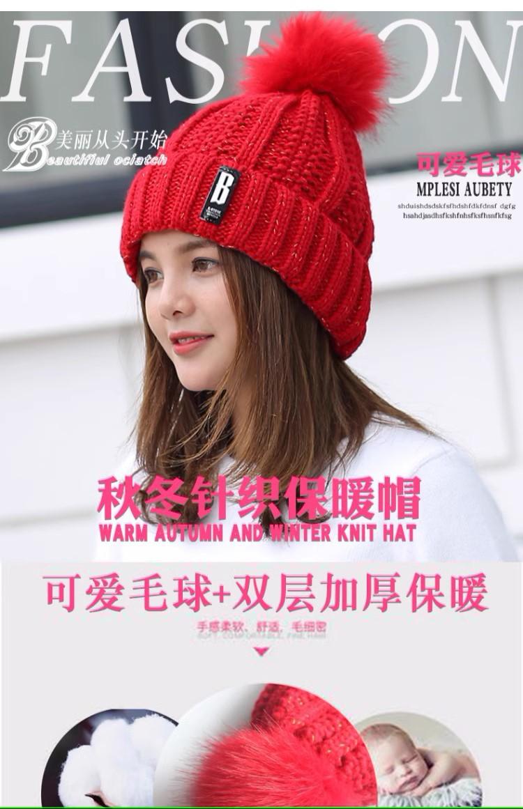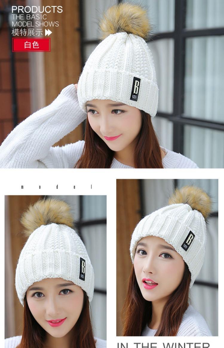 Gorro de lana estilo coreano para mujer, cálido gorro de punto con forro polar y bola de pelo grueso, informal, combinable y moderno, para otoño e invierno.