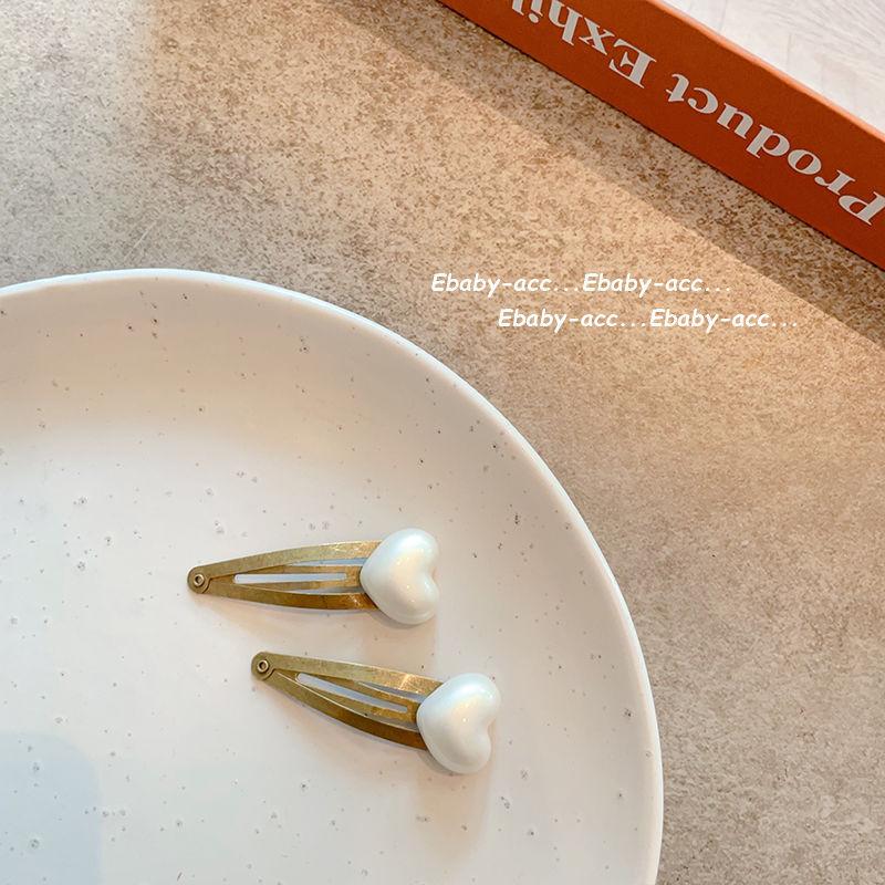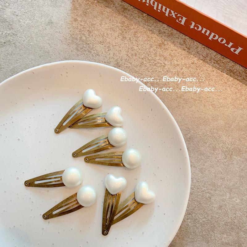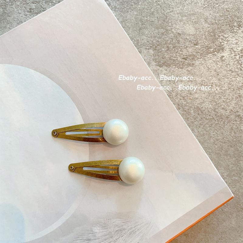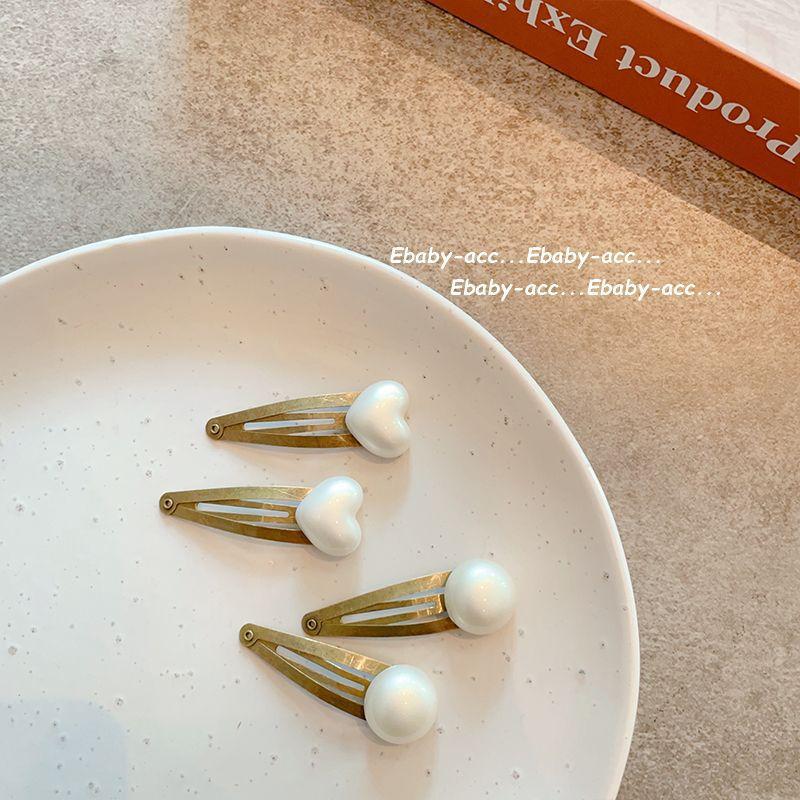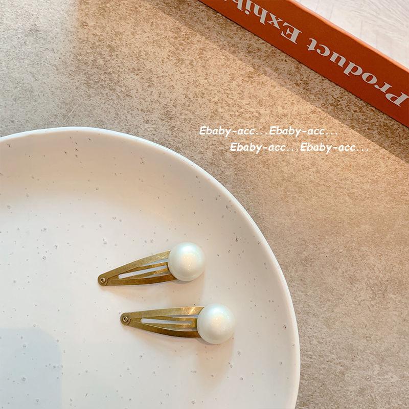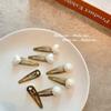 Clip BB retro para niños, clip de pelo con lado roto de bronce, clip de oreja de perla, clip de flequillo de nicho coreano