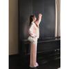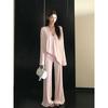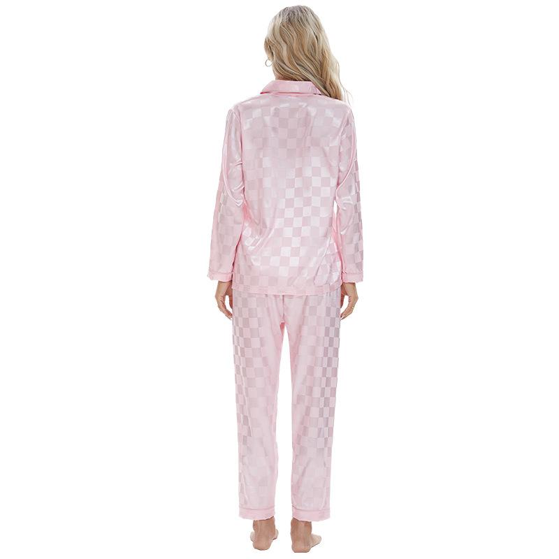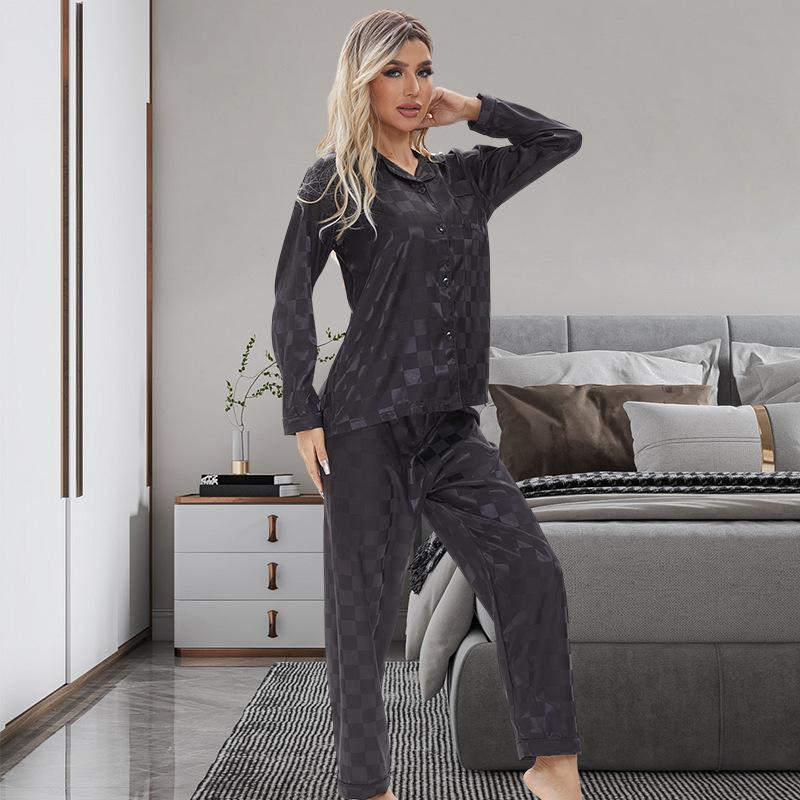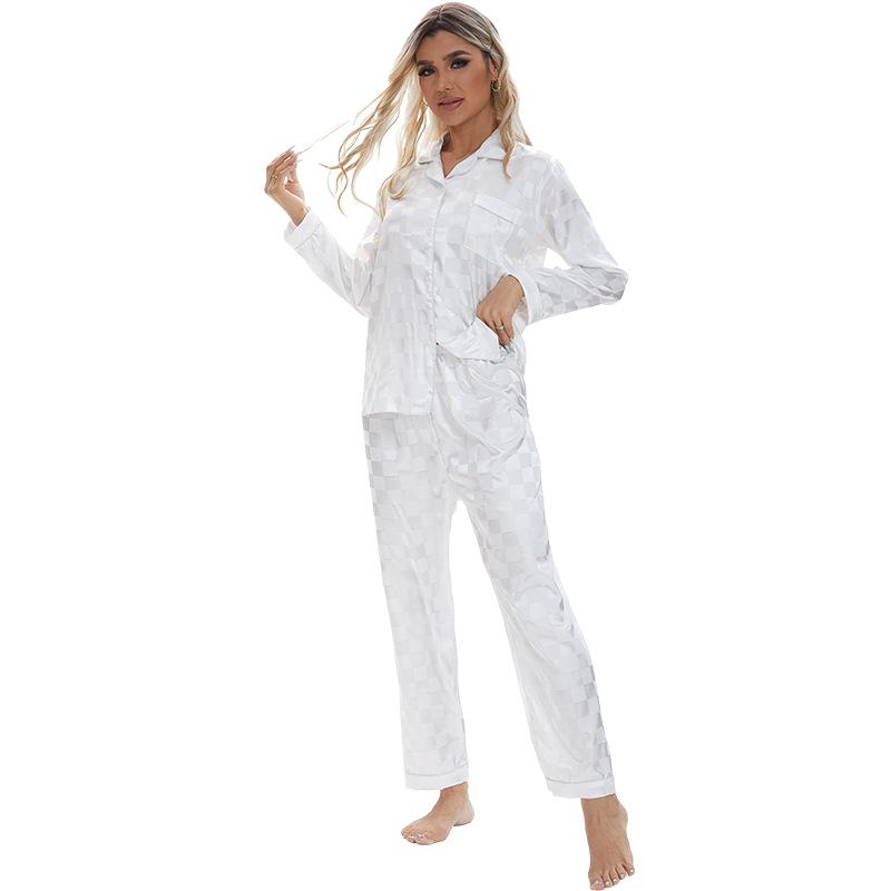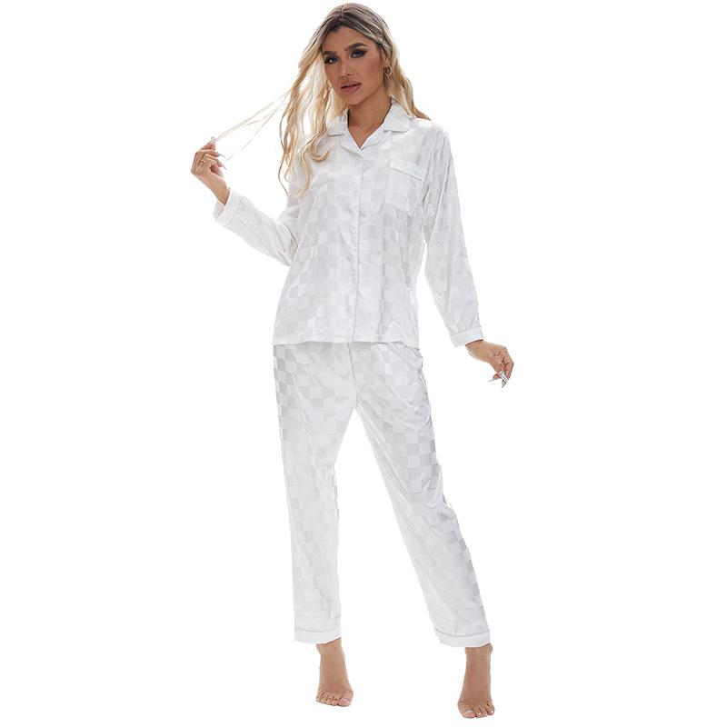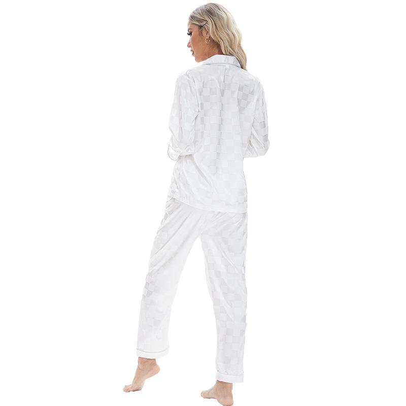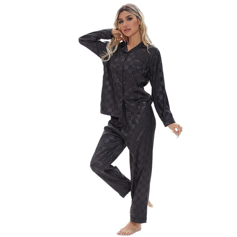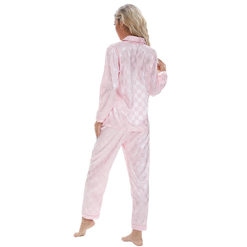Pijama de Cuadros Jacquard, Ropa de Dormir Larga con Patrón de Tablero de Ajedrez de Seda Sintética, Set Multicolor en Stock, Estilo Europeo y Americano